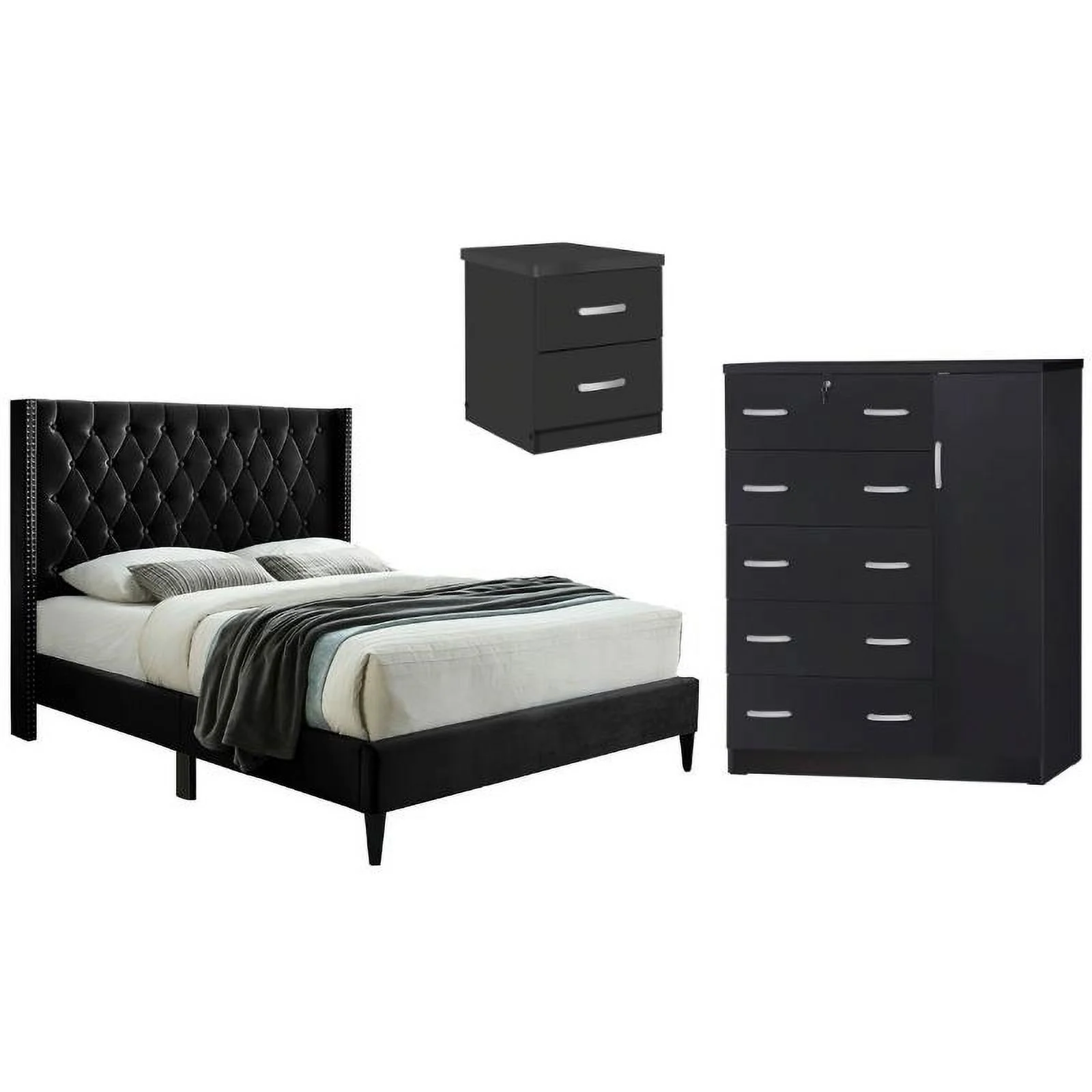 Home Square 3-Piece Set with Tufted Queen Bed Tall Chest Wardrobe & Nightstand