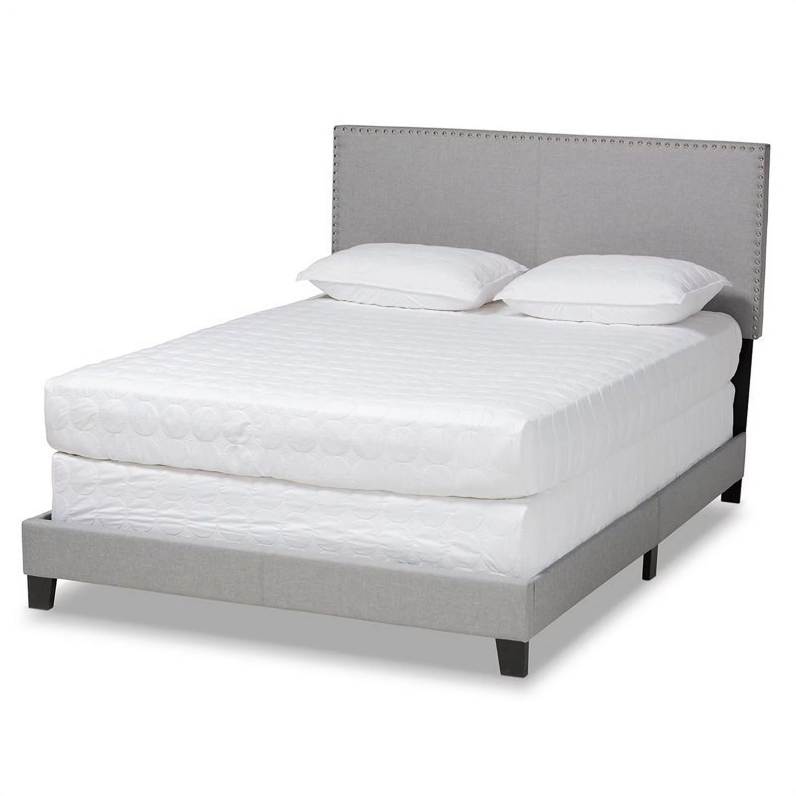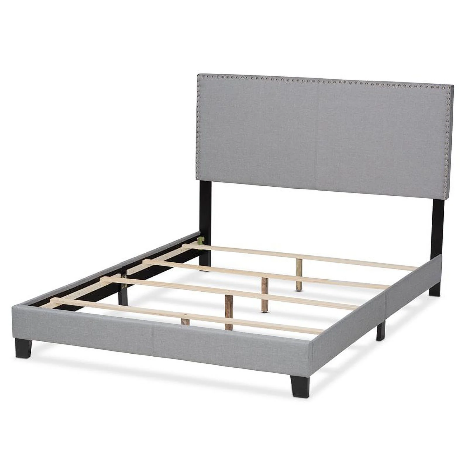 Bowery Hill Transitional Button Tufted Fabric Full Size Panel Bed in Gray