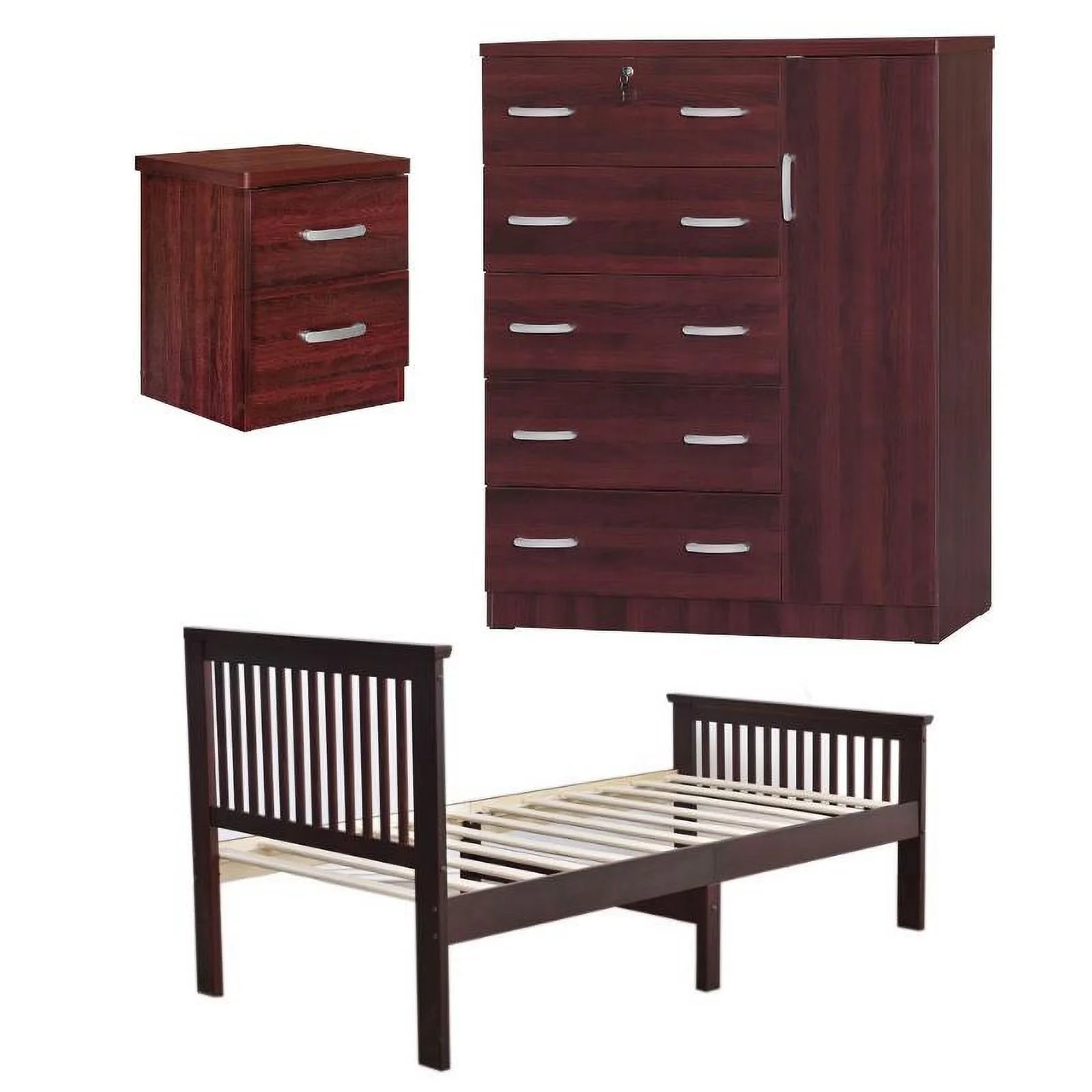 Home Square 3-Piece Set with Pine Twin Bed Tall Chest Wardrobe & Nightstand