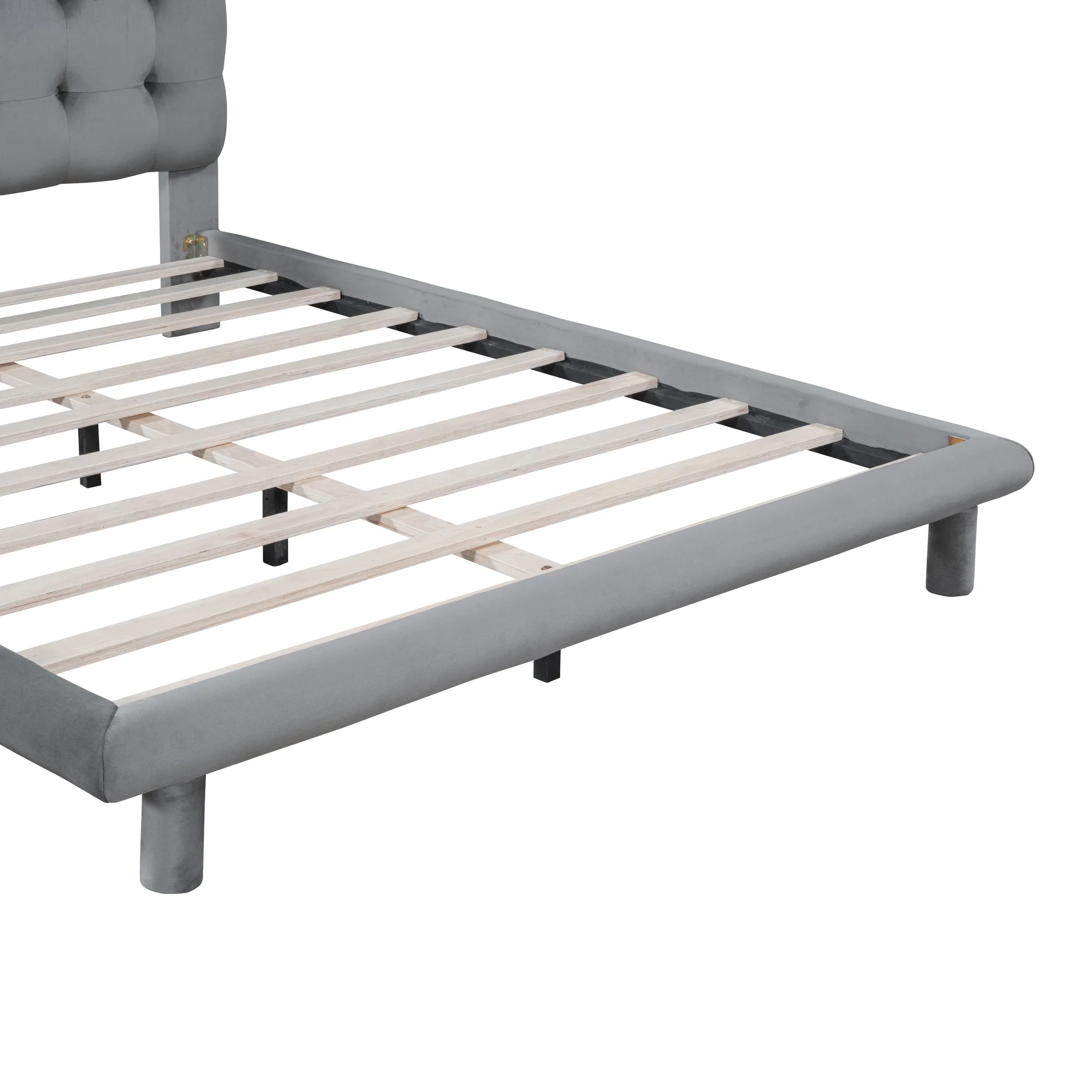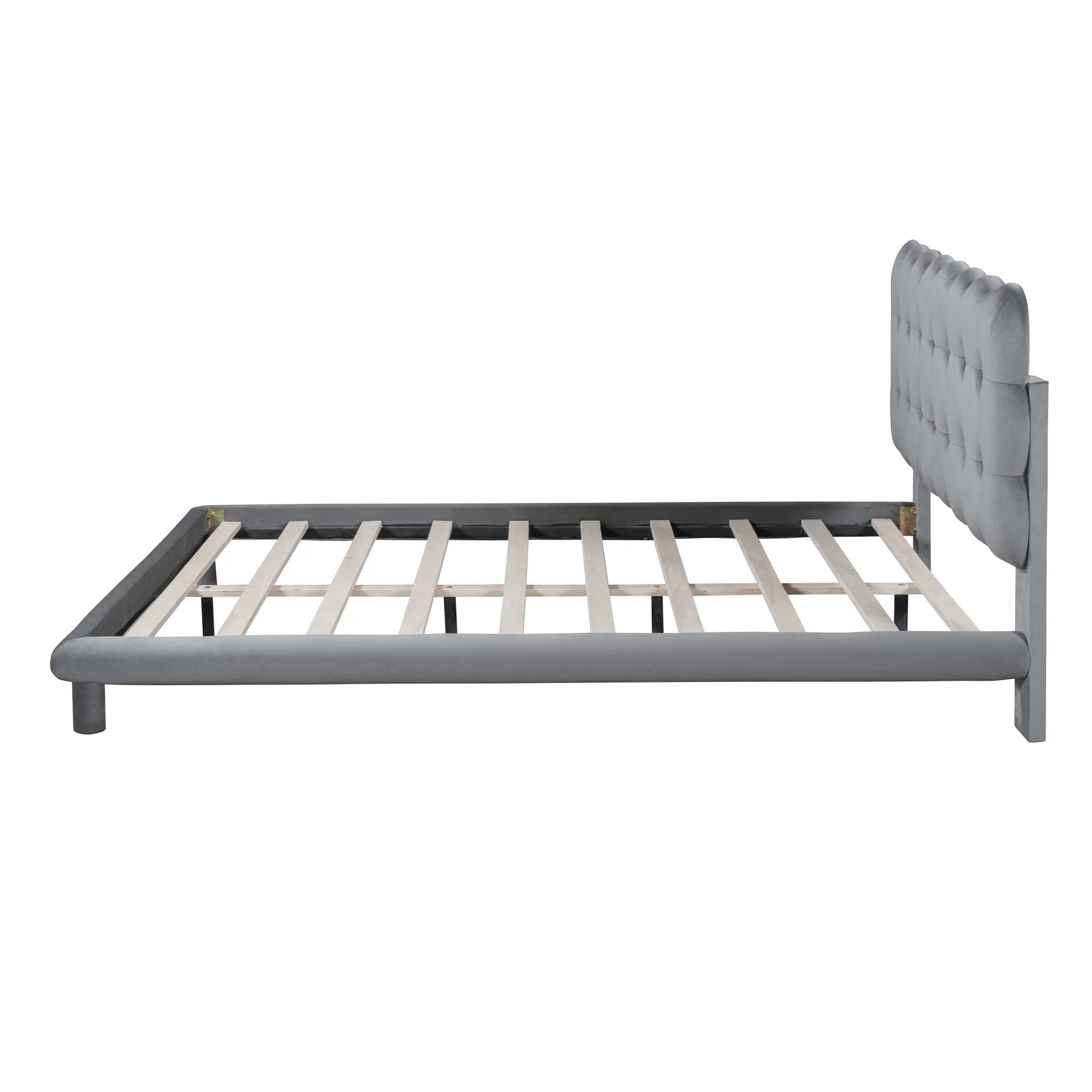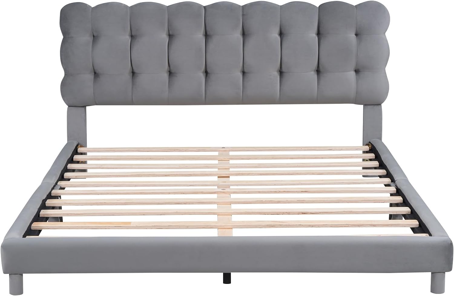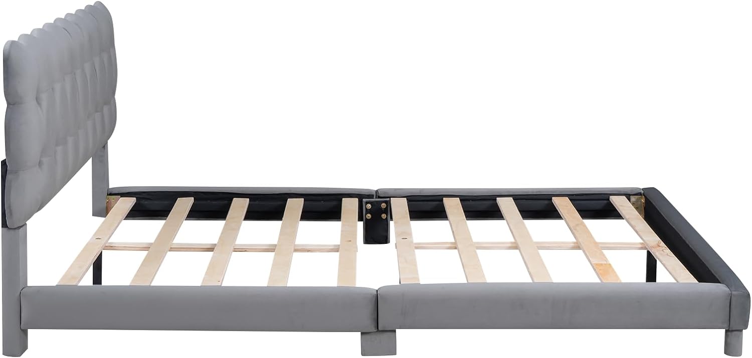 Queen Upholstered Bed Frame With Soft Headboard Velvet Platform Bed Frame Tofu Tufted Design,Low Height