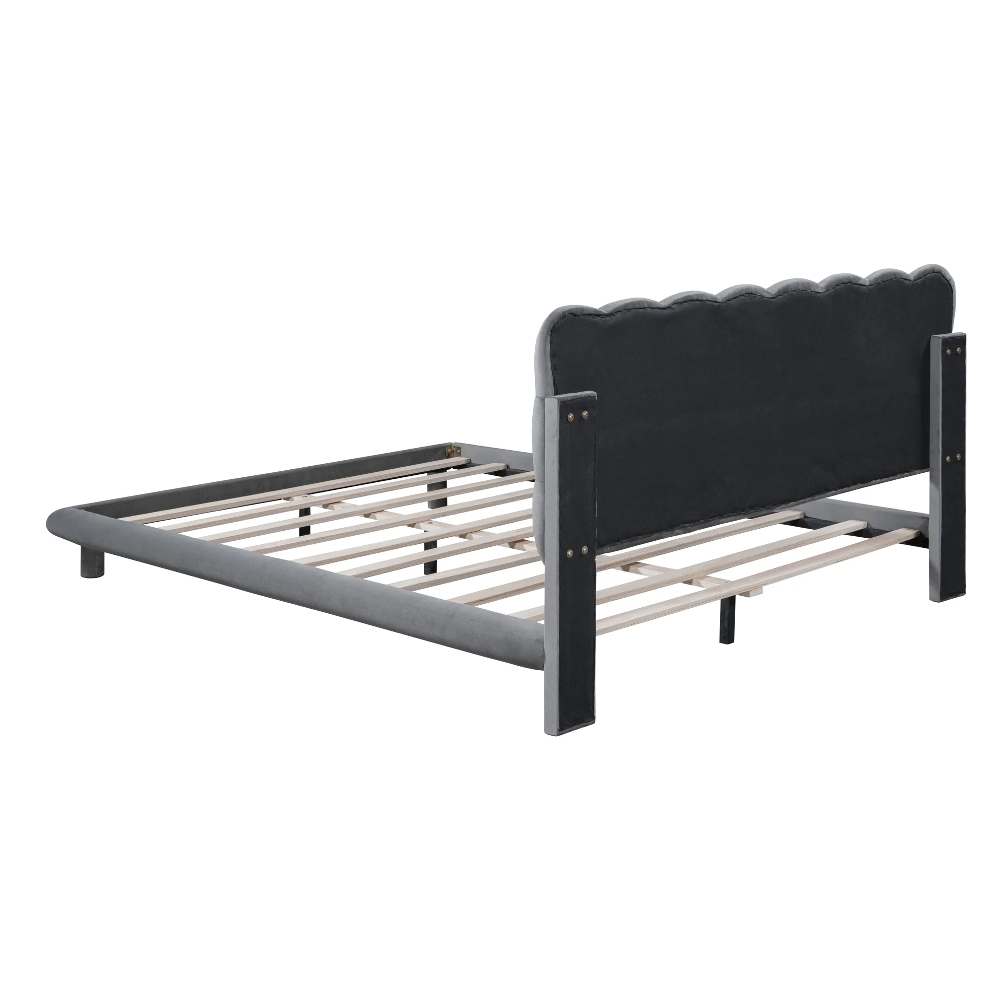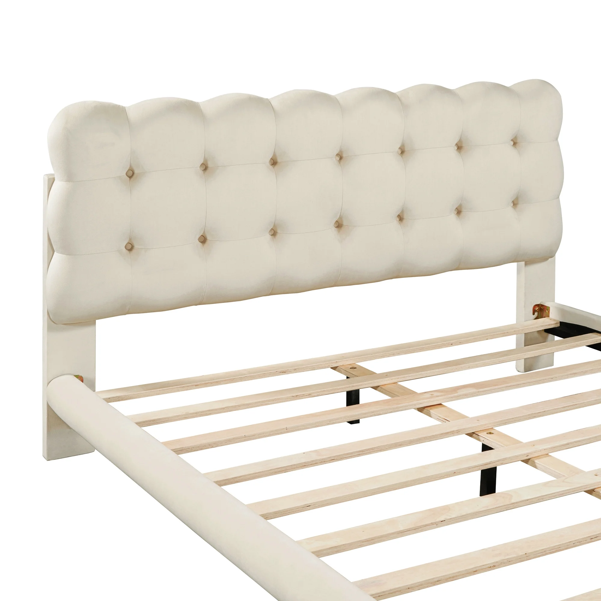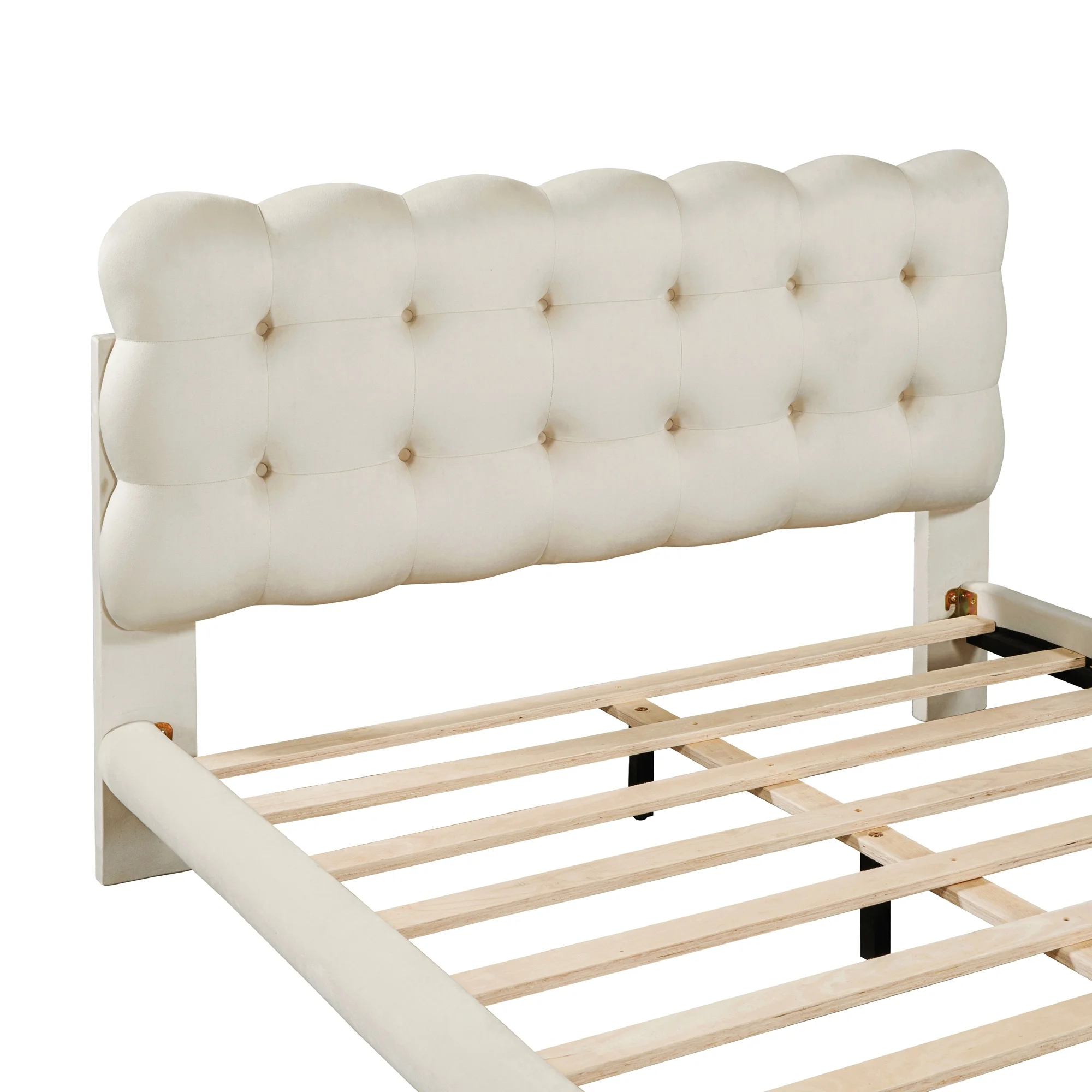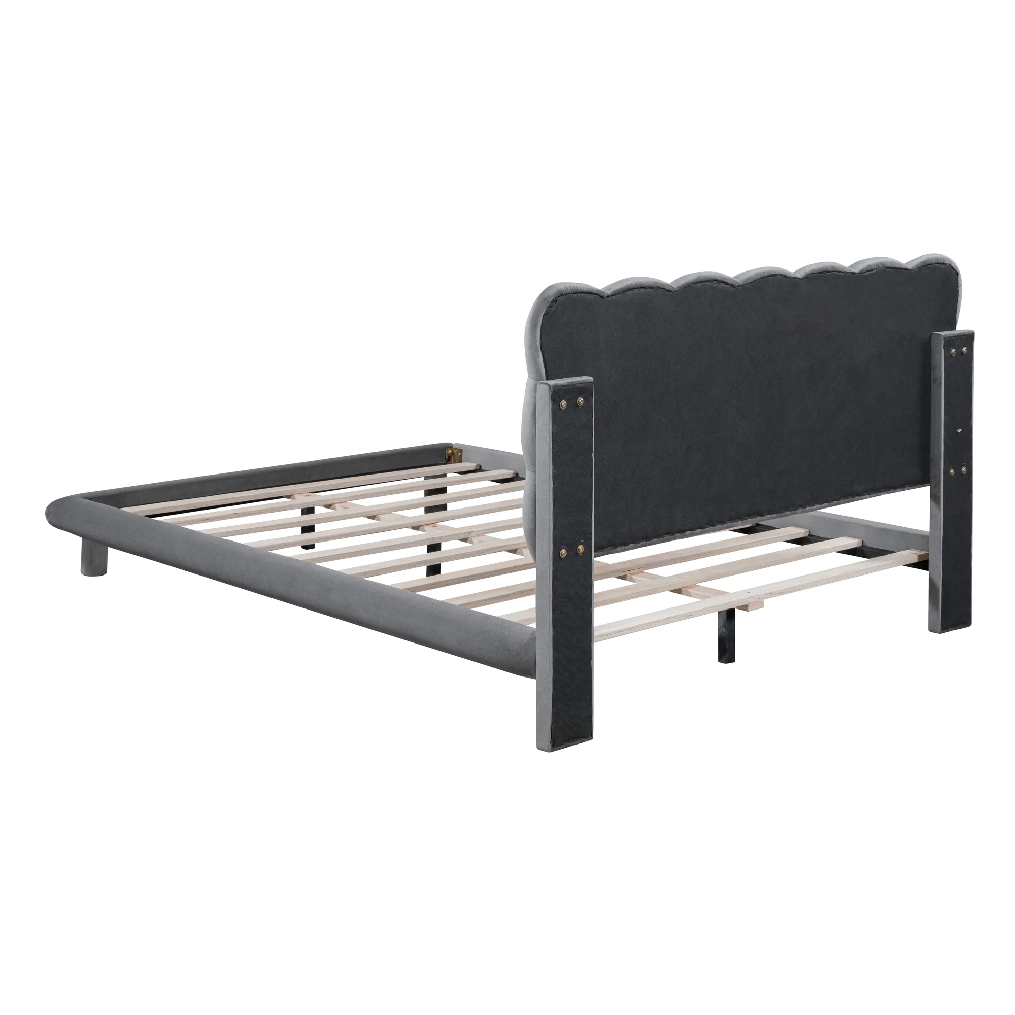 Queen Upholstered Bed Frame With Soft Headboard Velvet Platform Bed Frame Tofu Tufted Design,Low Height