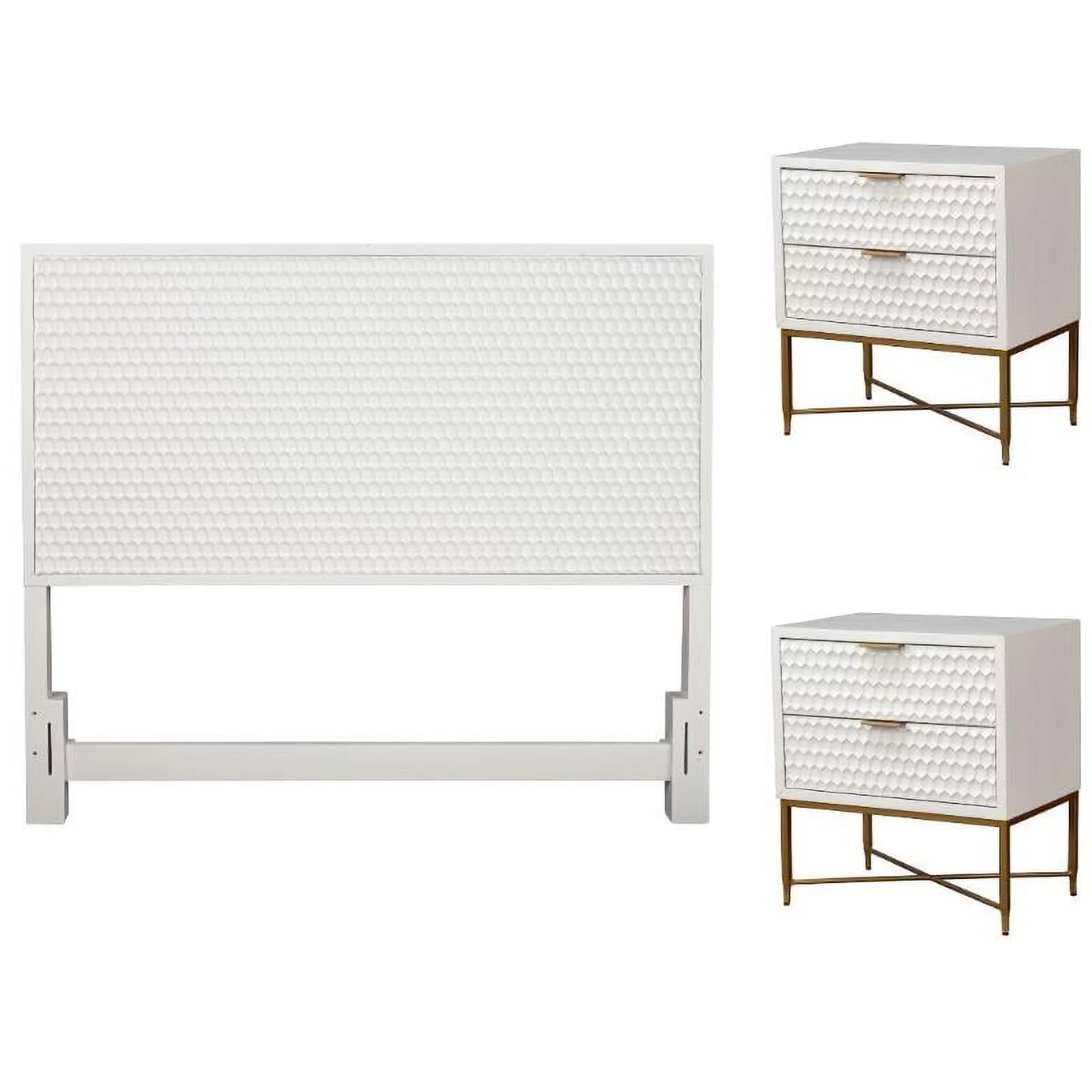 Home Square 3-Piece Set with Queen Headboard & 2 Nightstands in White