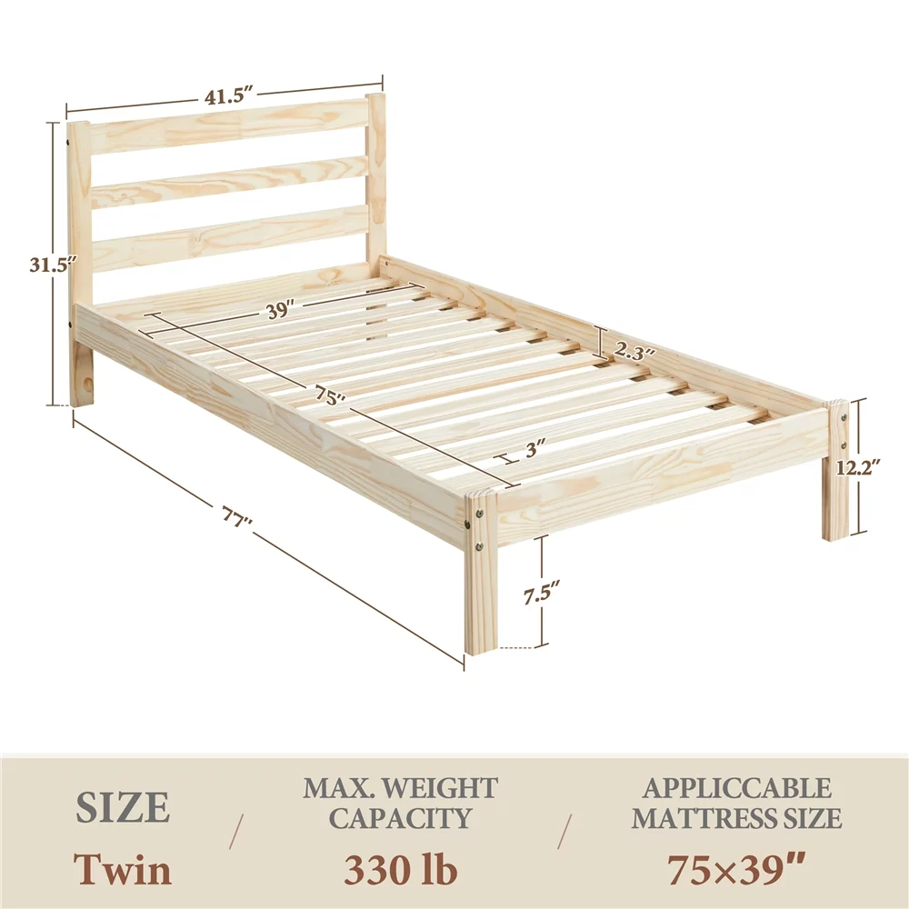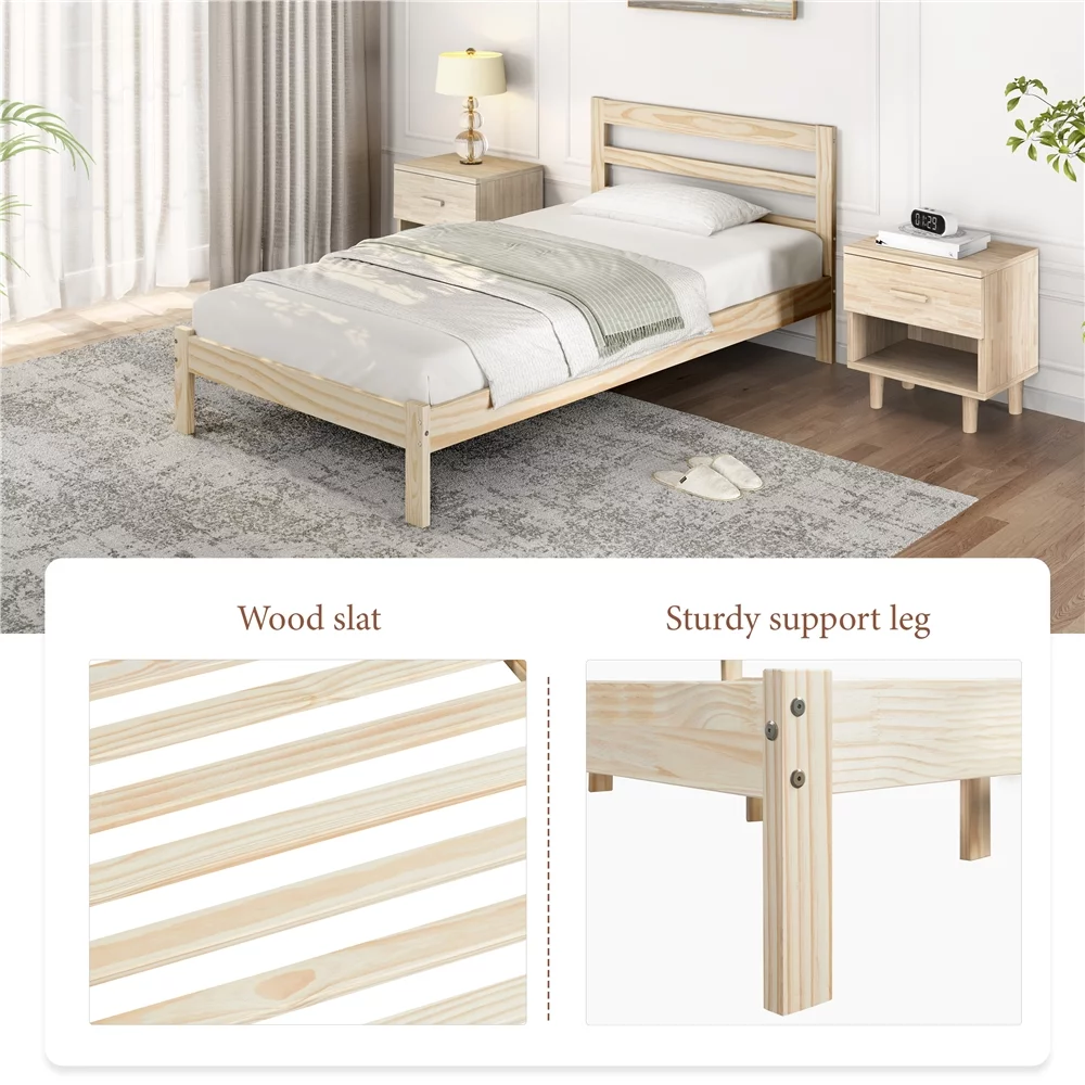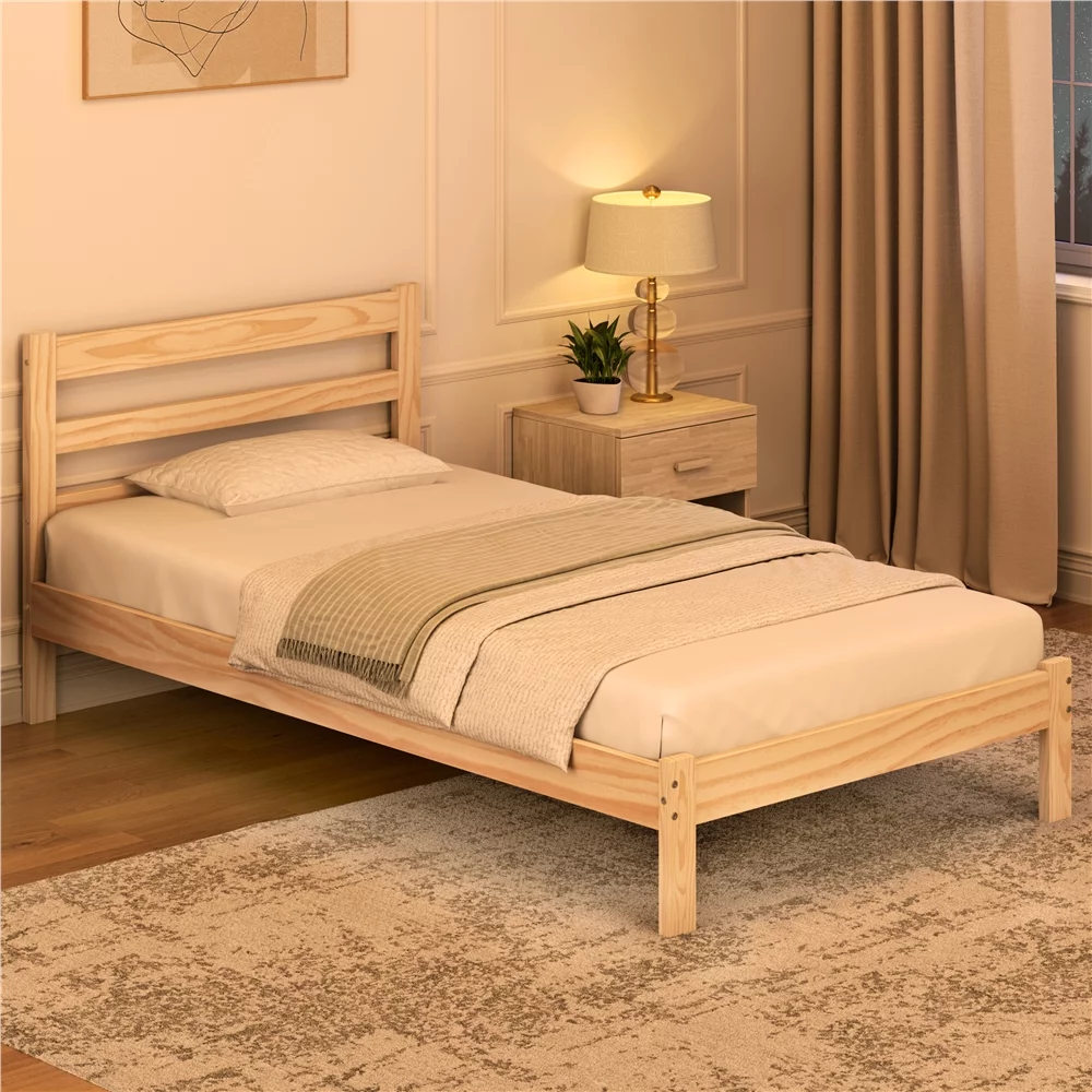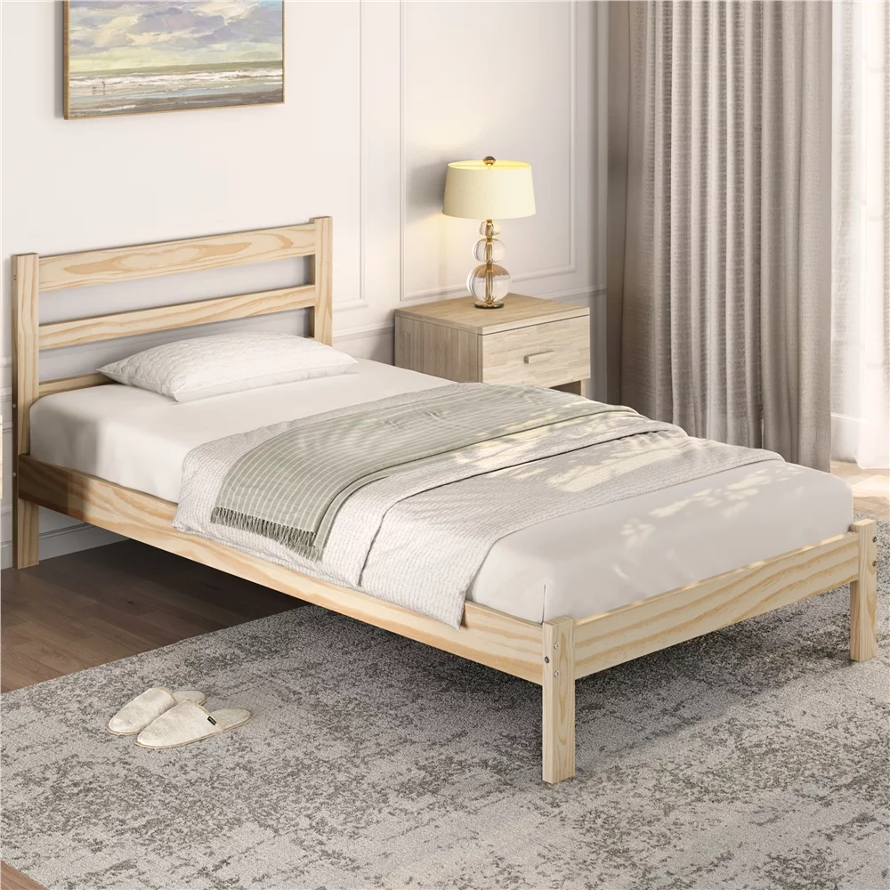 Easyfashion Wooden Platform Bed Frame with Paneled Headboard,Twin,Wood