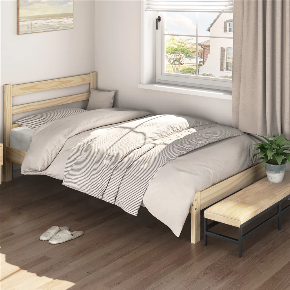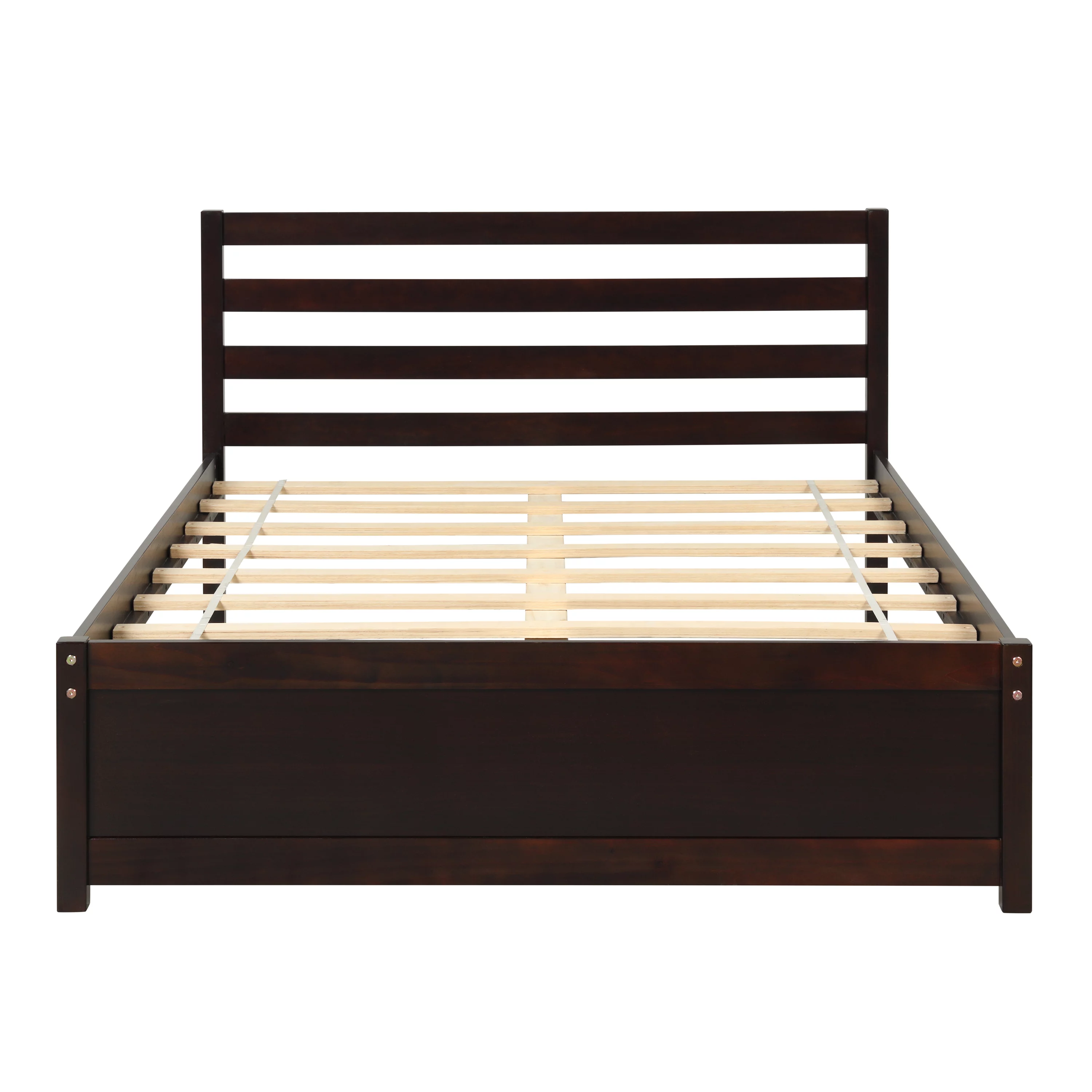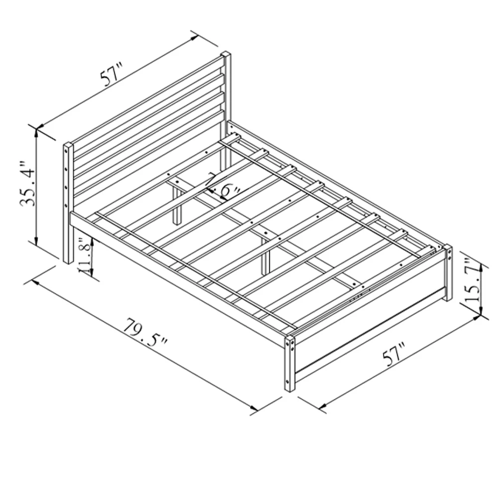 Easyfashion Wooden Platform Bed Frame with Paneled Headboard,Twin,Wood