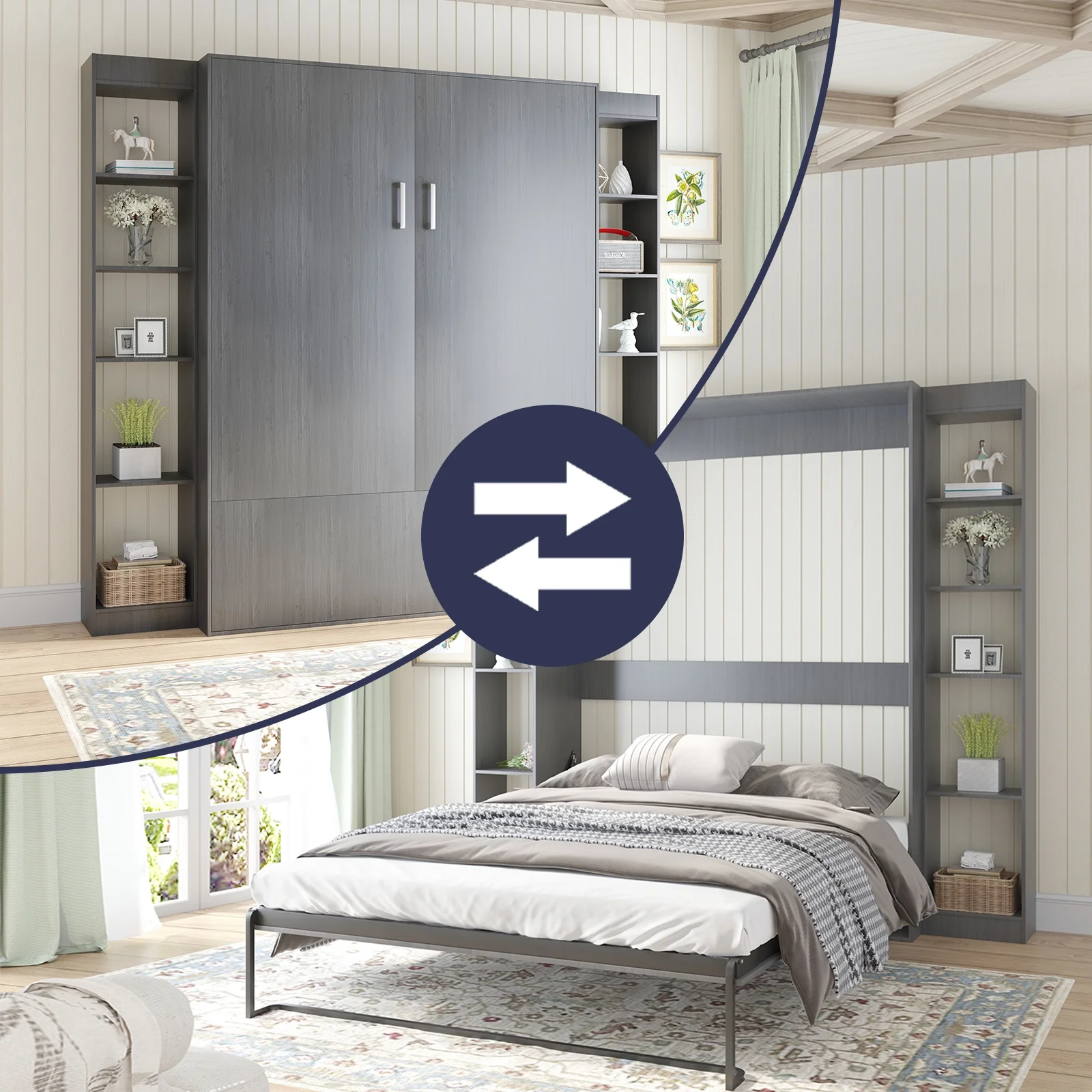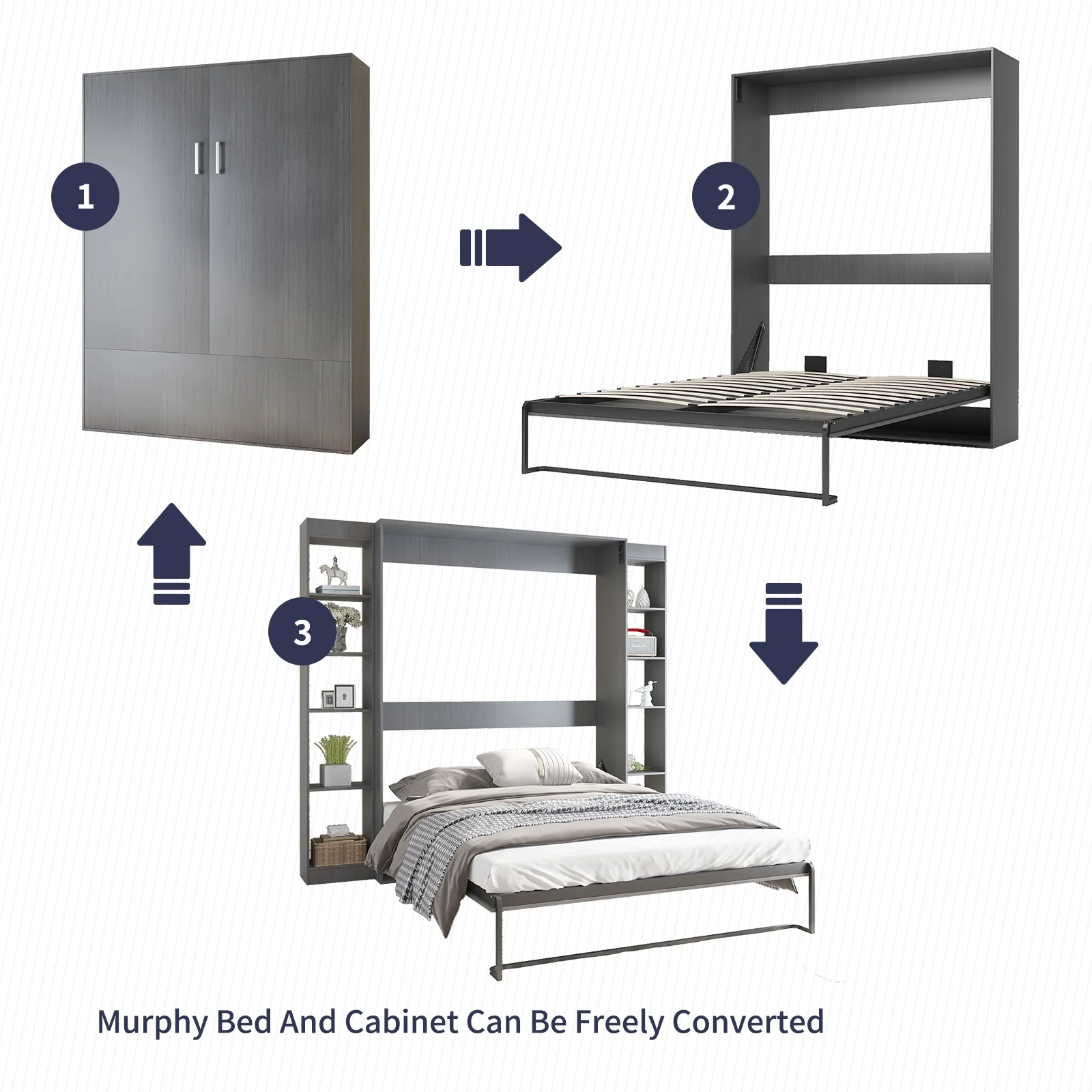 Transitional Gray Finish Bedroom 3pc Set Queen Size Bed Panel Headboard 2x Nightstands Bedroom Furniture
