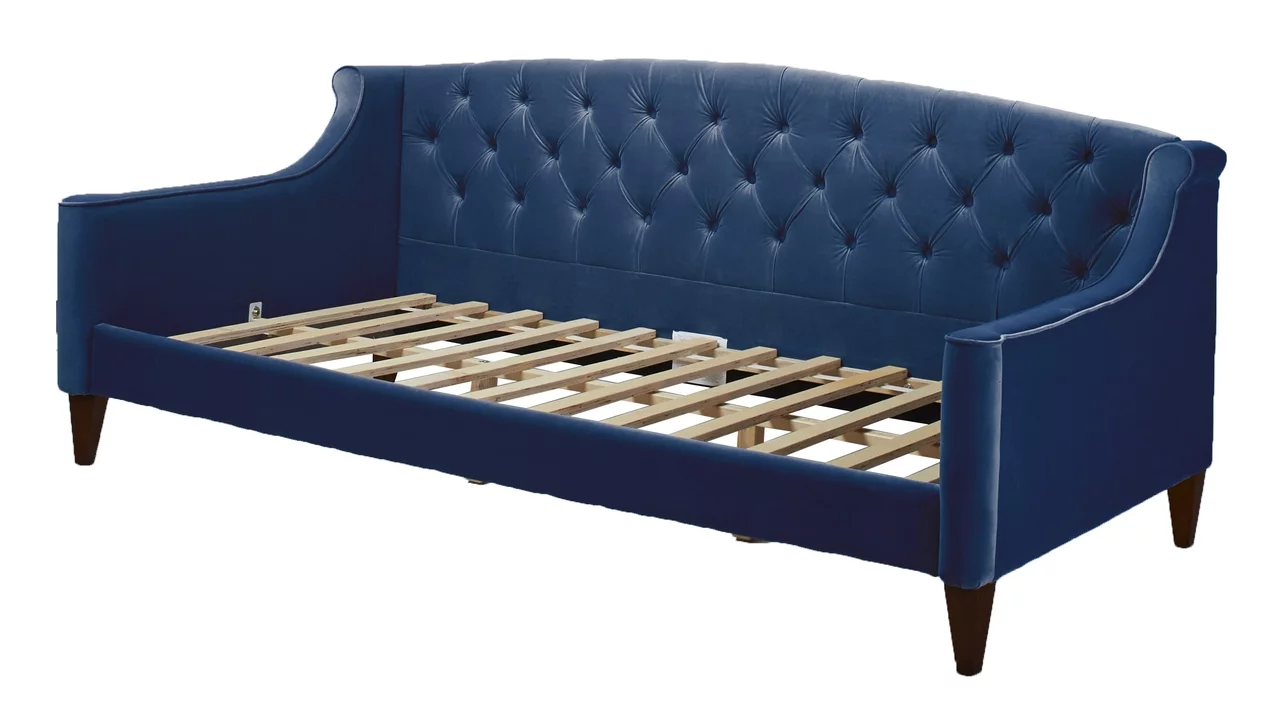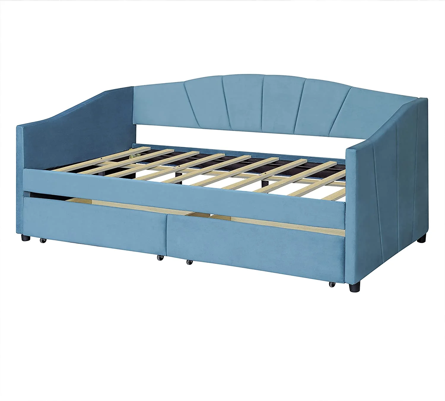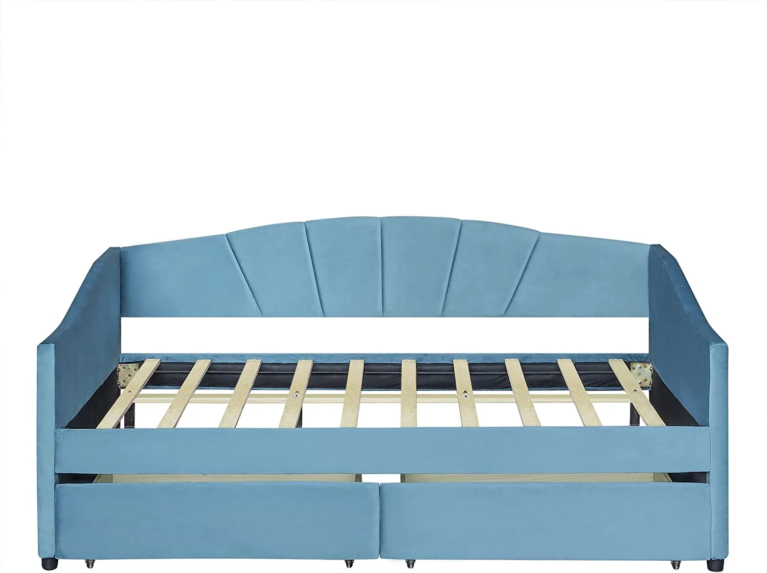 Velve Upholsered Daybed Wih wo Sorage Drawers, Woode Daybed Frame (Blue)
