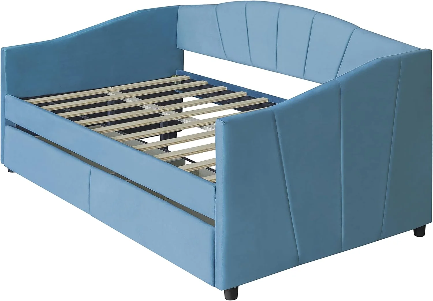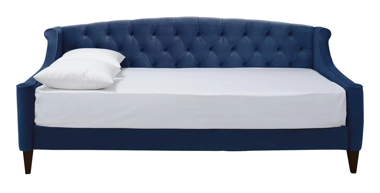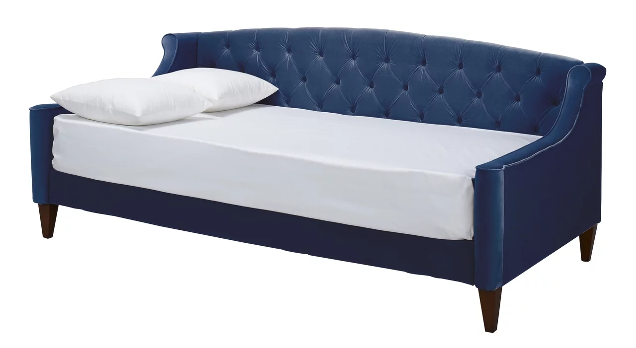 Velve Upholsered Daybed Wih wo Sorage Drawers, Woode Daybed Frame (Blue)