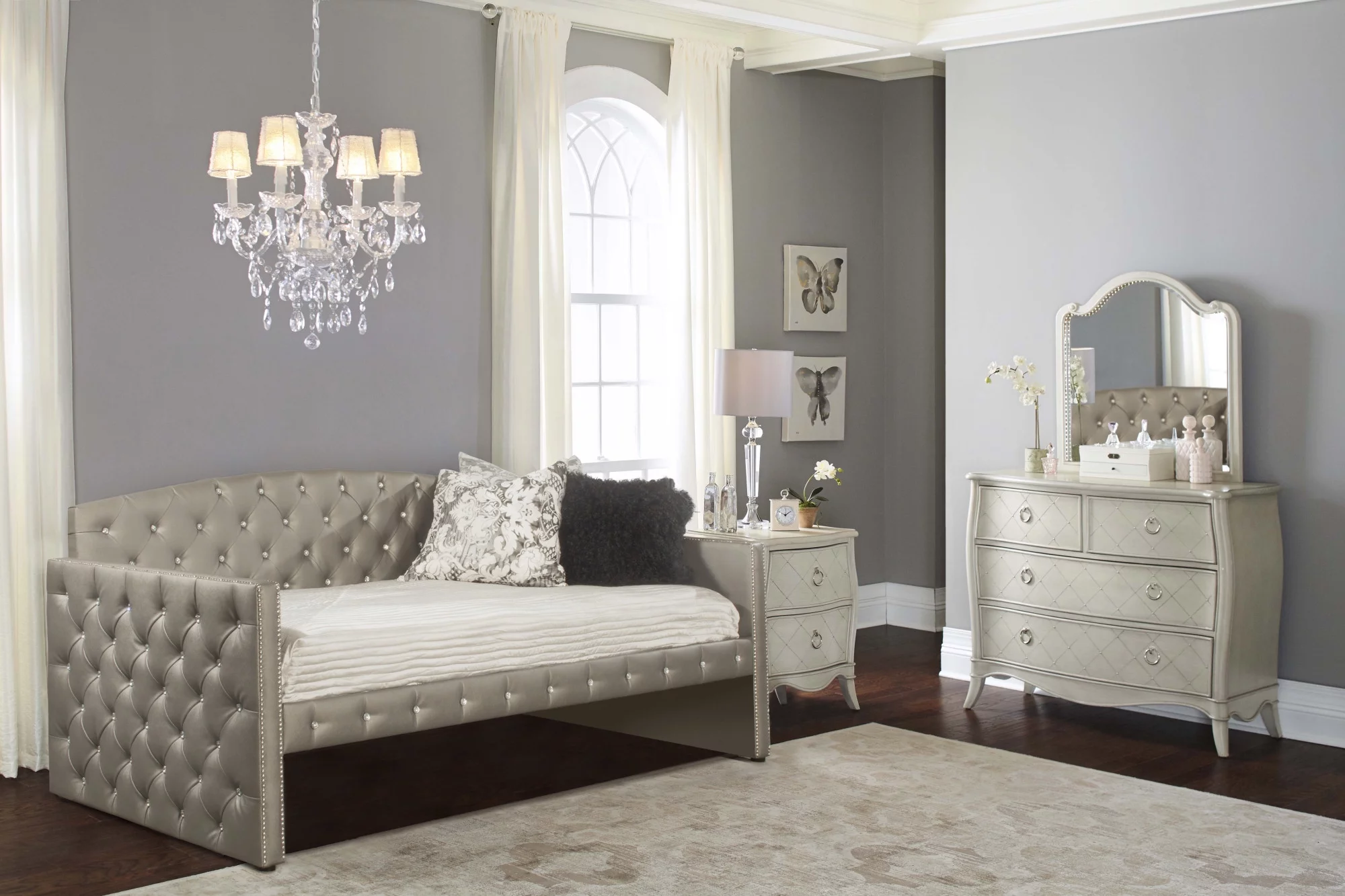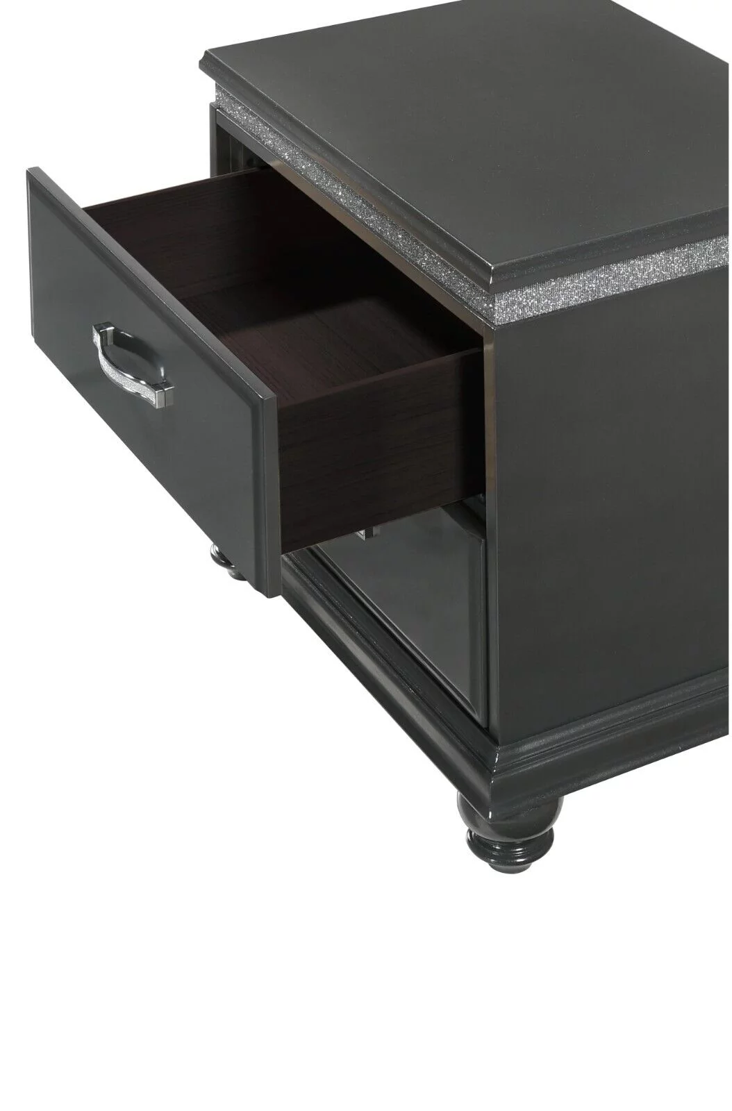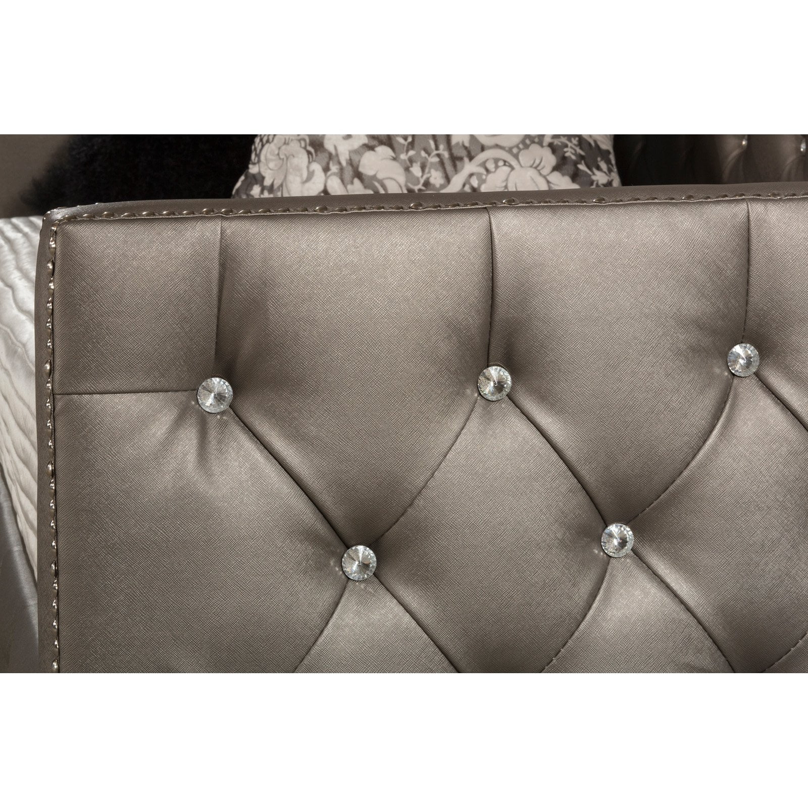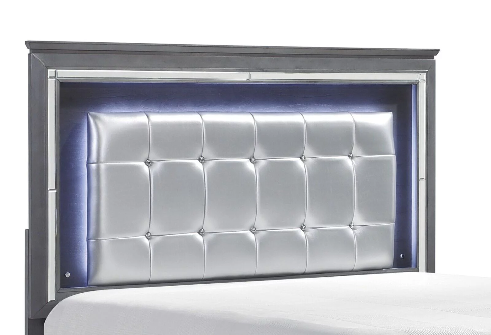 3Pc Silver Finish Queen Size Panel Upholstered Button Tufted Headboard Bed Nightstand Set Wooden Bedroom Furniture