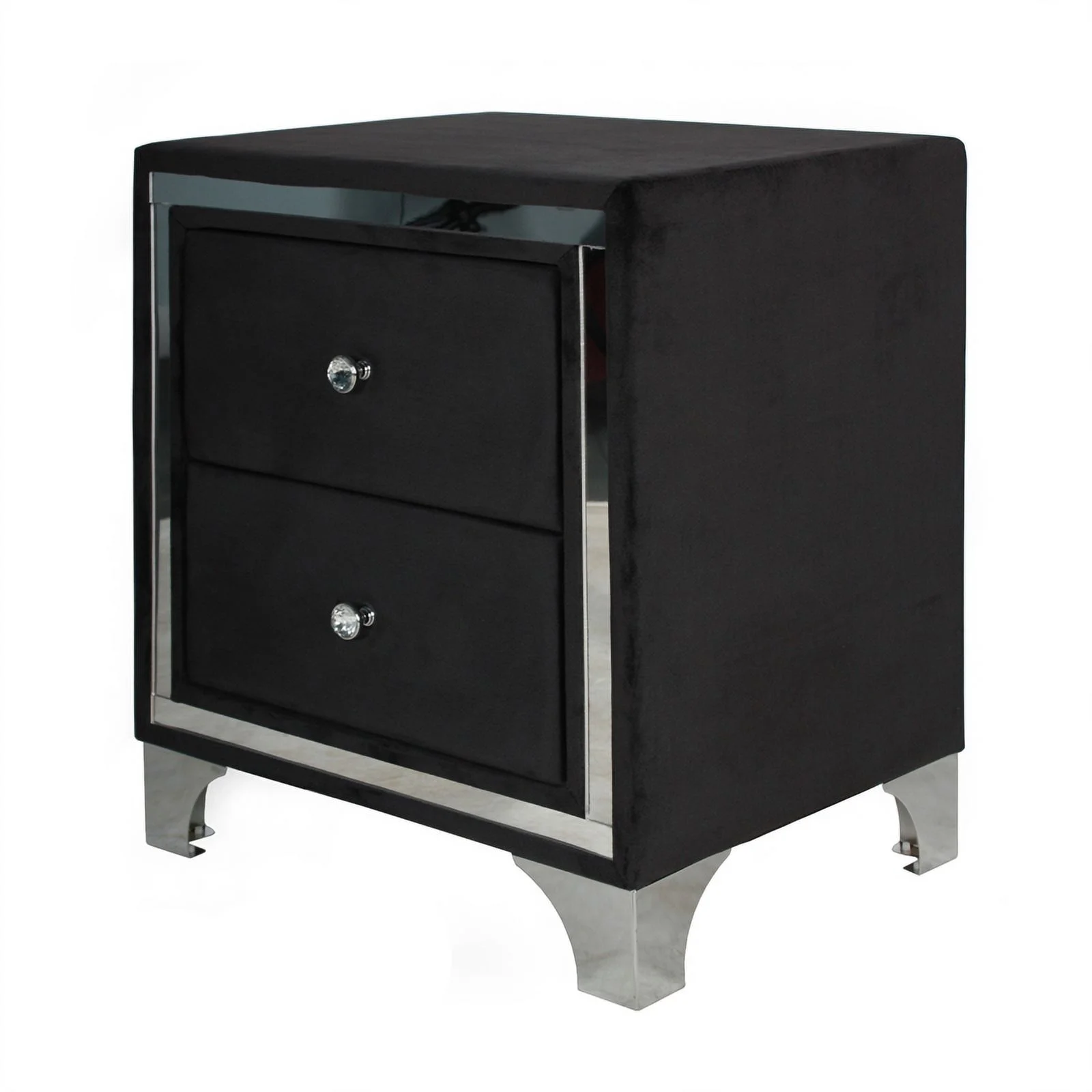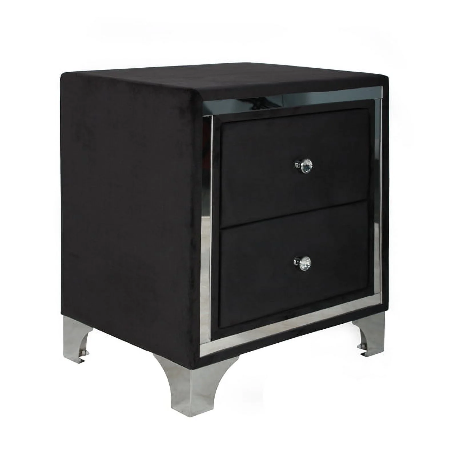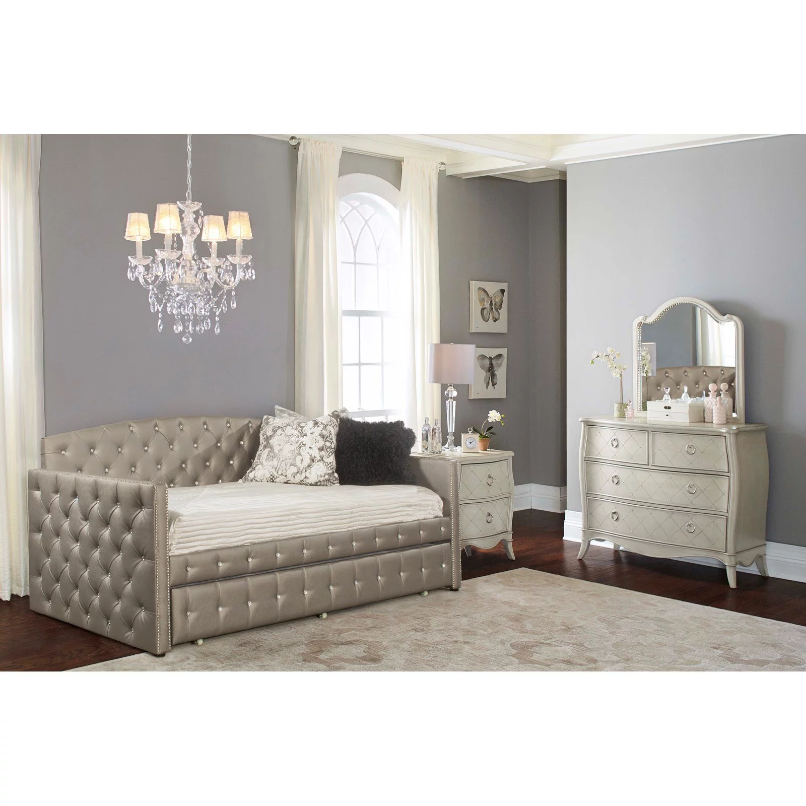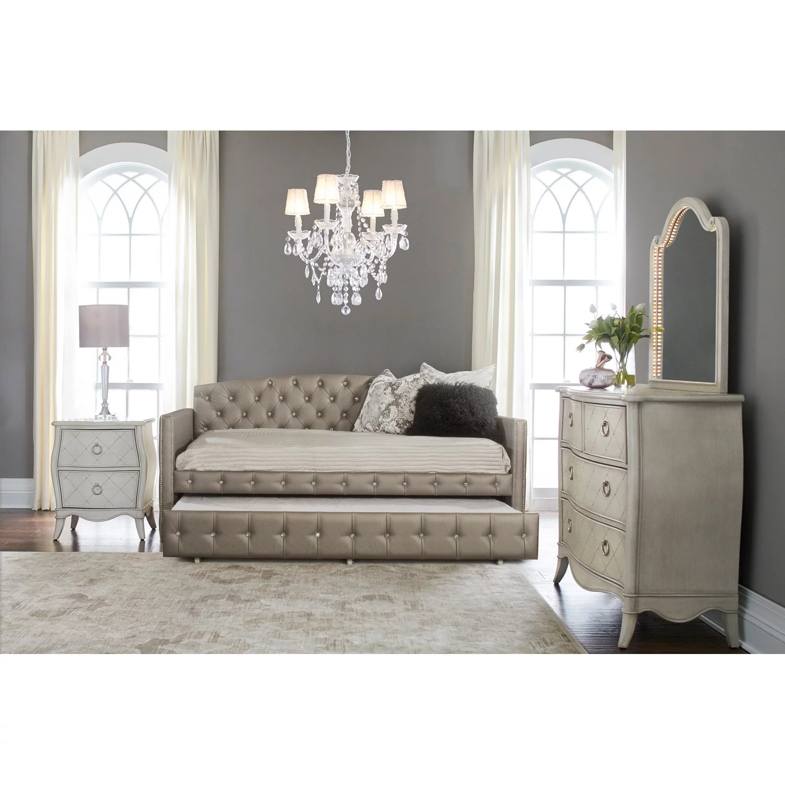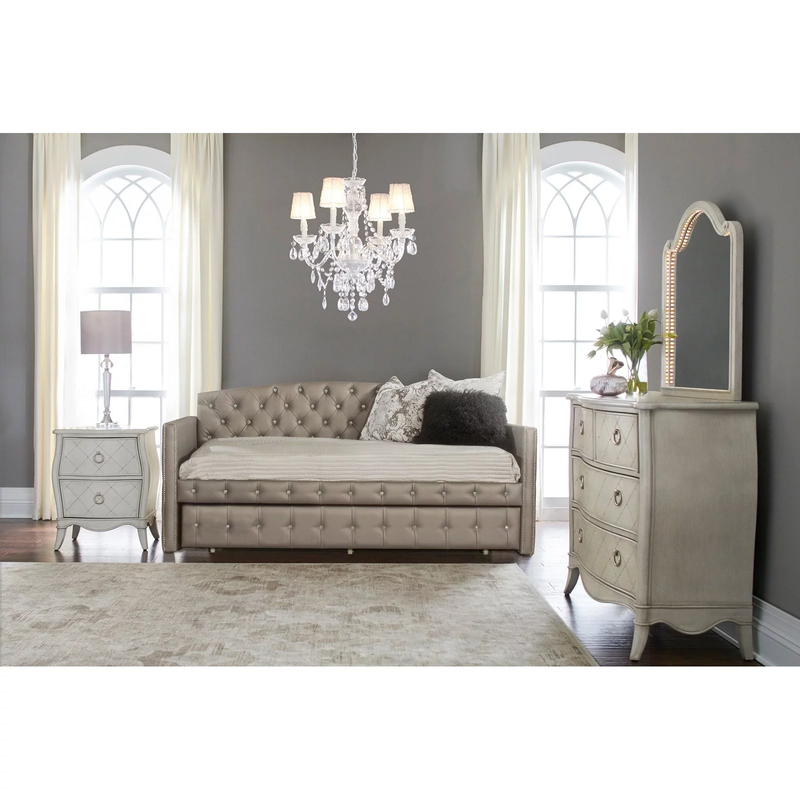 3Pc Silver Finish Queen Size Panel Upholstered Button Tufted Headboard Bed Nightstand Set Wooden Bedroom Furniture