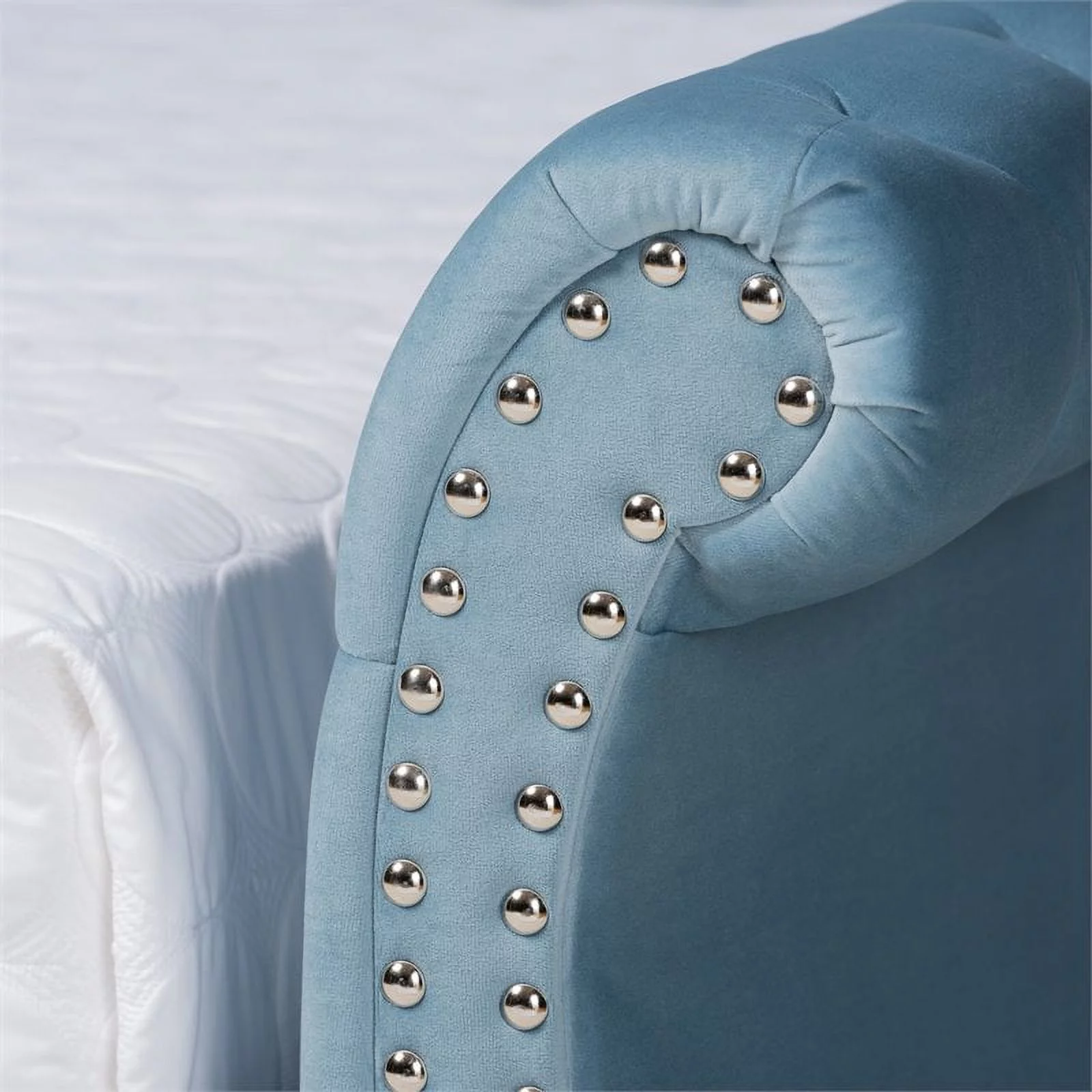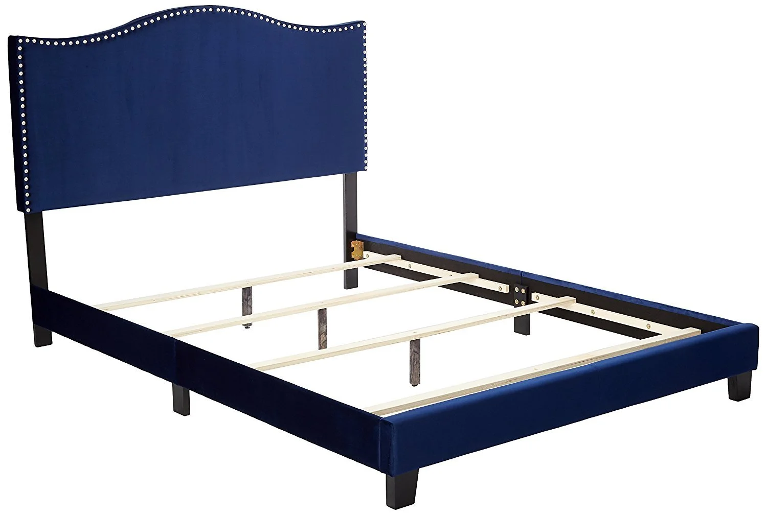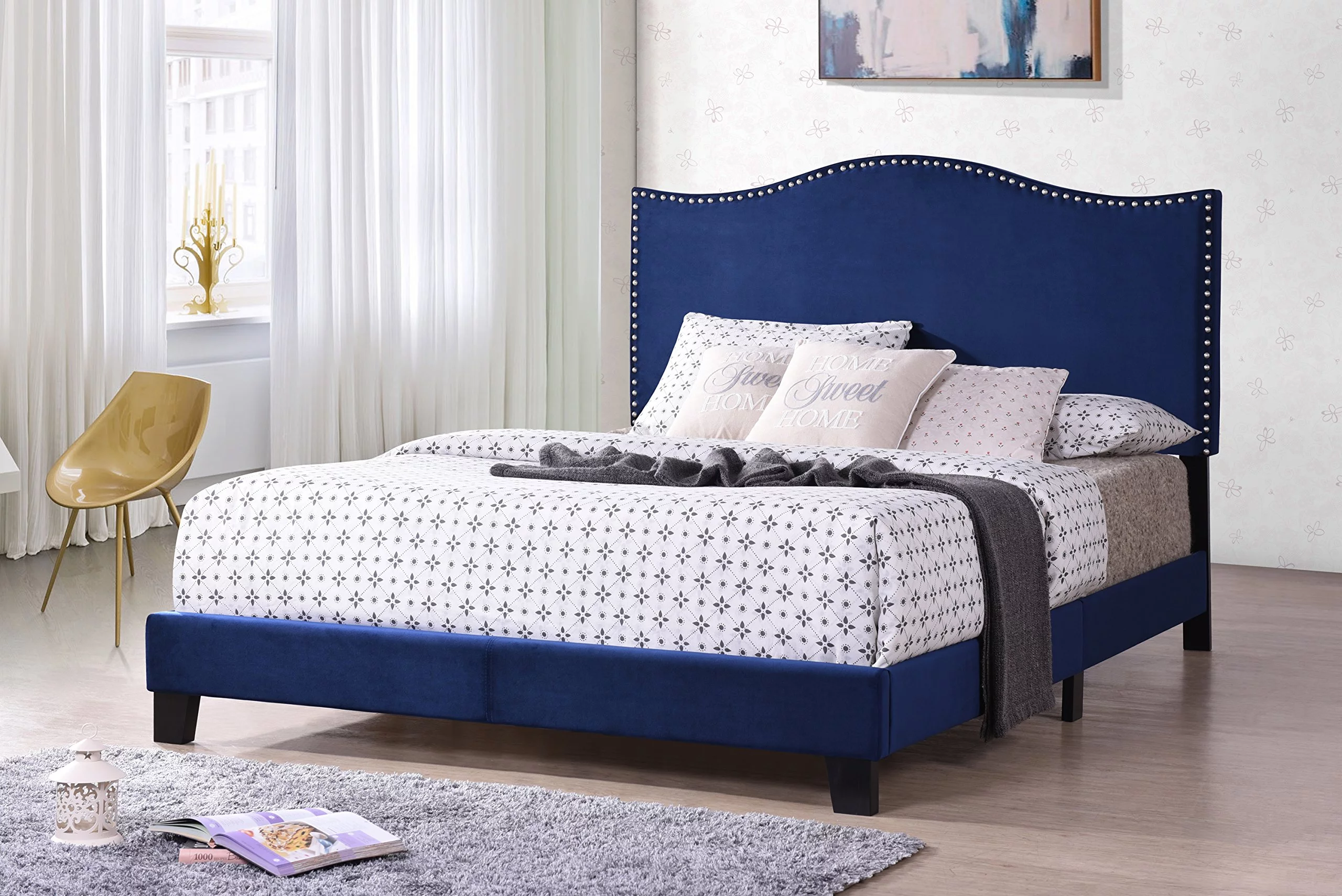 Kings Brand Furniture Blue Velvet Upholstered Bed with Headboard & Nailhead Trim, King Size