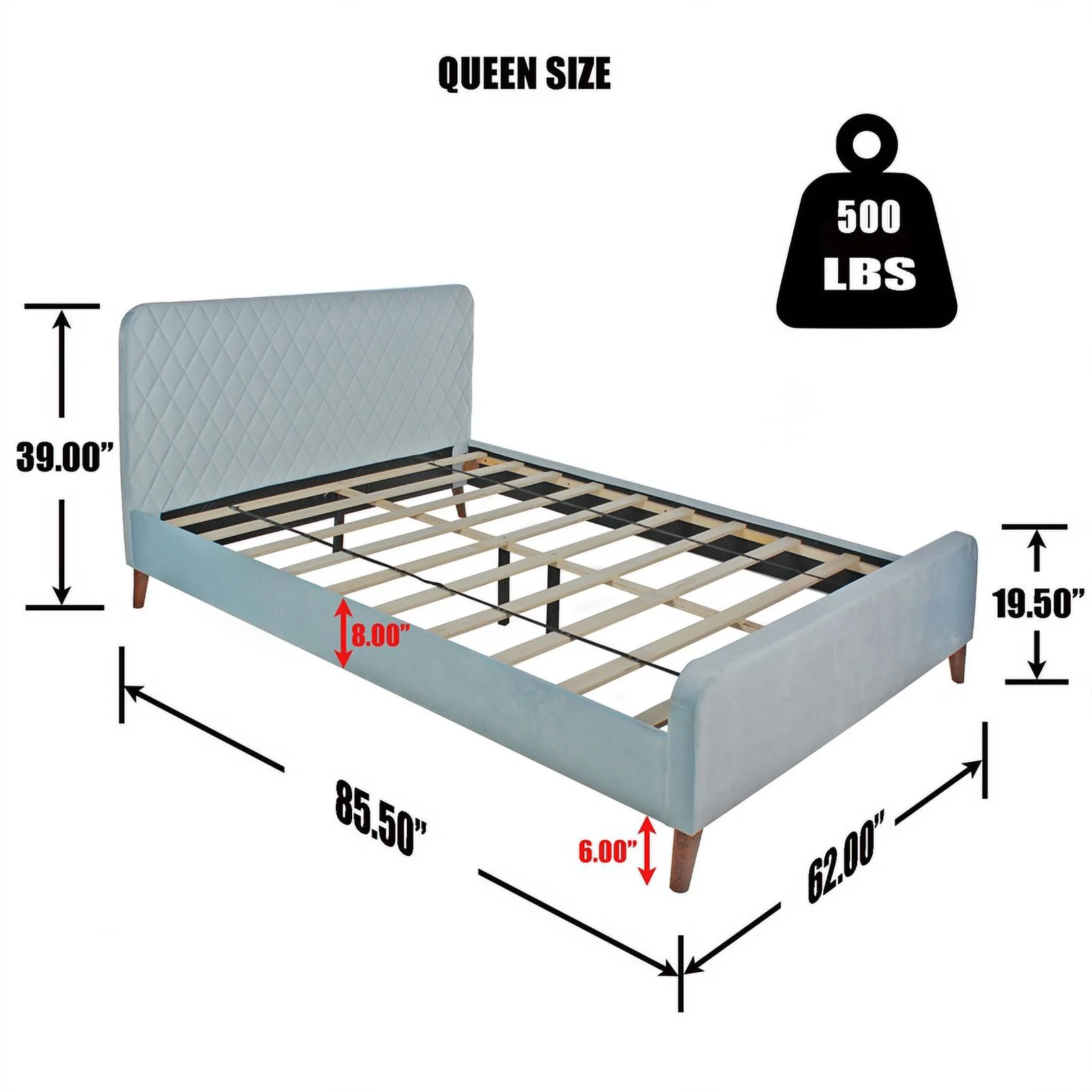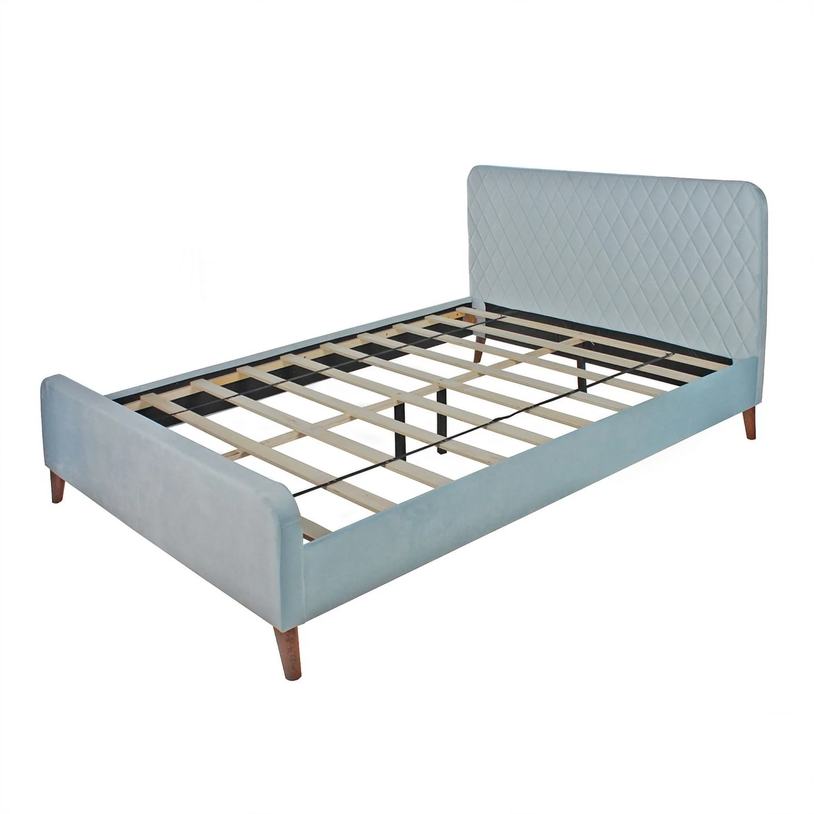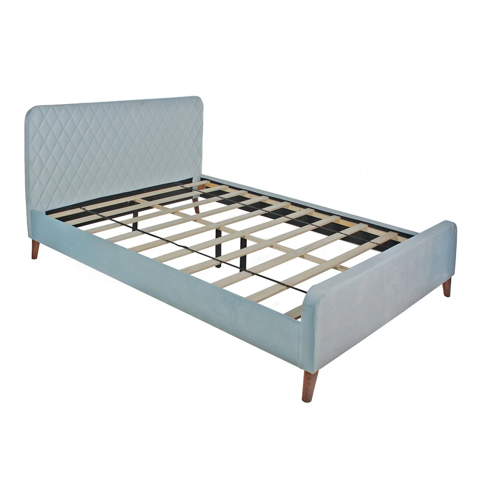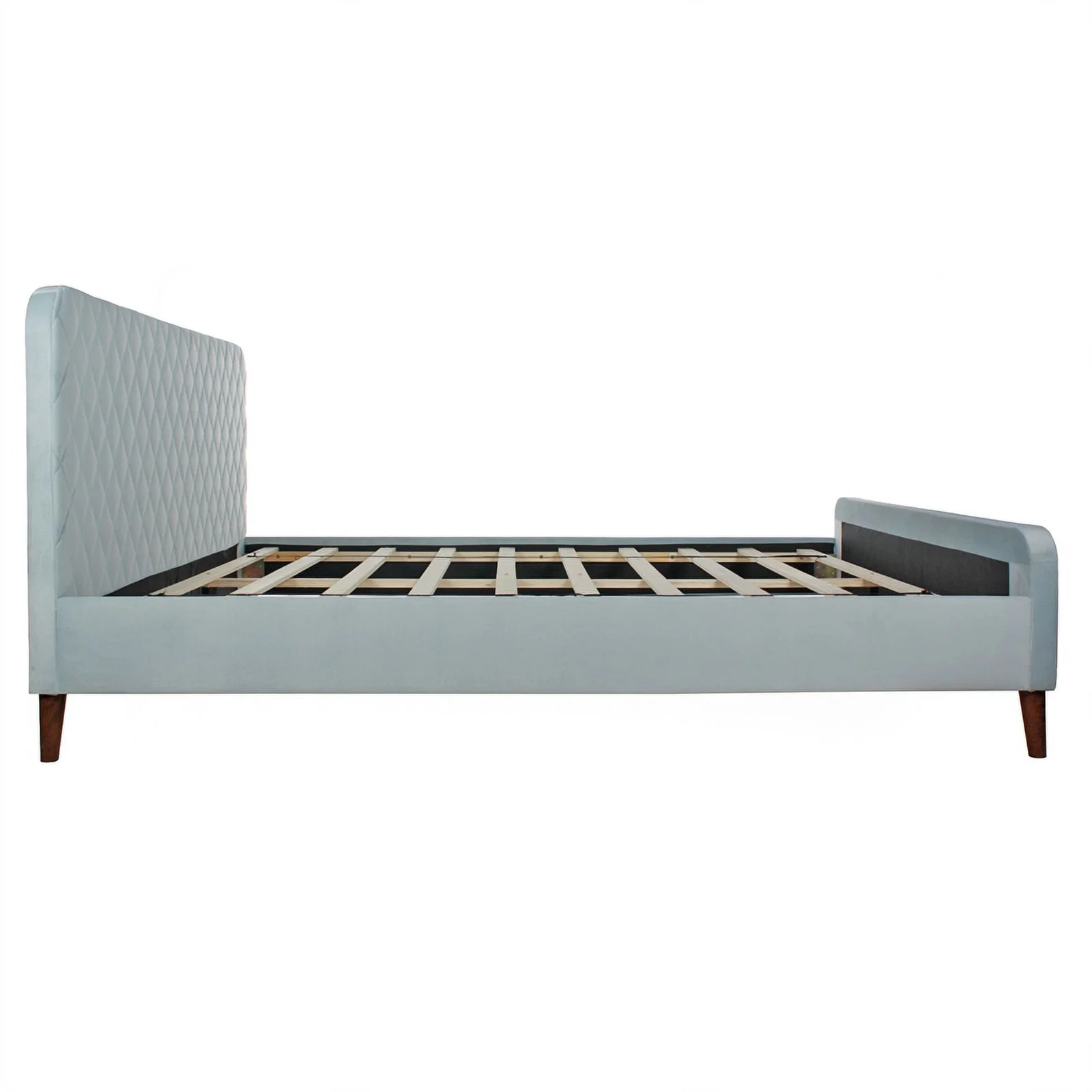 Kings Brand Furniture Blue Velvet Upholstered Bed with Headboard & Nailhead Trim, King Size
