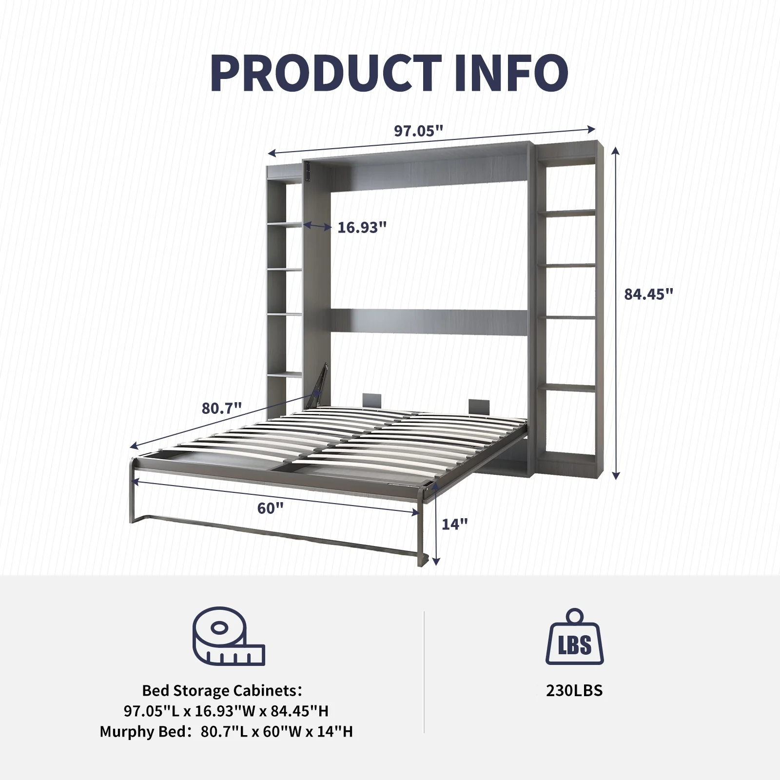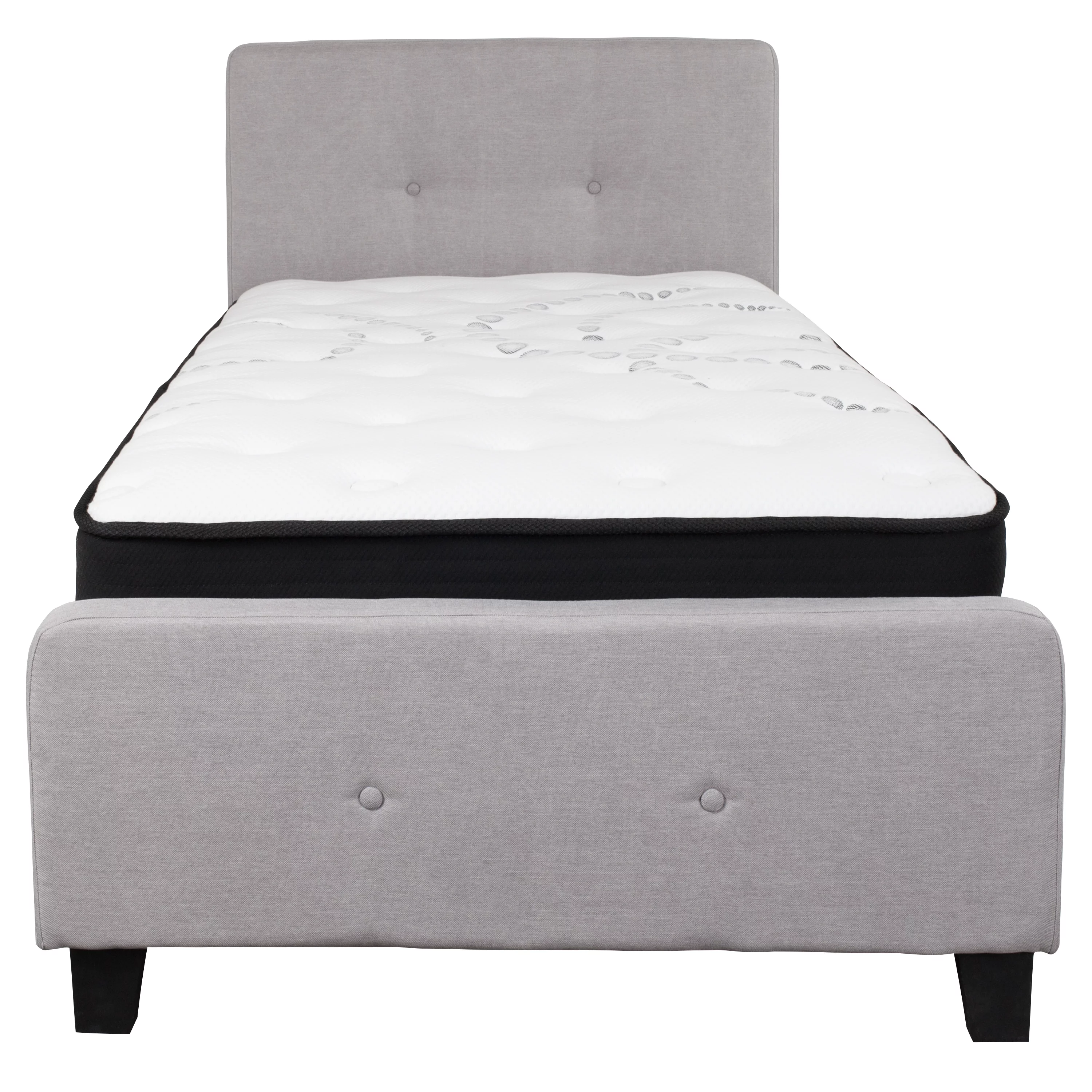 Emma + Oliver Twin Two Button Tufted Platform Bed/Mattress-Light Gray Fabric