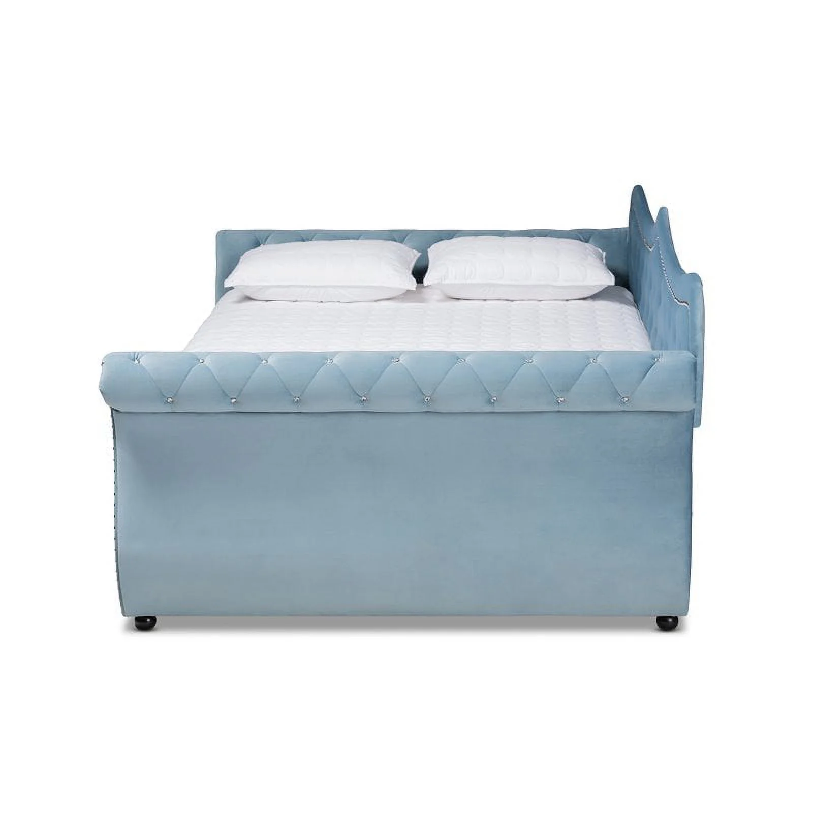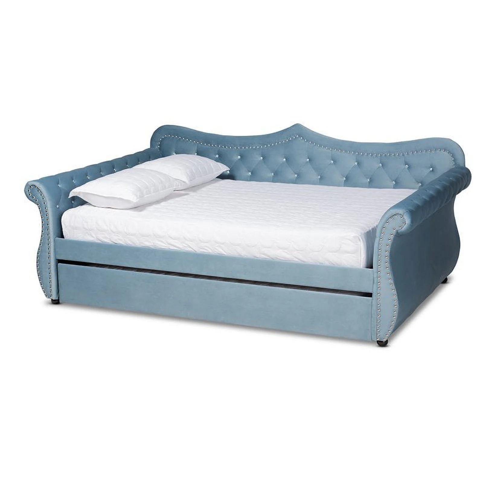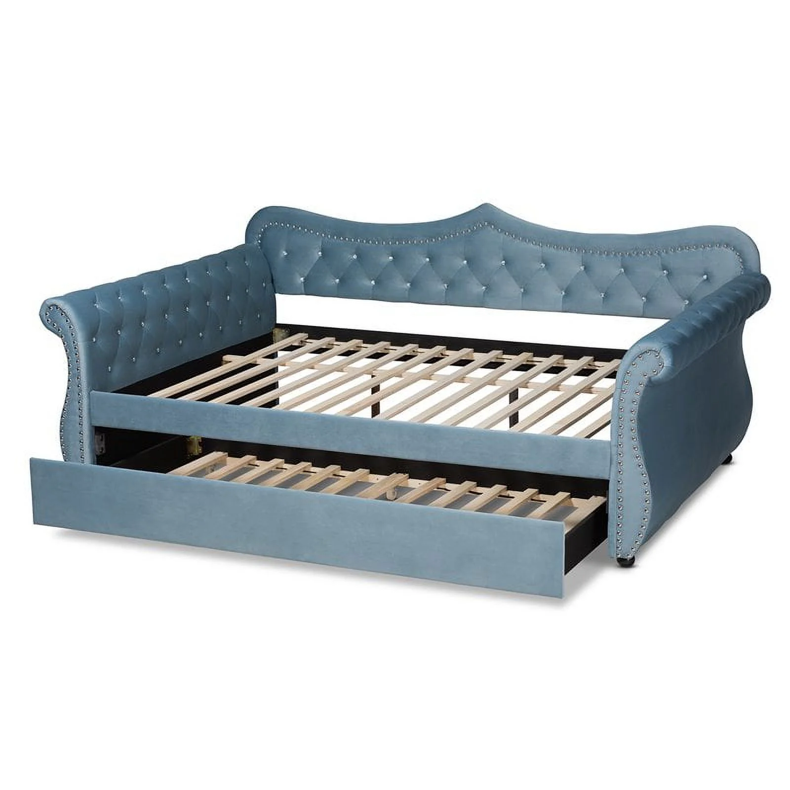 Bowery Hill Light Blue Velvet Tufted Queen Size Wood Daybed with Trundle