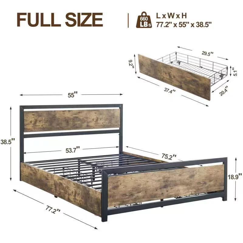 Modern 4pc Queen Size Upholstered LED Headboard Bed Dresser LED Lighting Mirror Nightstand Wooden Bedroom Furniture Set