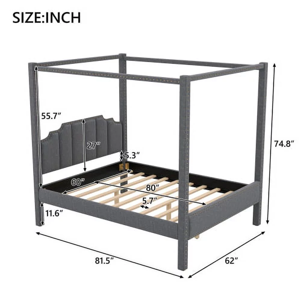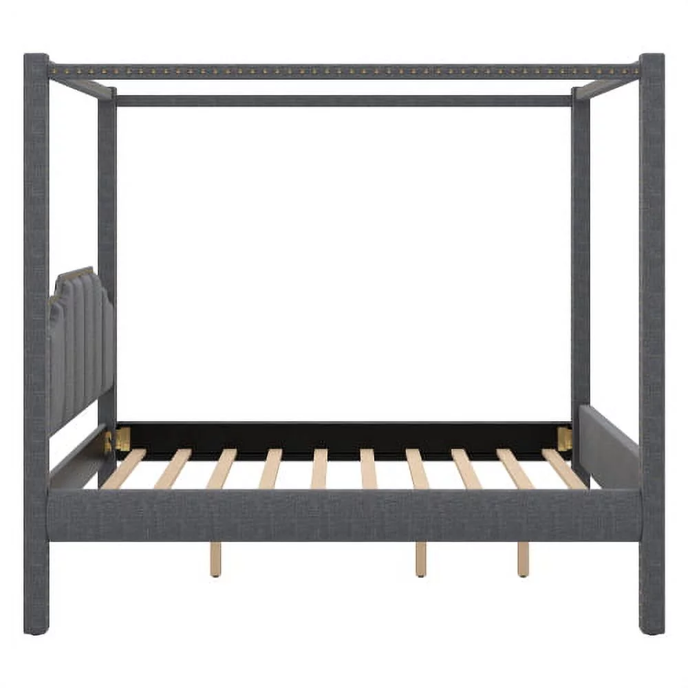 Churanty Upholstery Canopy Bed Full Size 4 Poster Full Bed Frame Wood Full Size Platform Bed Frame with Headboard,Gray