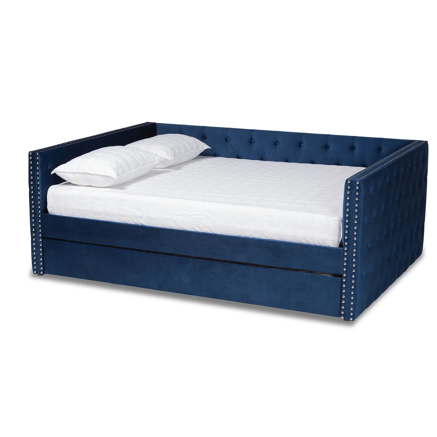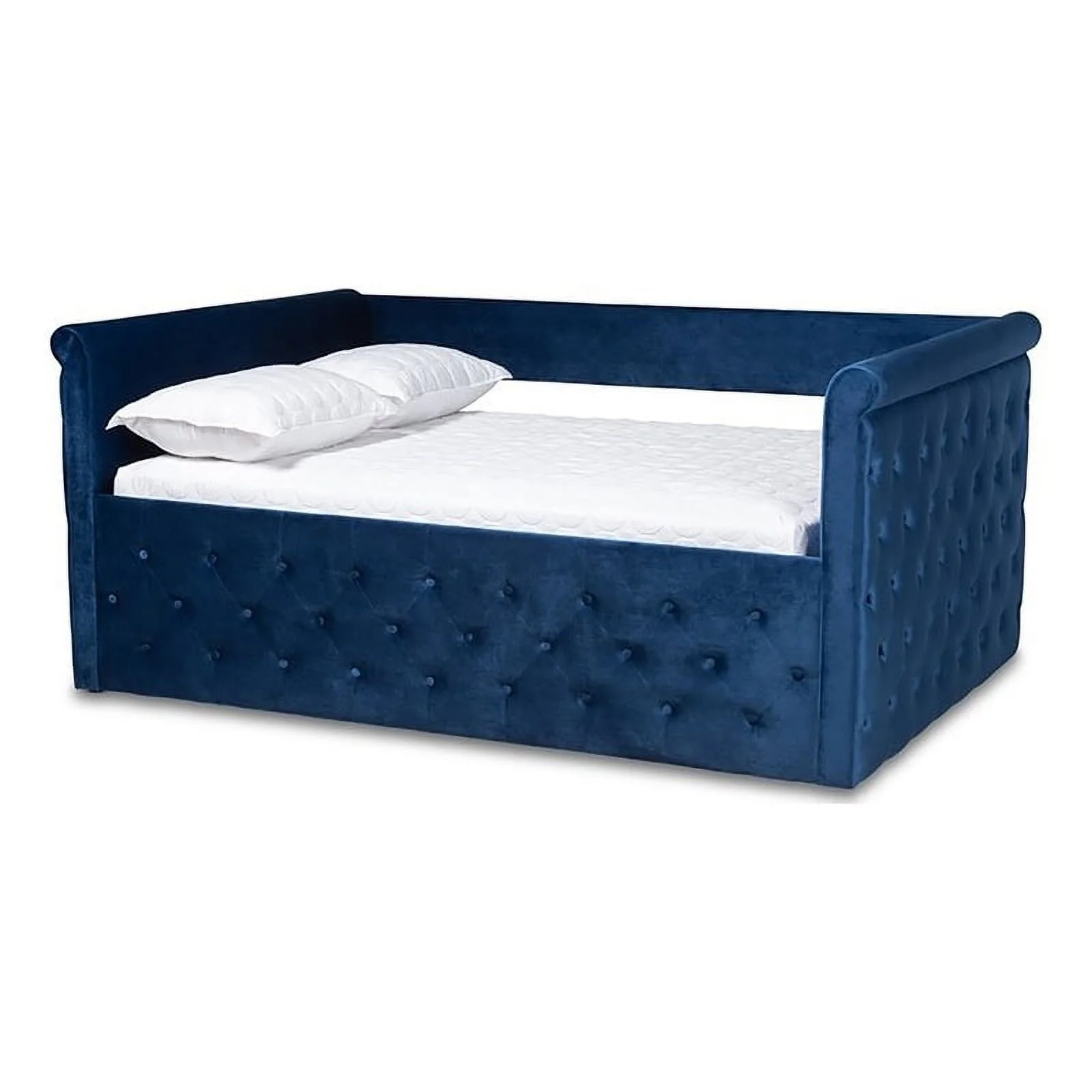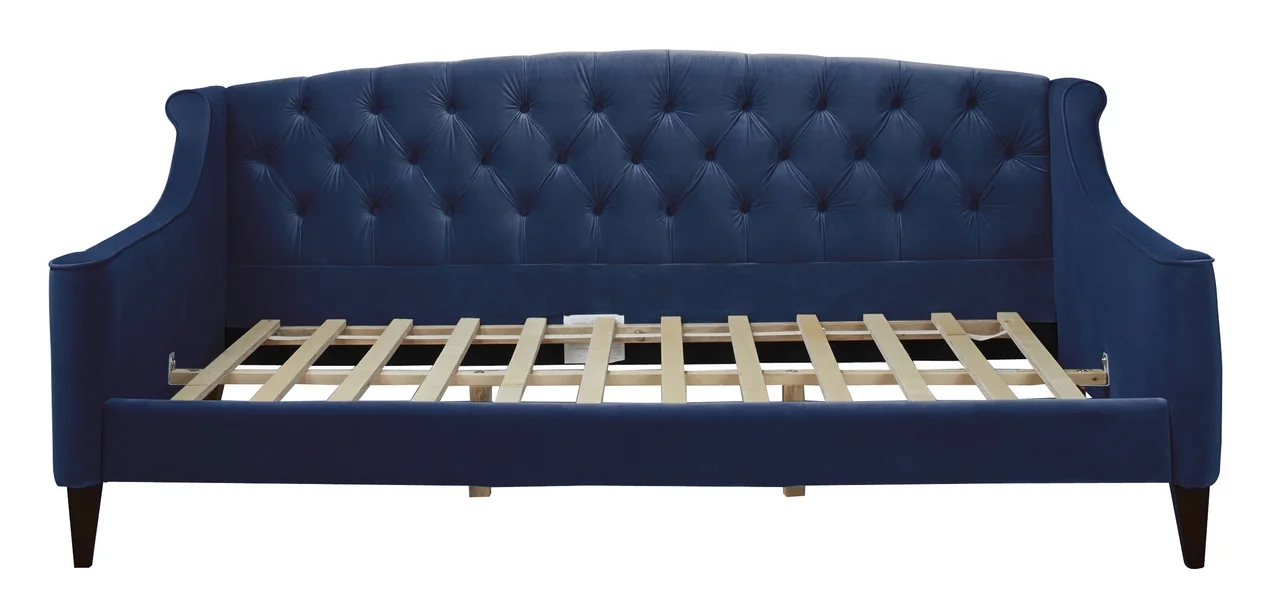 HomeStock French Country Navy Blue Velvet Fabric Upholstered Full Size Daybed With Trundle