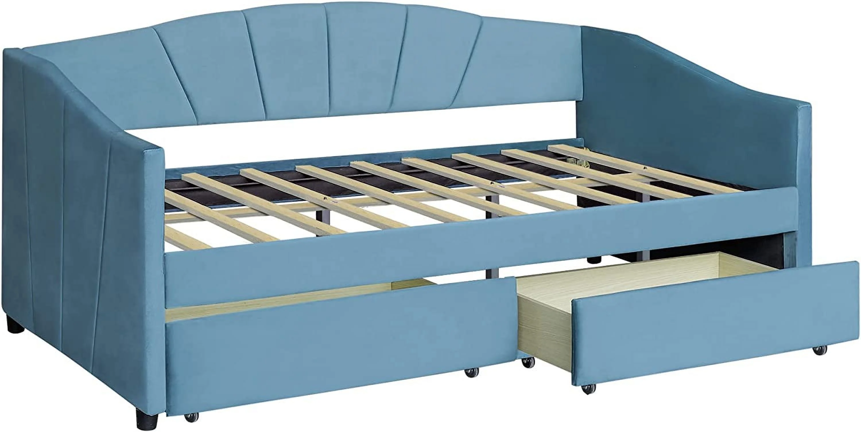Size Daybed With Storage, Velvet Upholstered Daybed Sofa Bed With 2 Drawers And Wood Slat Support, No Box Spring Needed (, Blue)