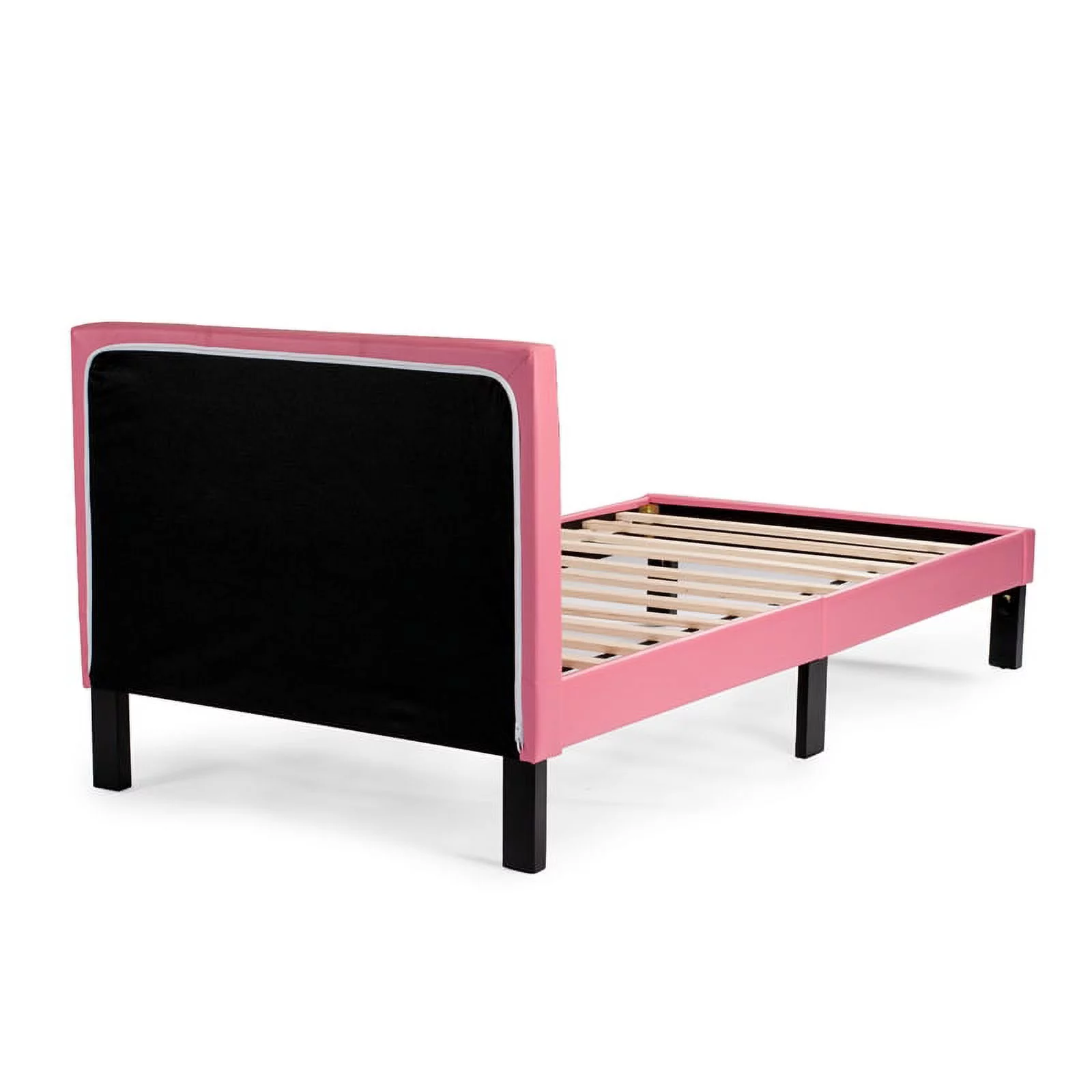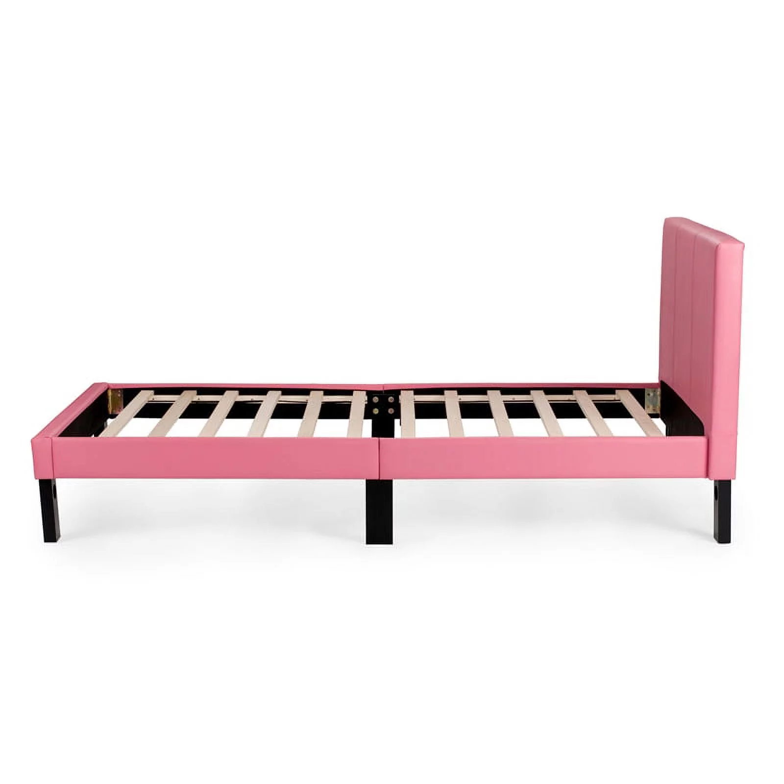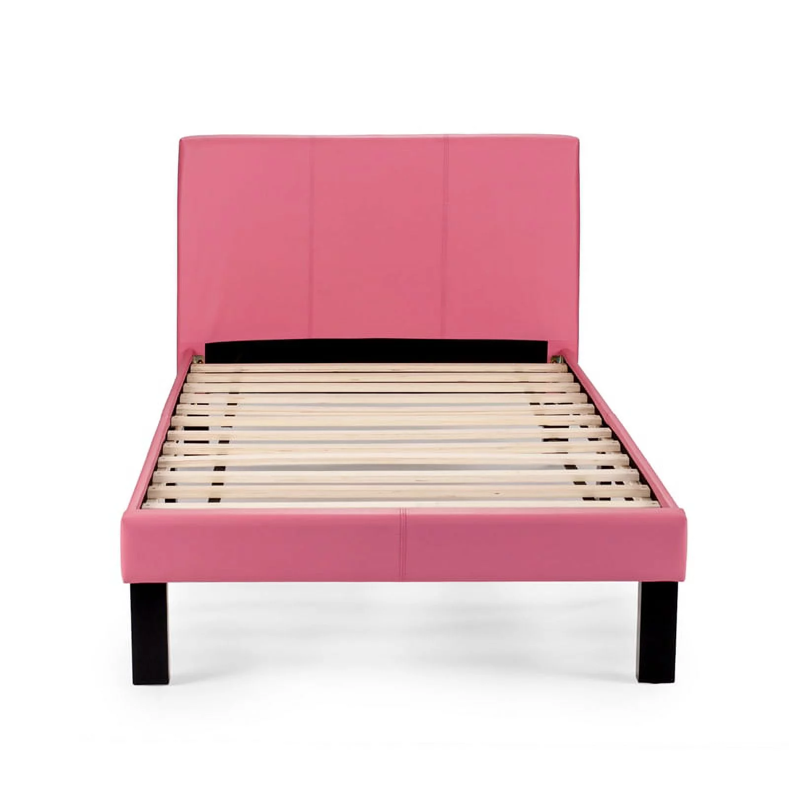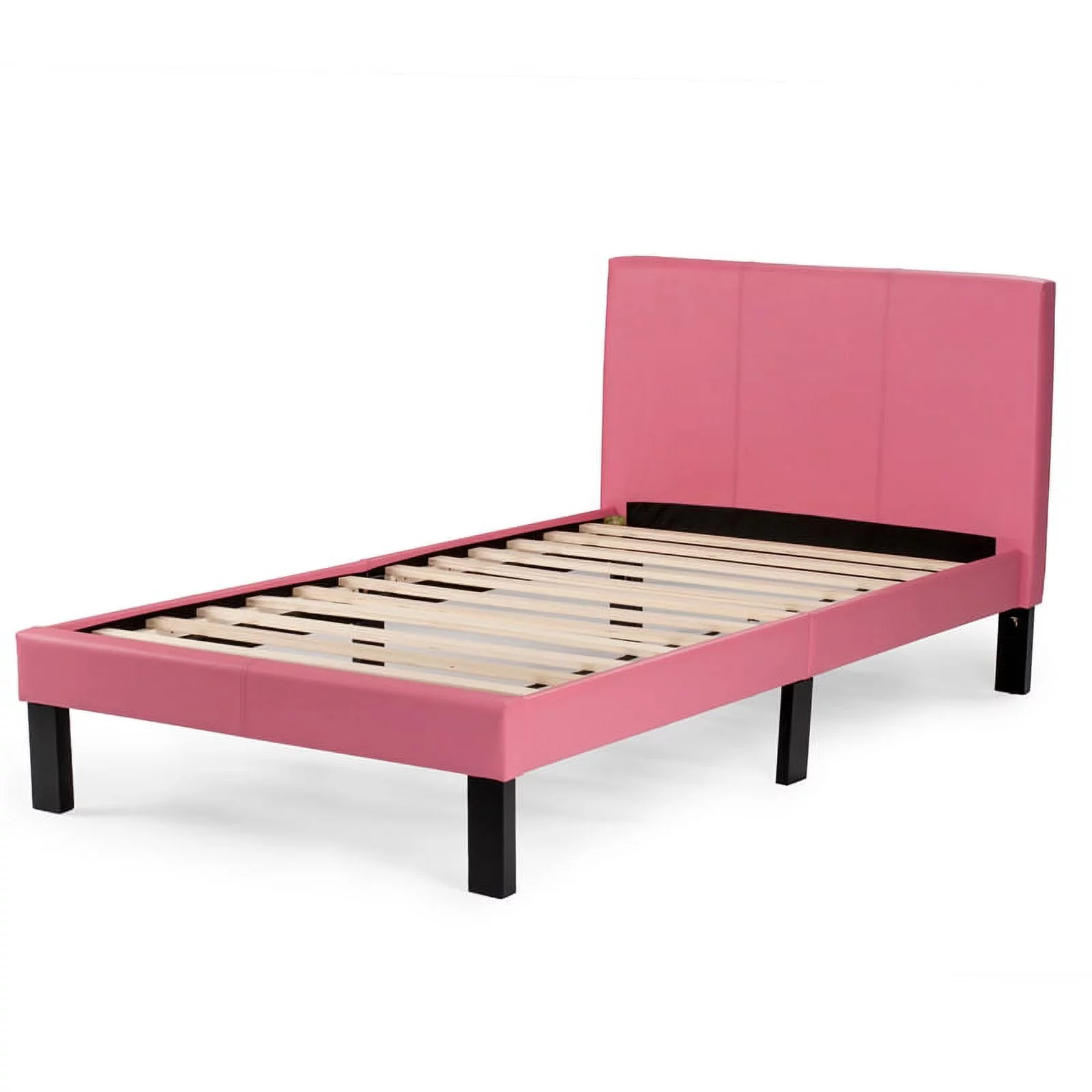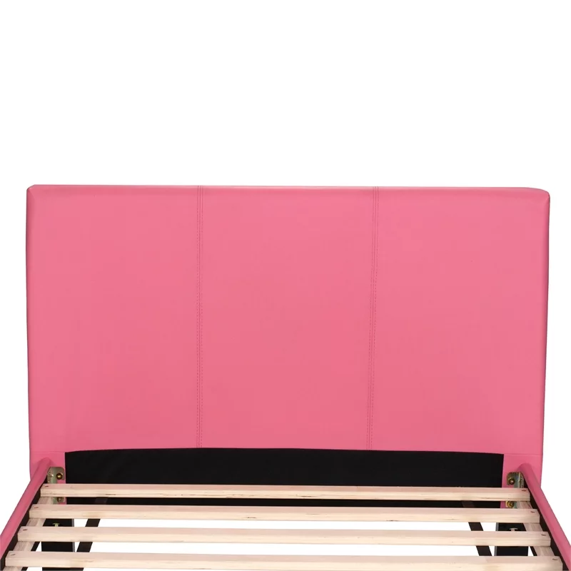 Poundex F9300T Upholstered Bed Frame with Slats in Pink Faux Leather - Twin Size