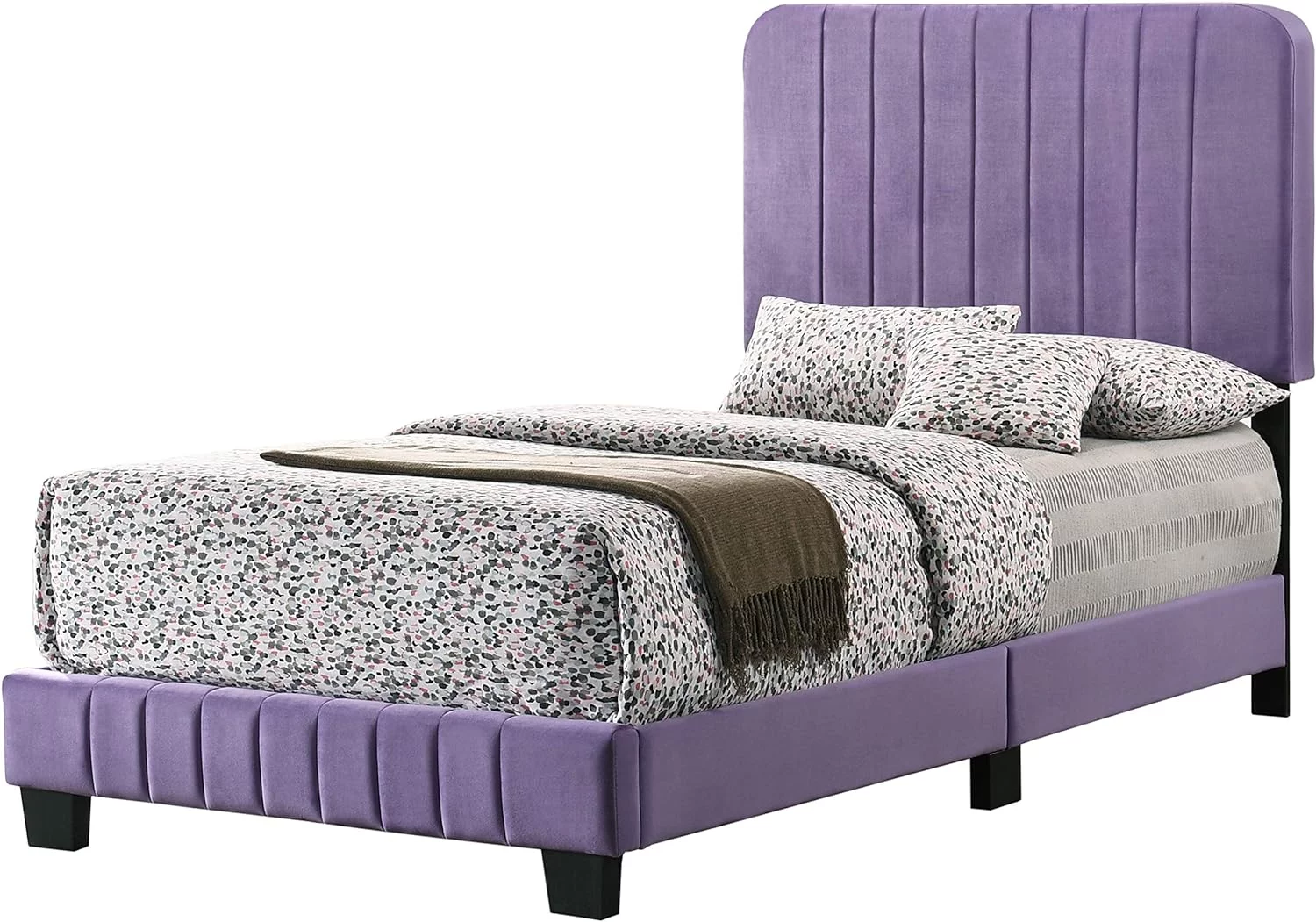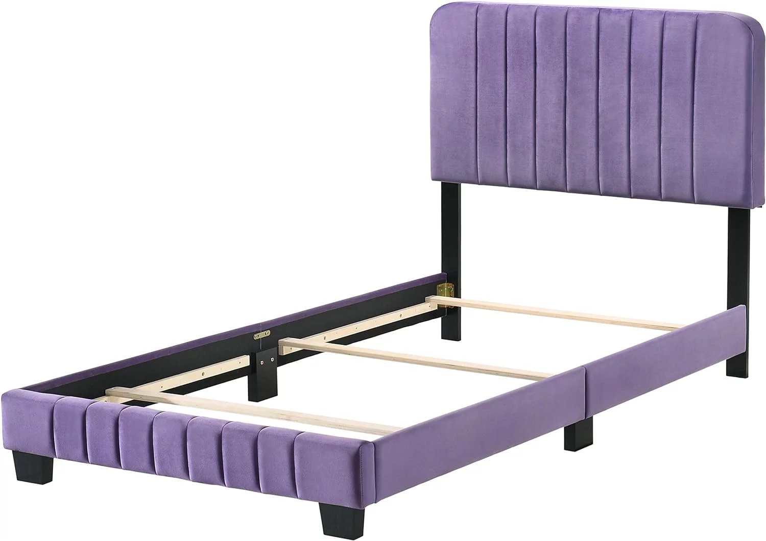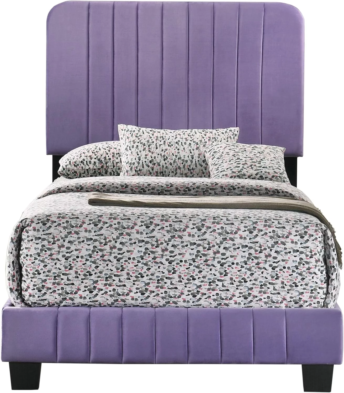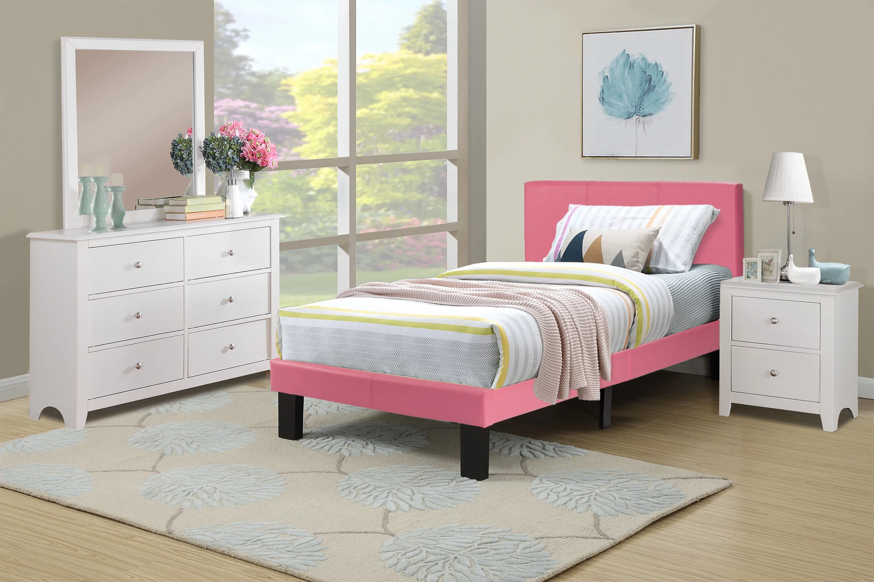 Poundex F9300T Upholstered Bed Frame with Slats in Pink Faux Leather - Twin Size