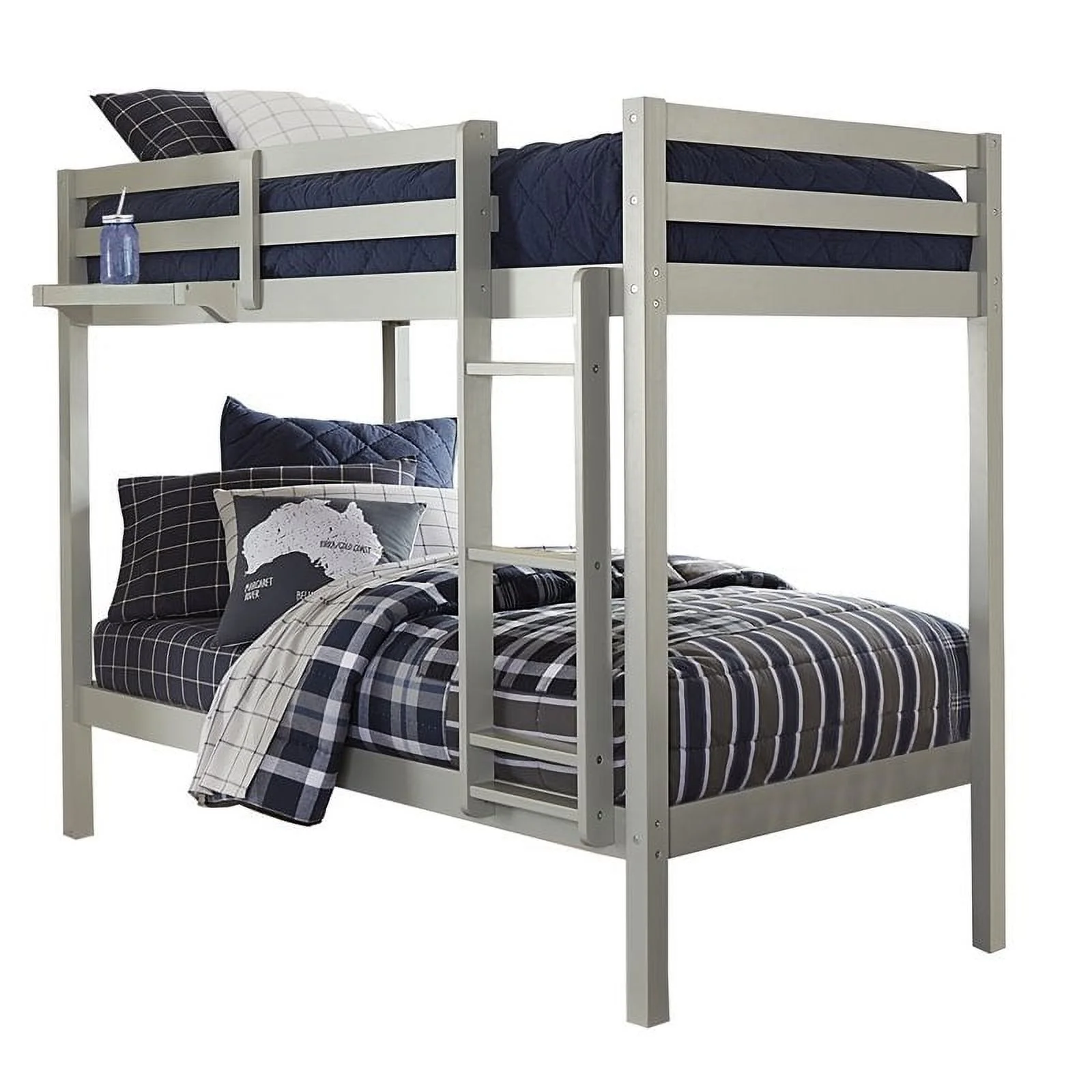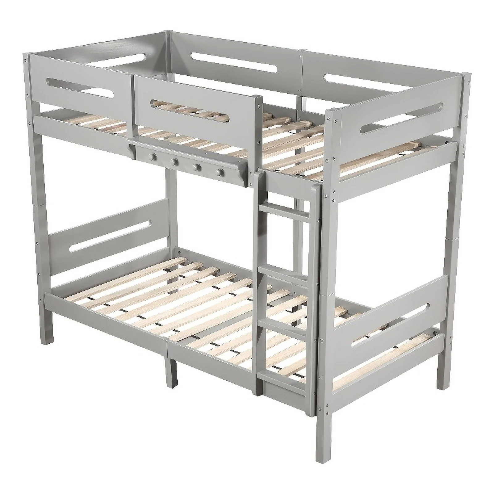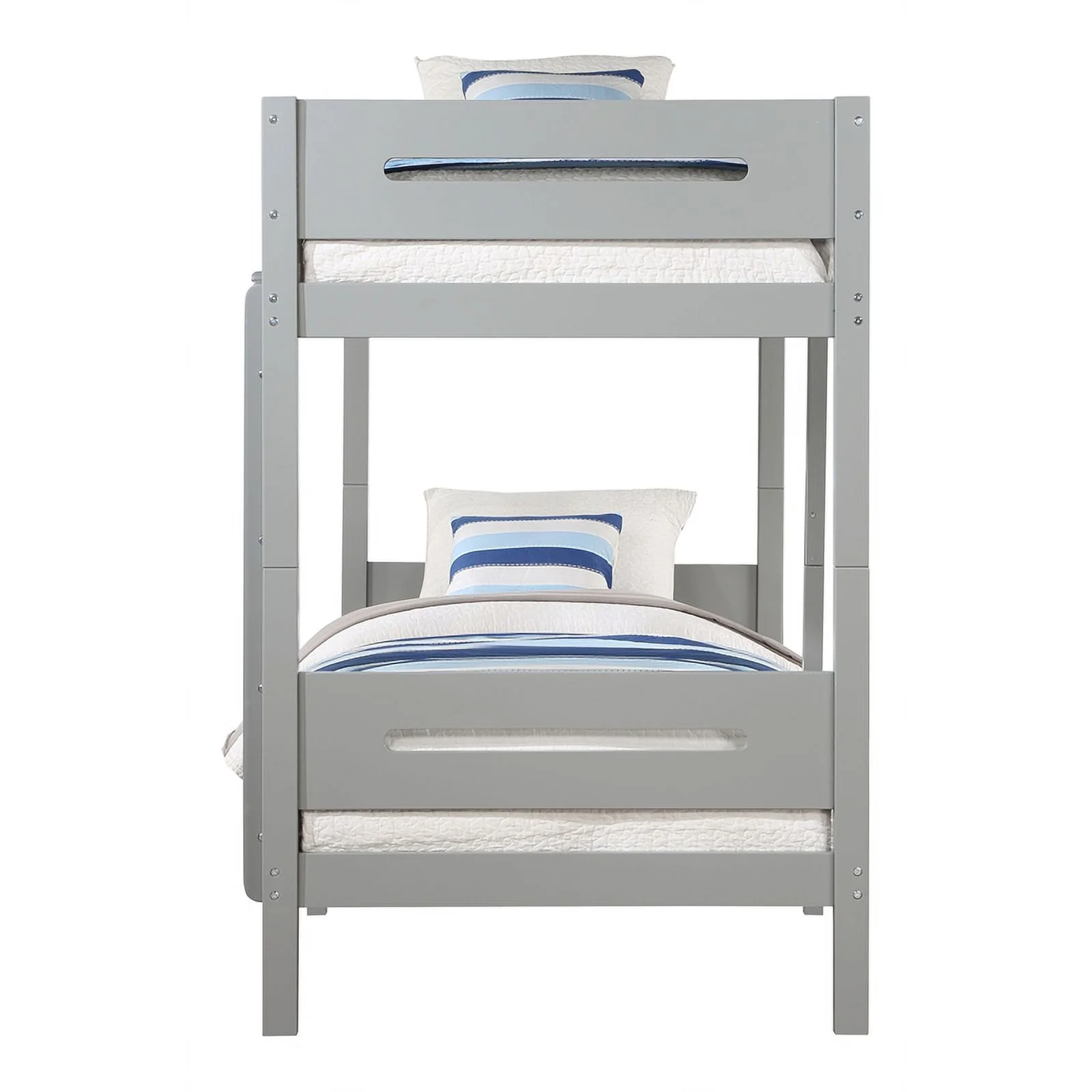 Pemberly Row Transitional Wooden Frame Twin over Twin Bunk Bed in Gray