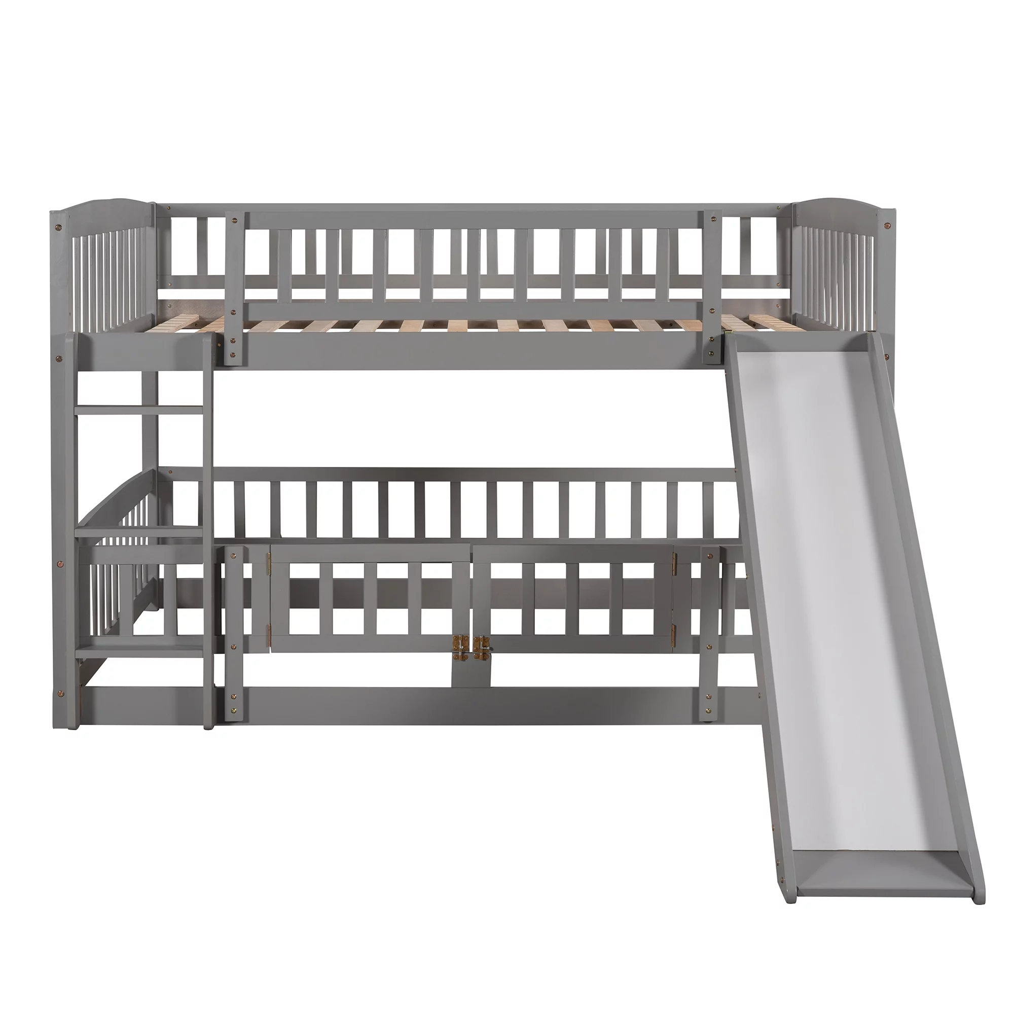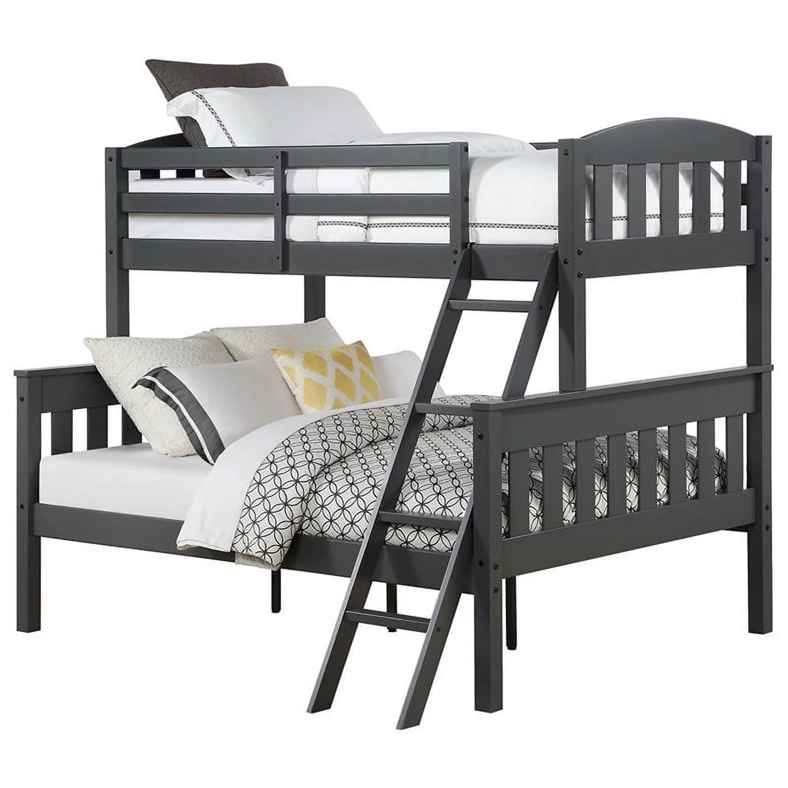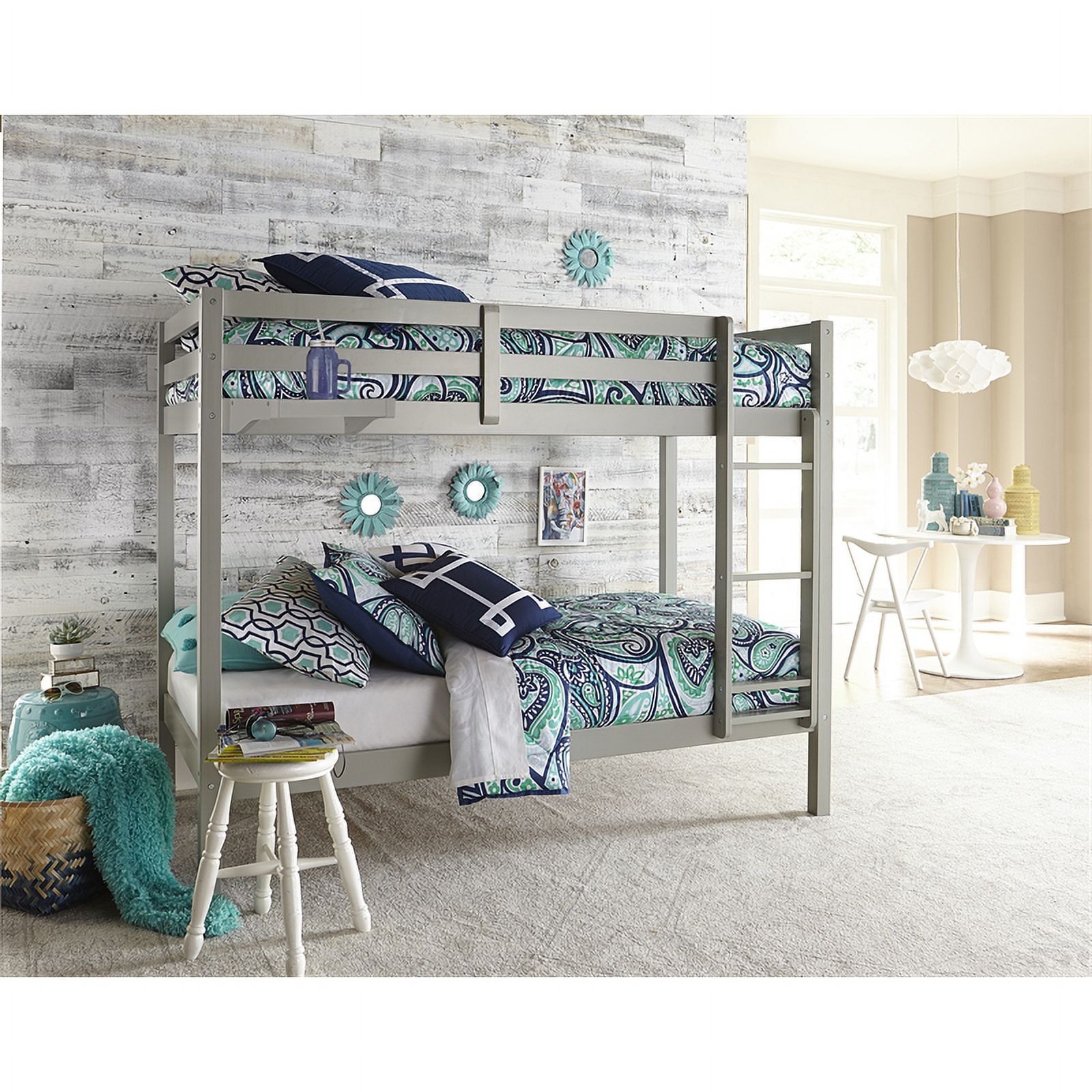 Pemberly Row Transitional Wooden Frame Twin over Twin Bunk Bed in Gray