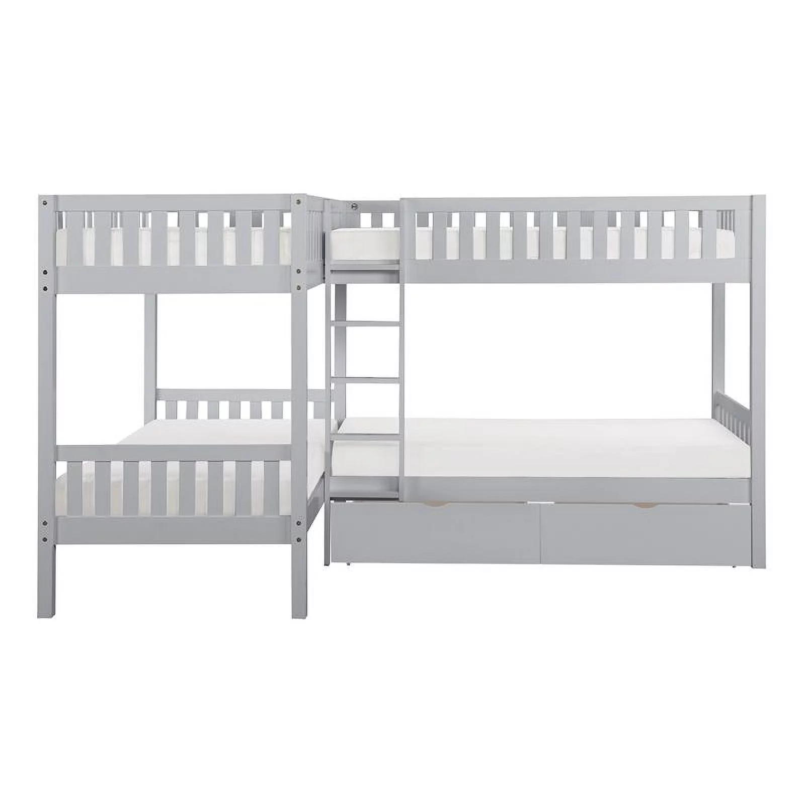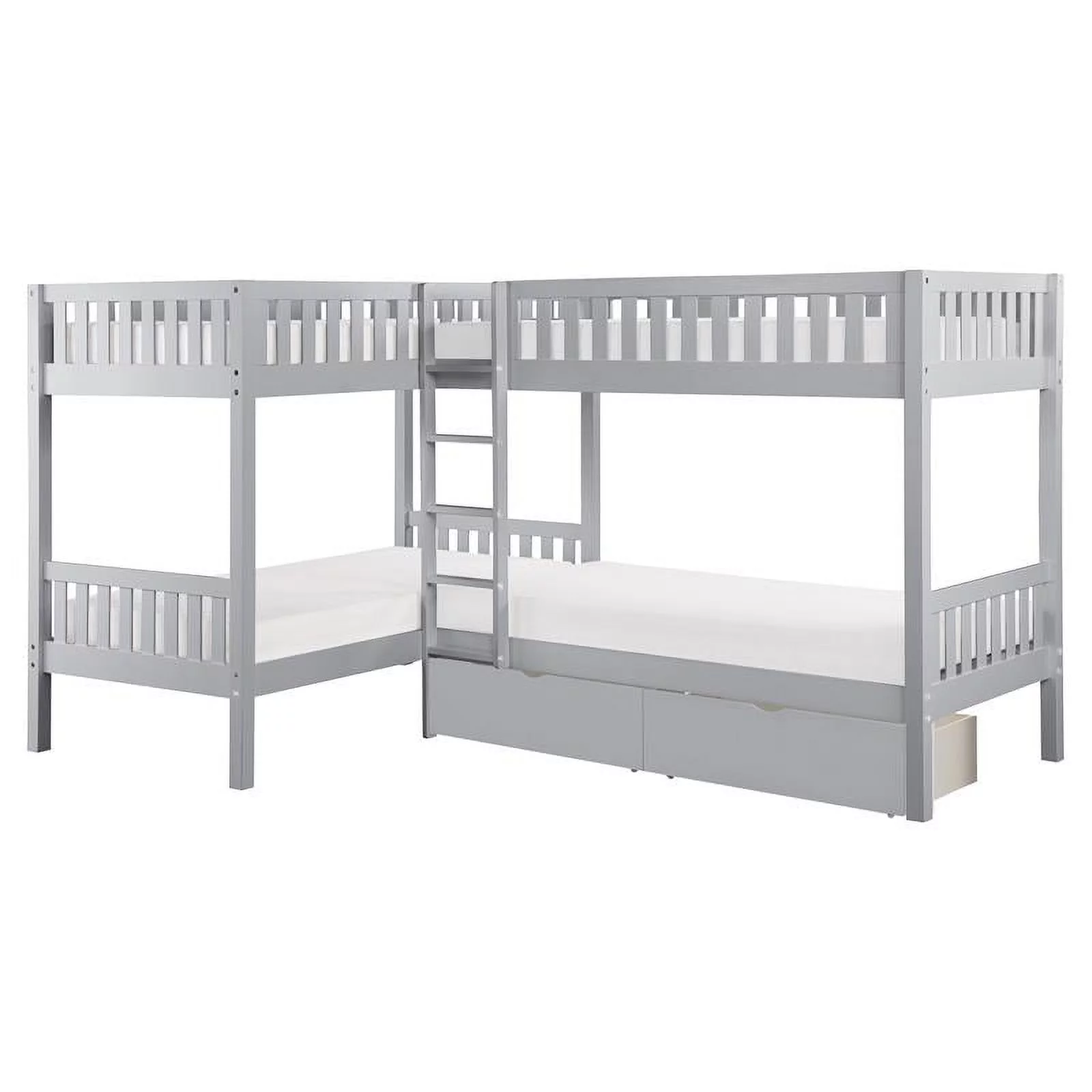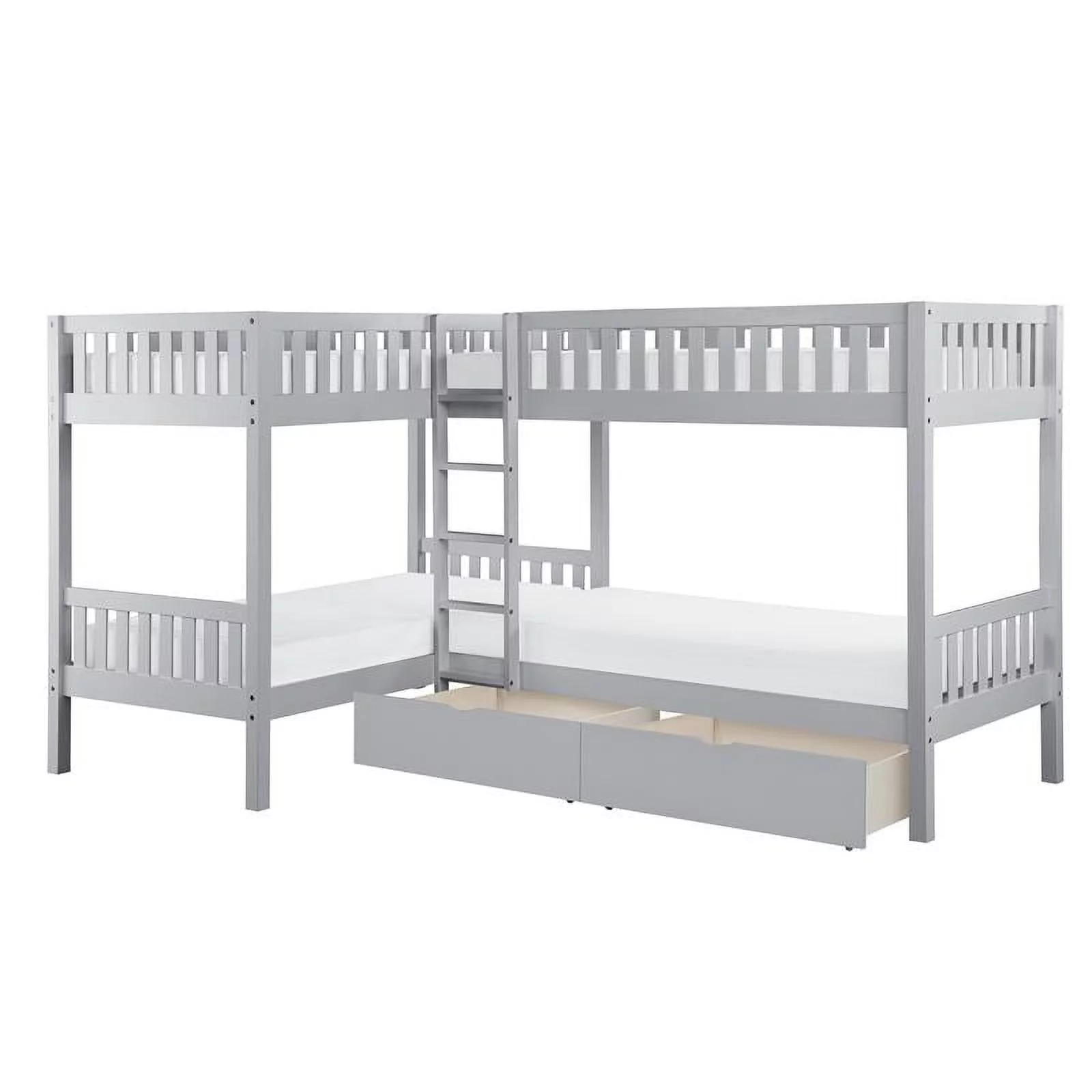 Pemberly Row Transitional Wood Corner Bunk Bed with Storage Boxes in Gray