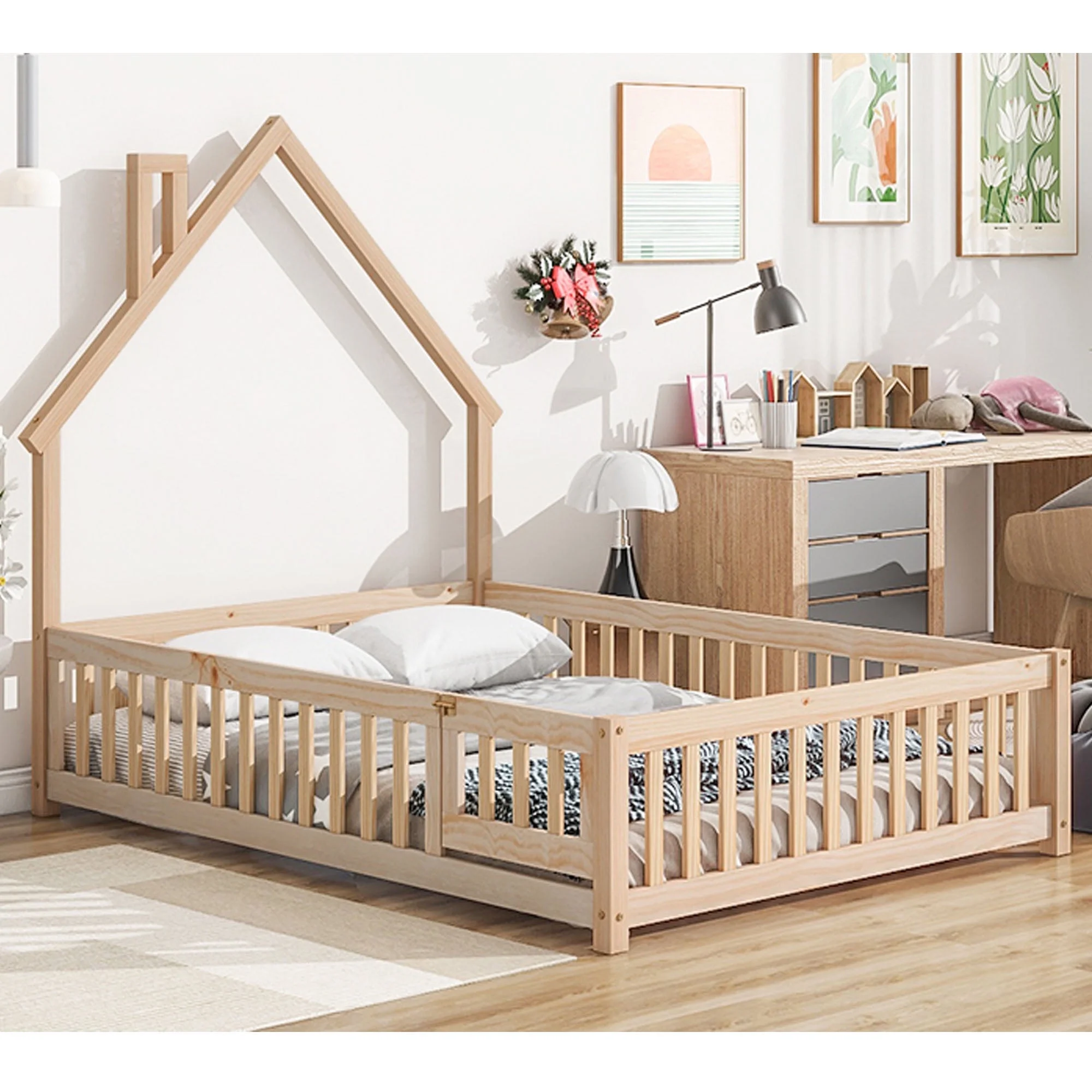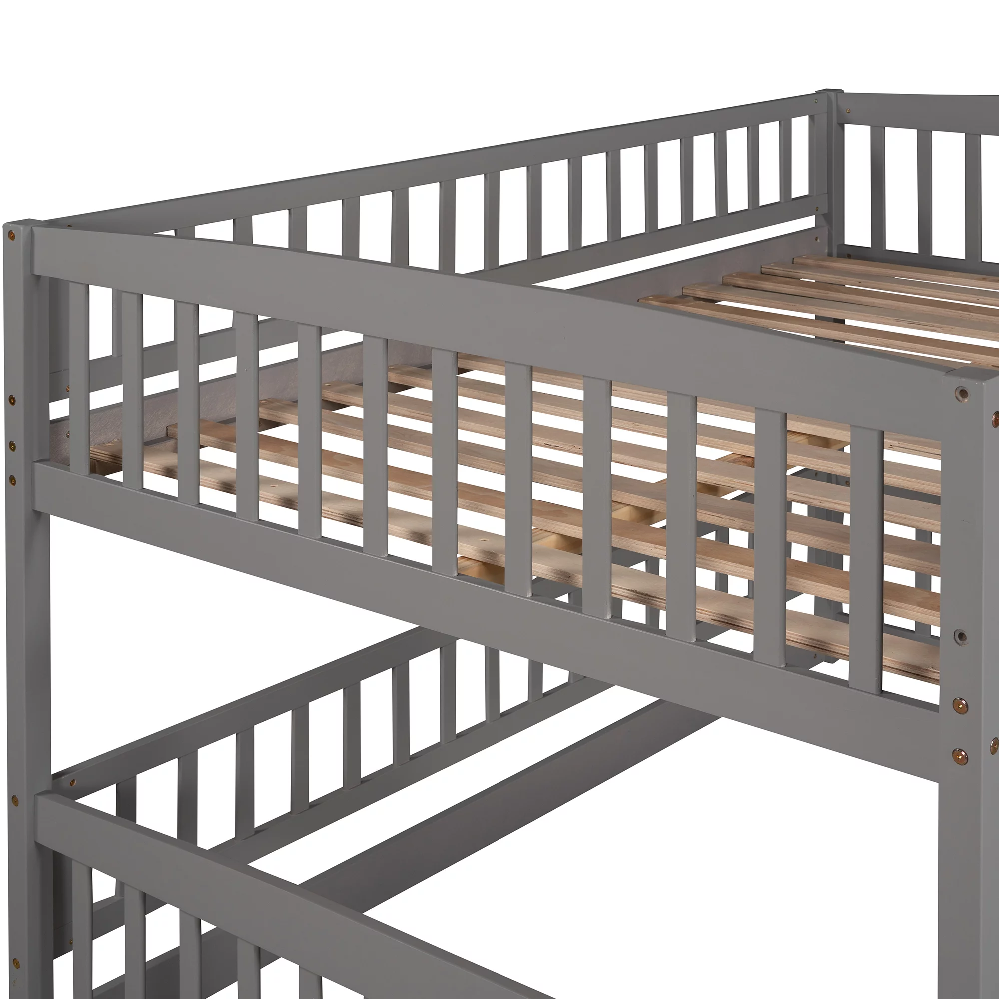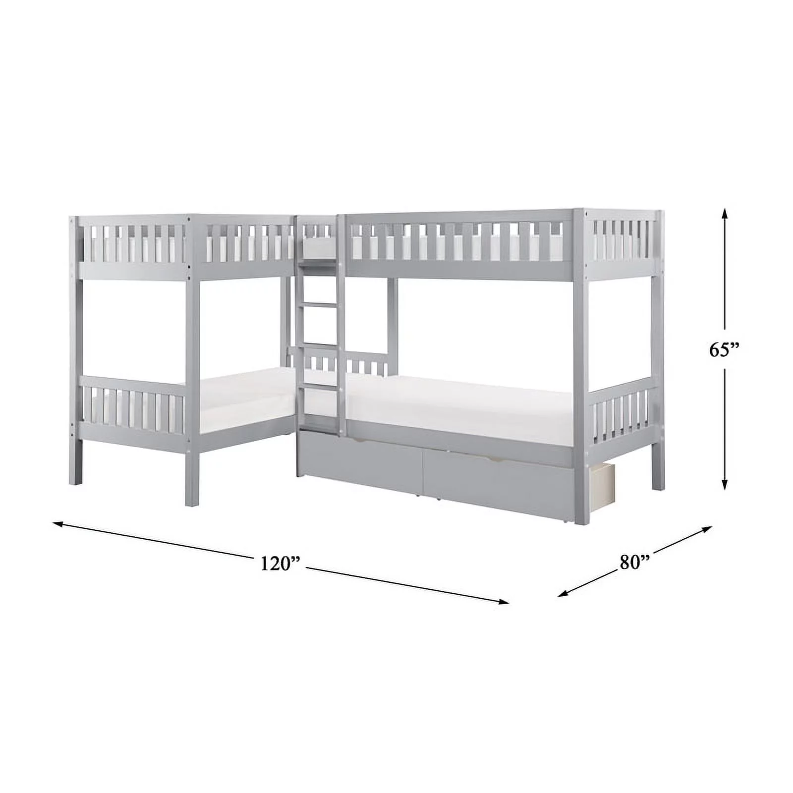 Pemberly Row Transitional Wood Corner Bunk Bed with Storage Boxes in Gray