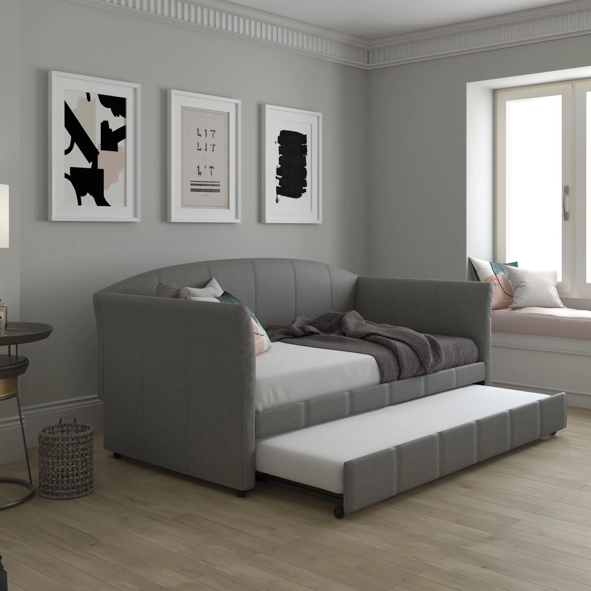 CosmoLiving by Cosmopolitan Nolita Upholstered Daybed and Trundle Twin in Grey