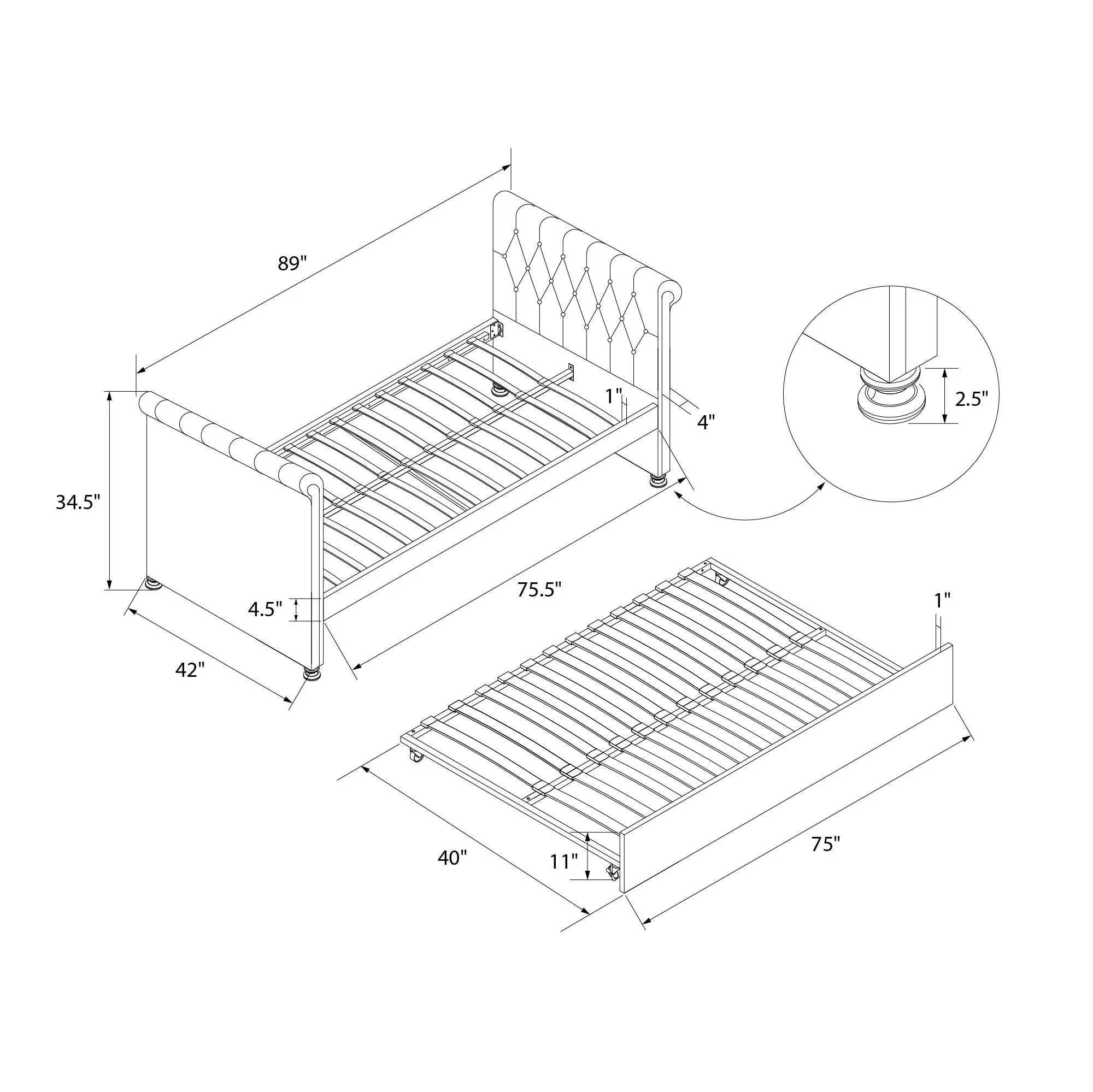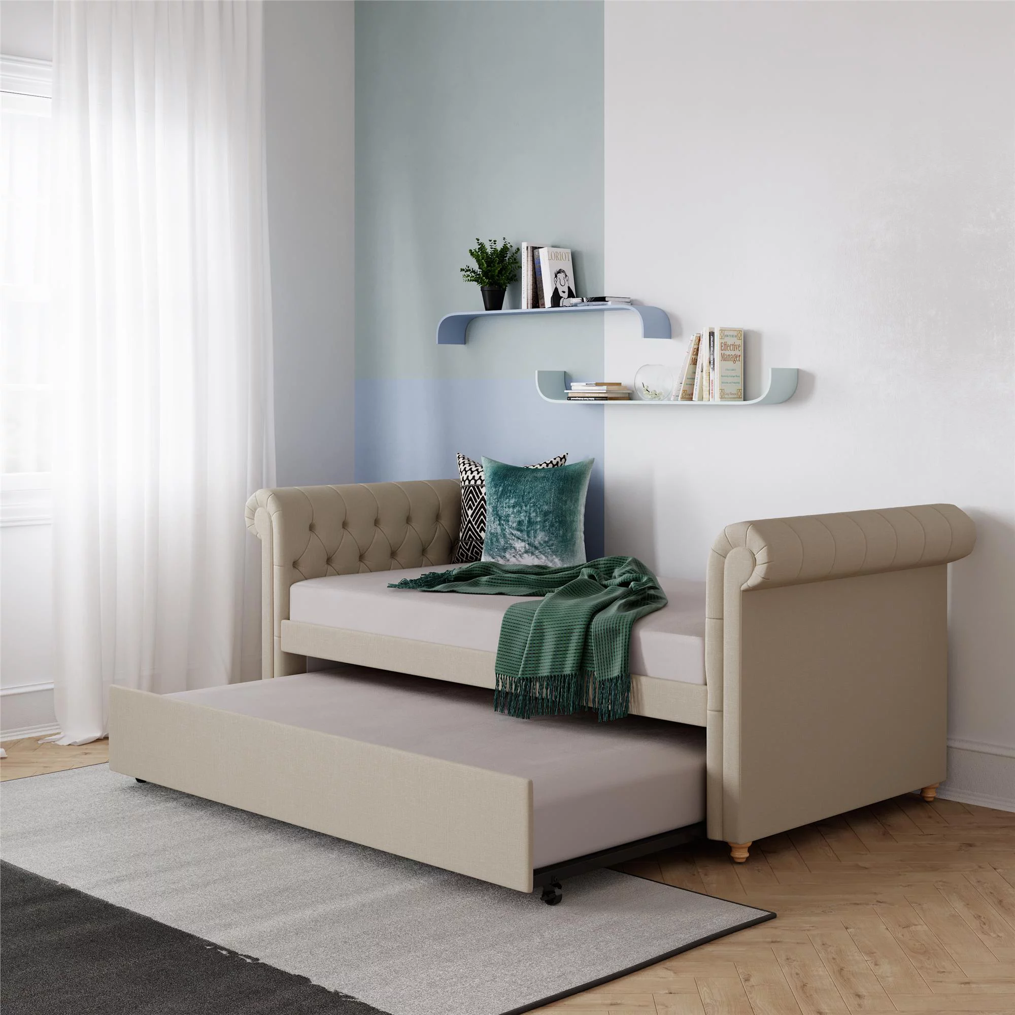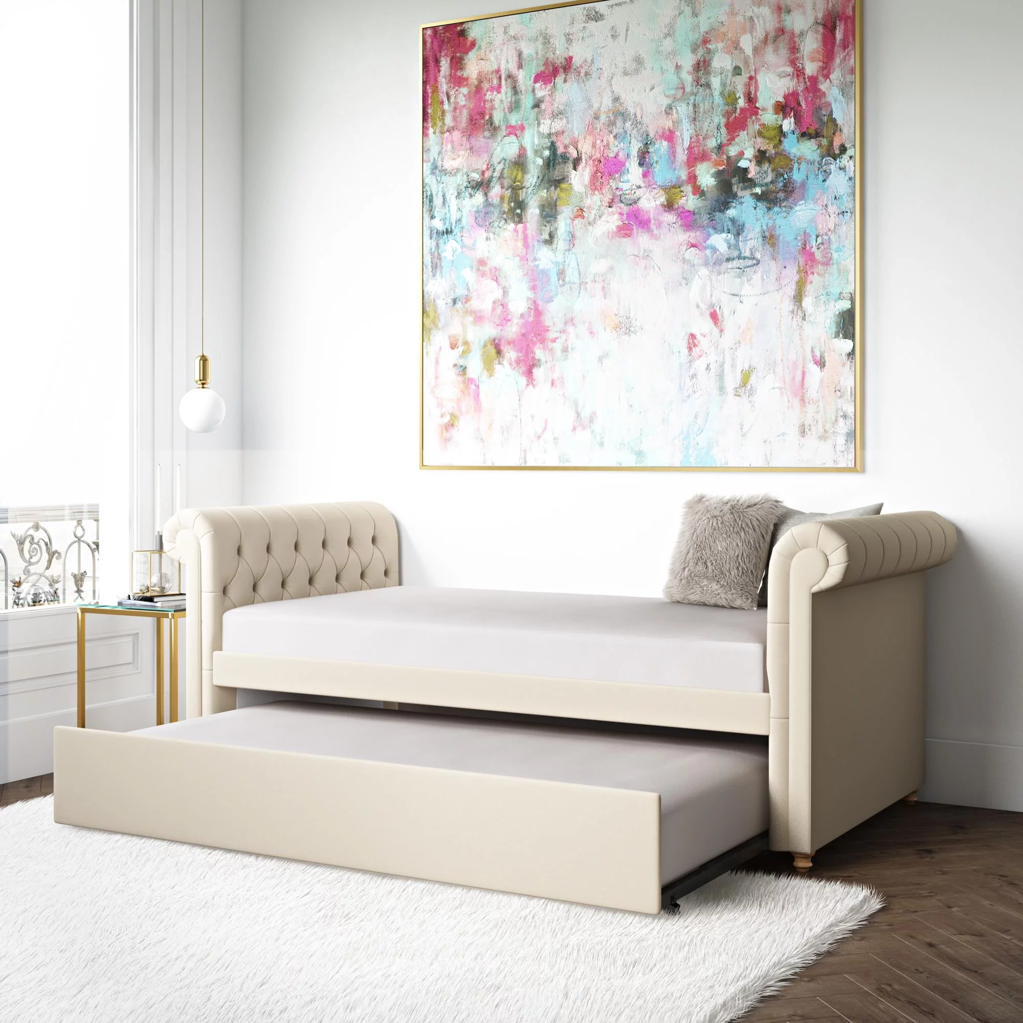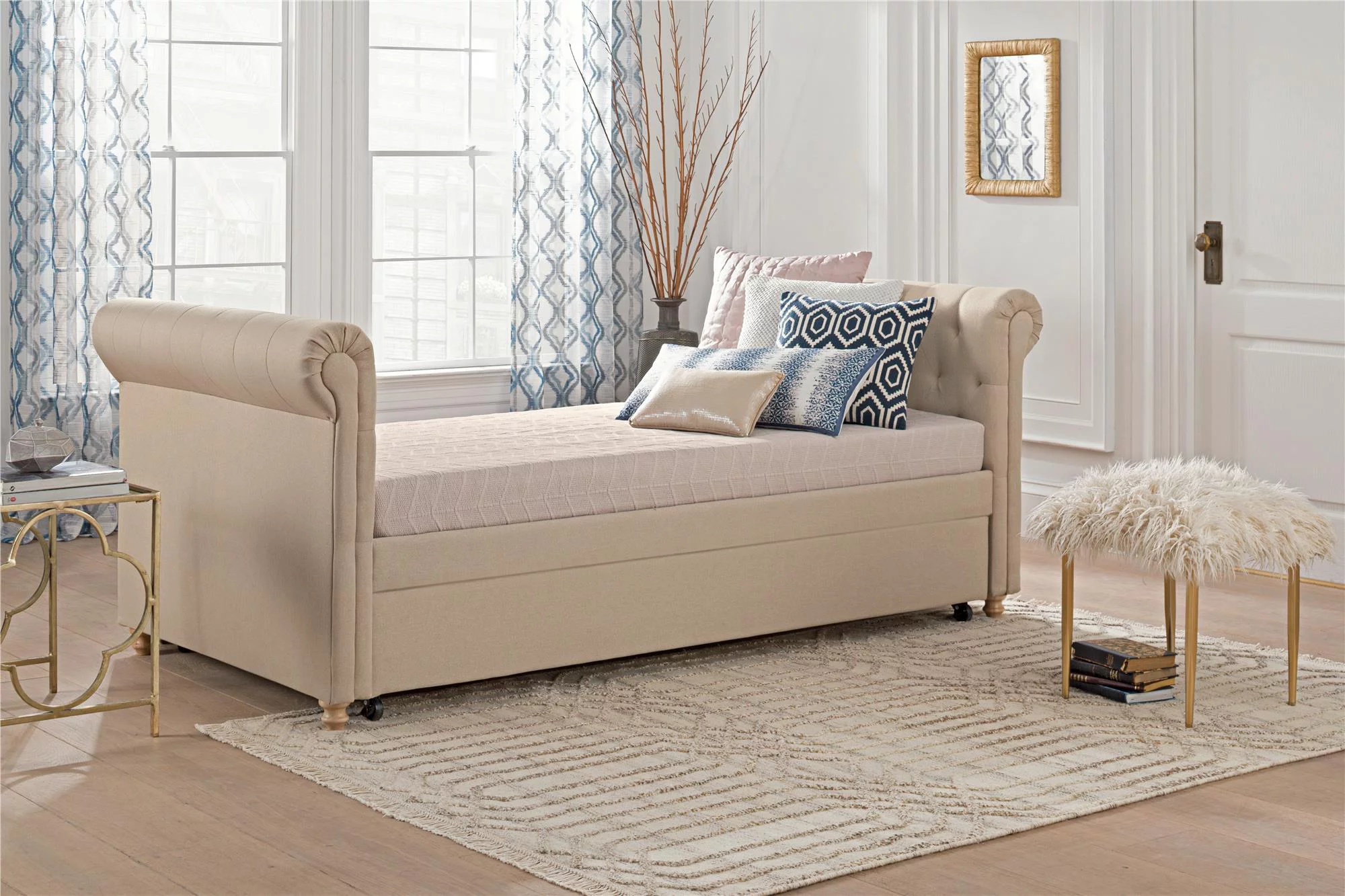 Weston Home Kenswick Tufted Upholstered Twin Daybed with Trundle, Beige
