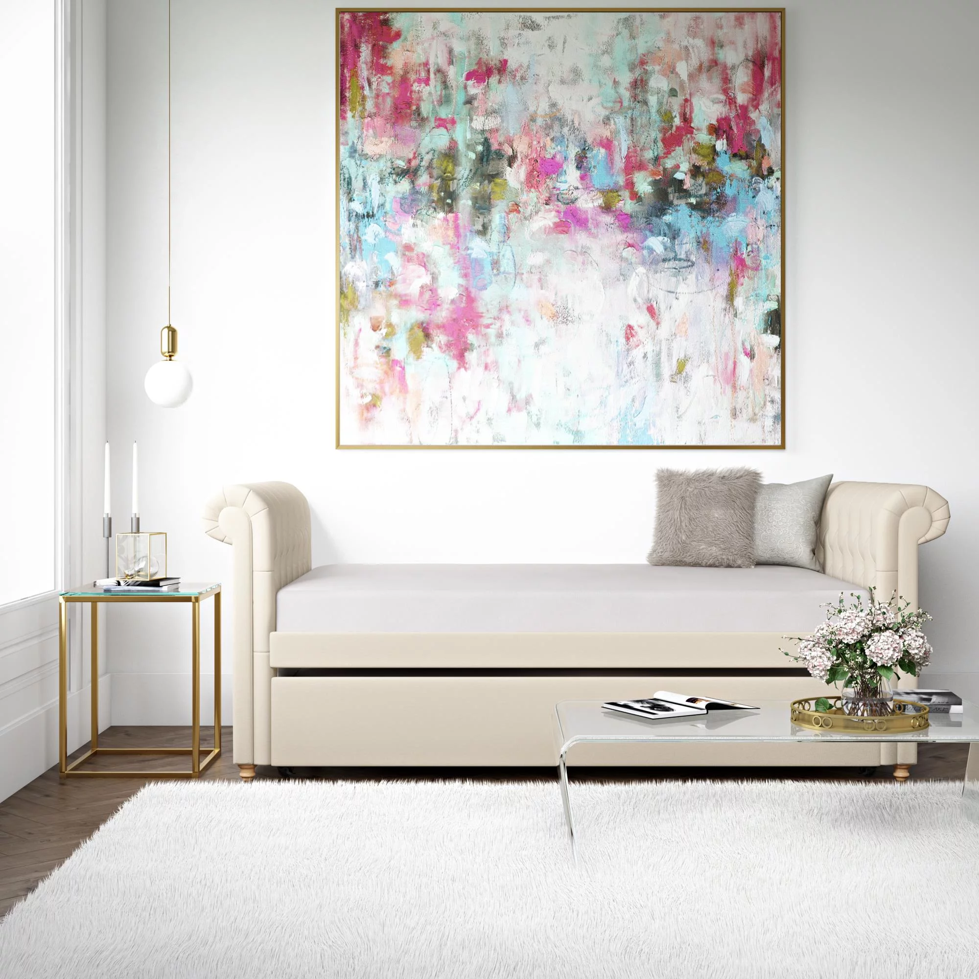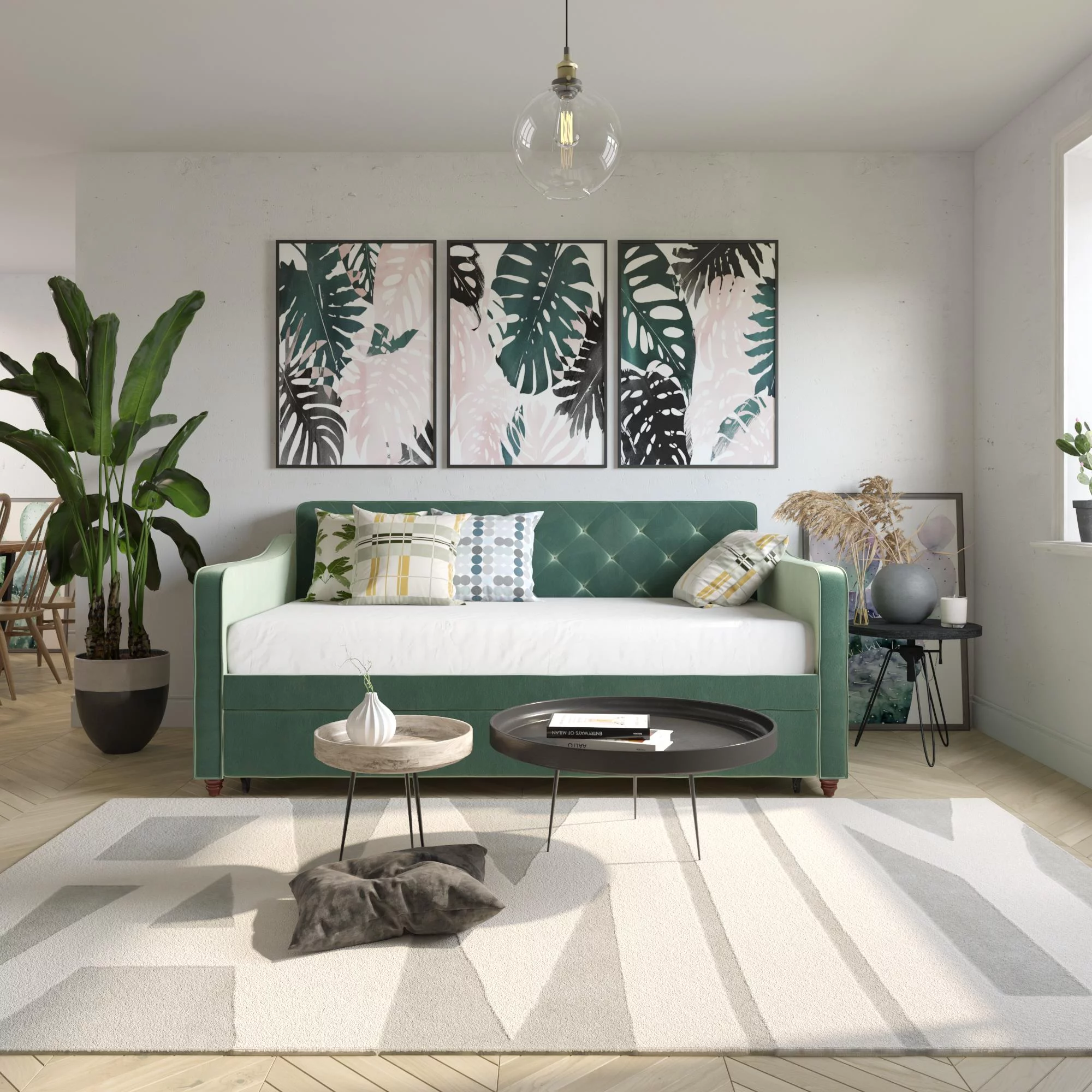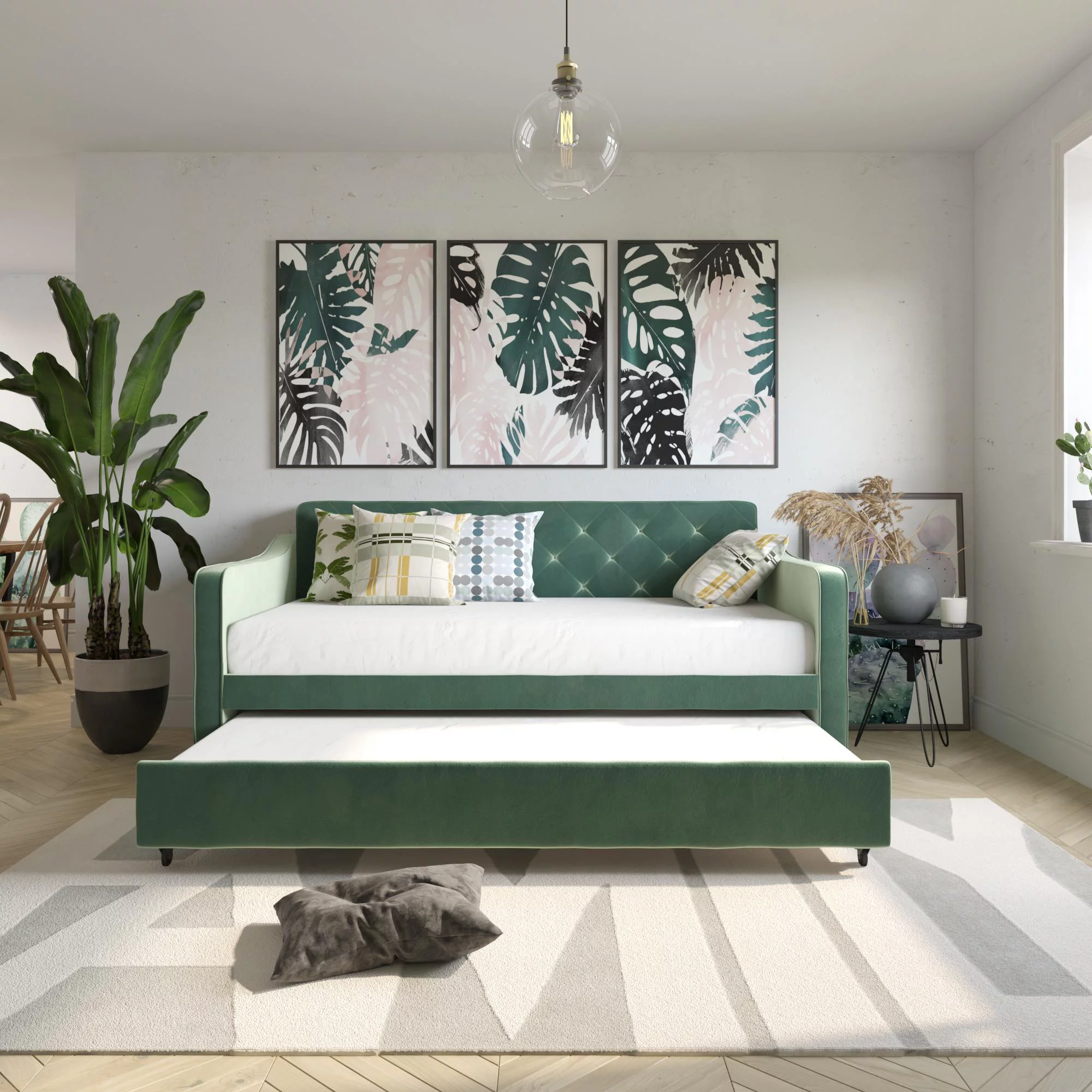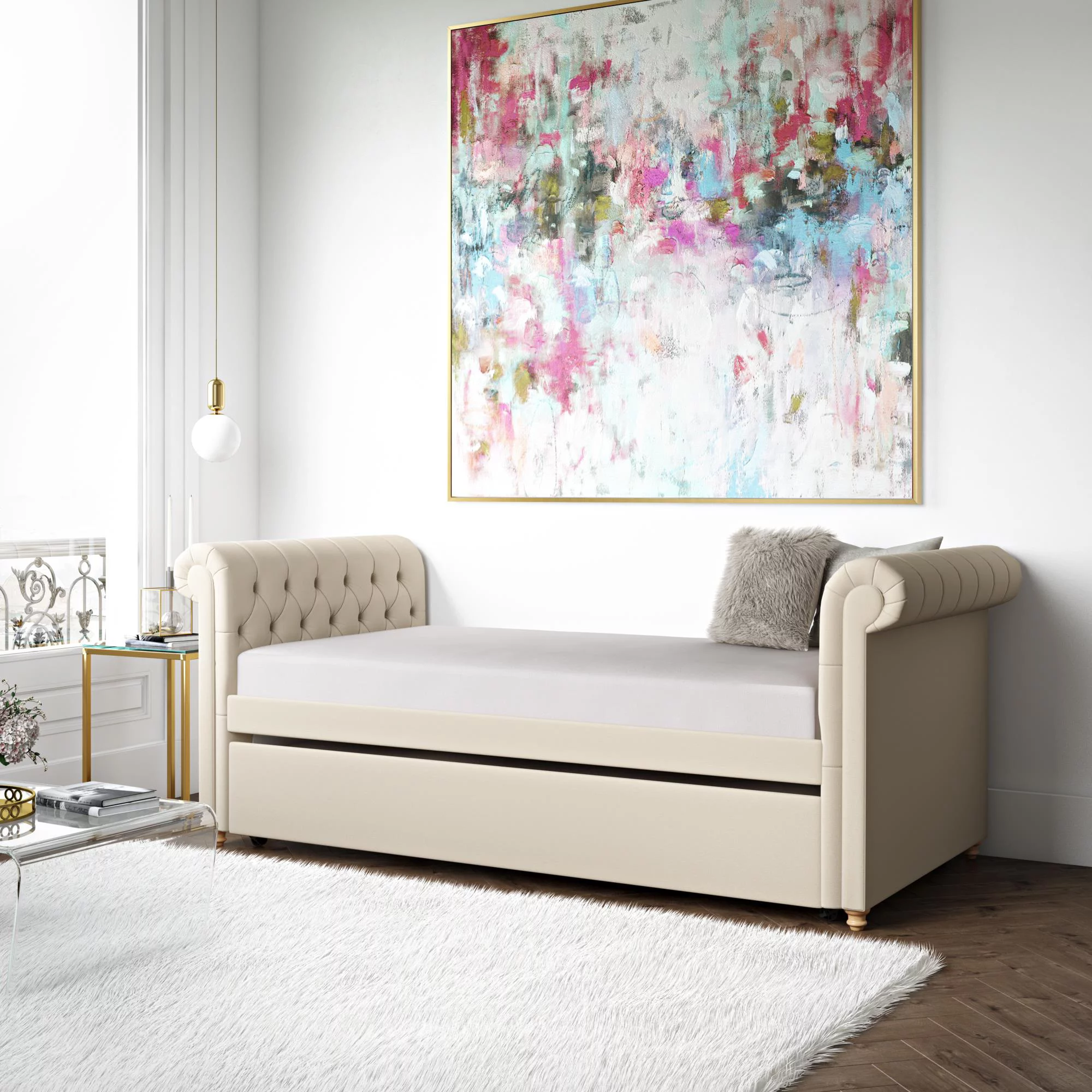 Weston Home Kenswick Tufted Upholstered Twin Daybed with Trundle, Beige