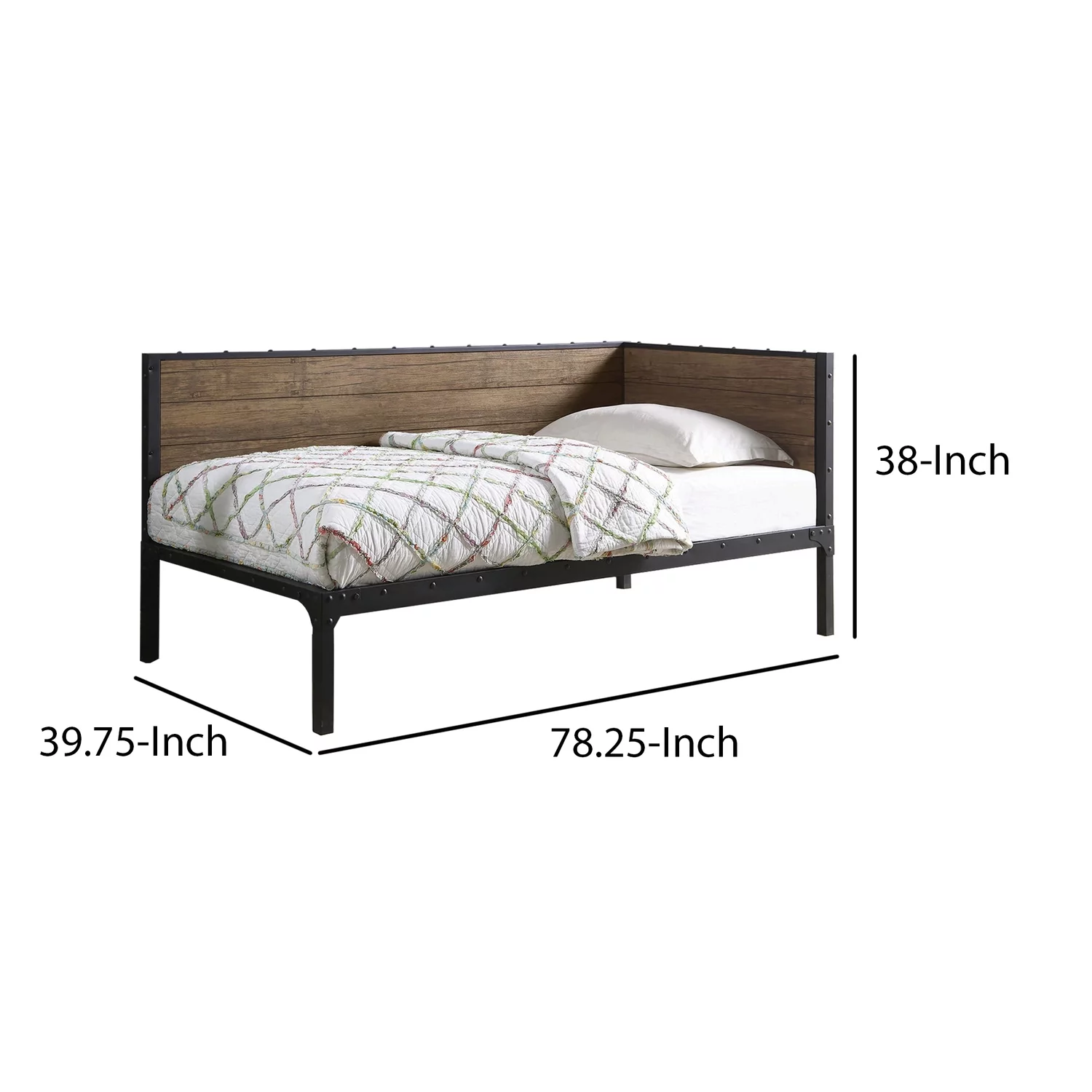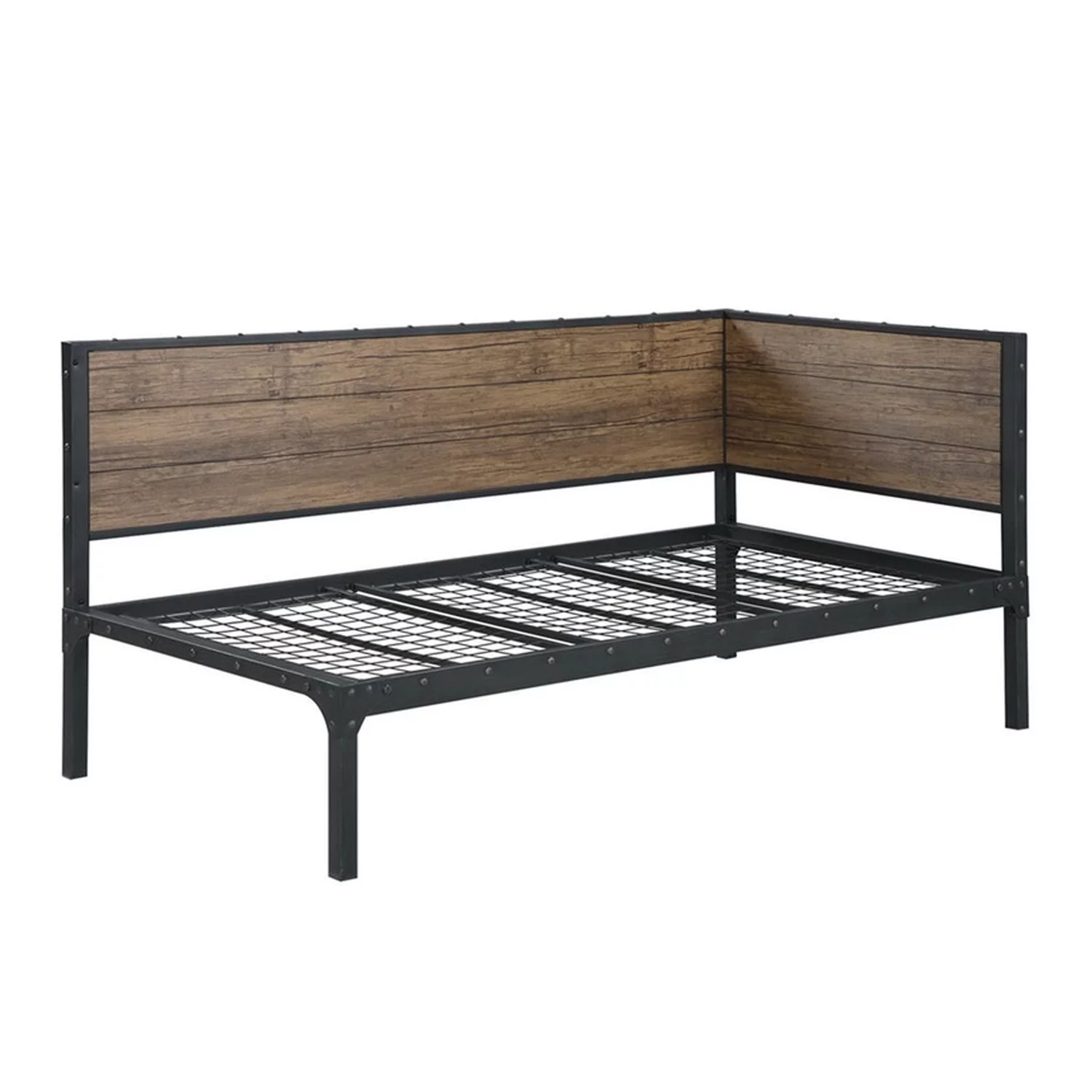Benjara Industrial Metal Twin Size Daybed with Wooden Side Panels, Brown and Black