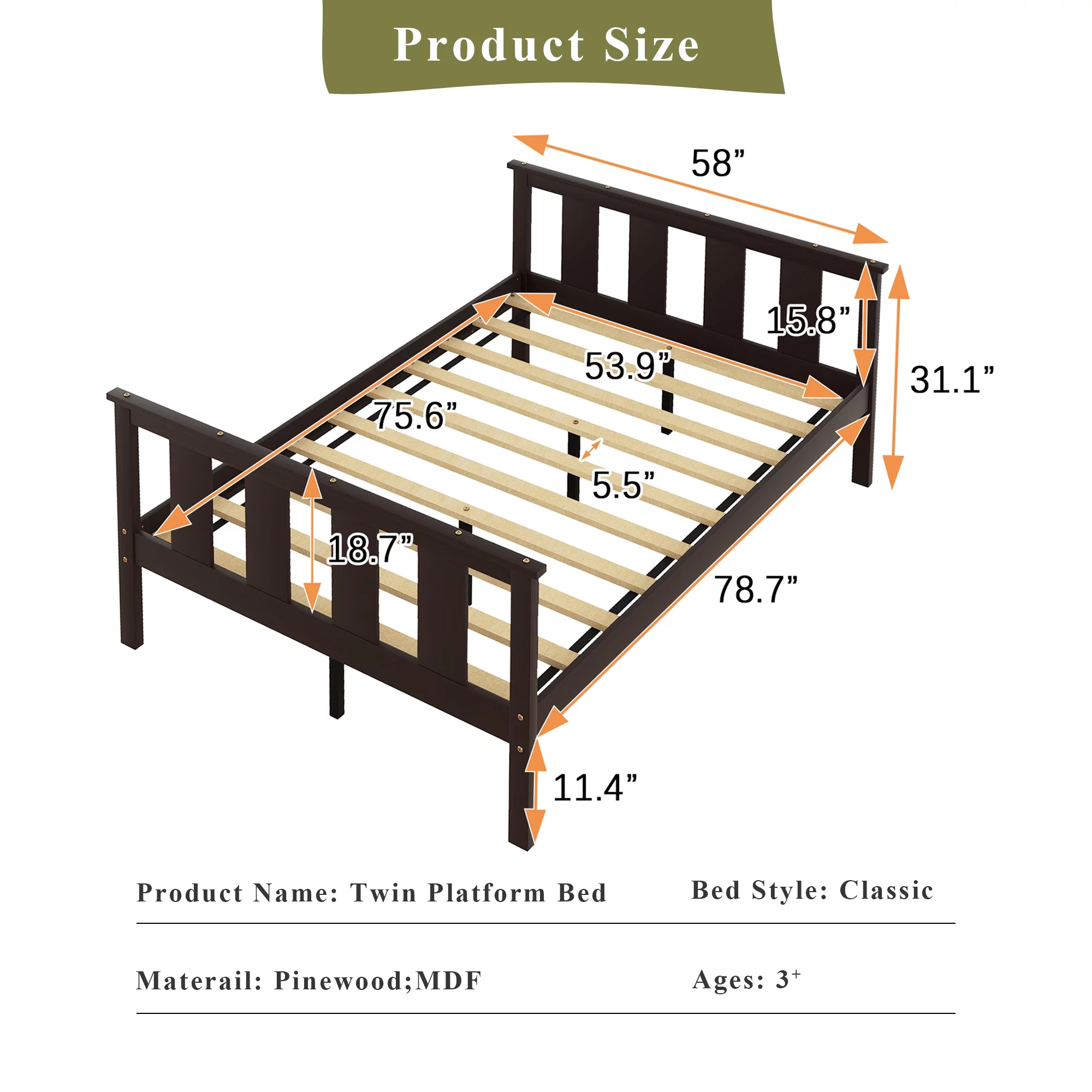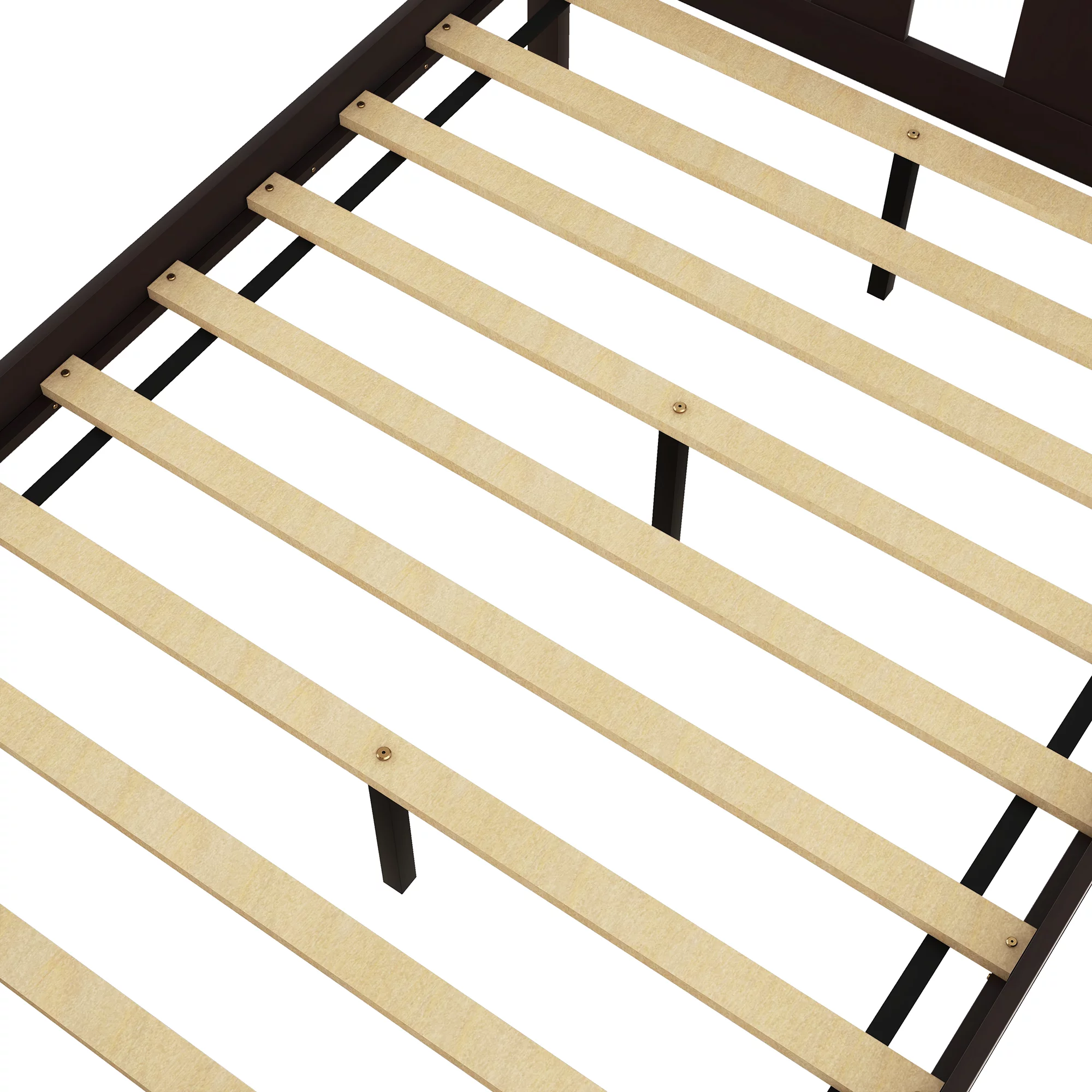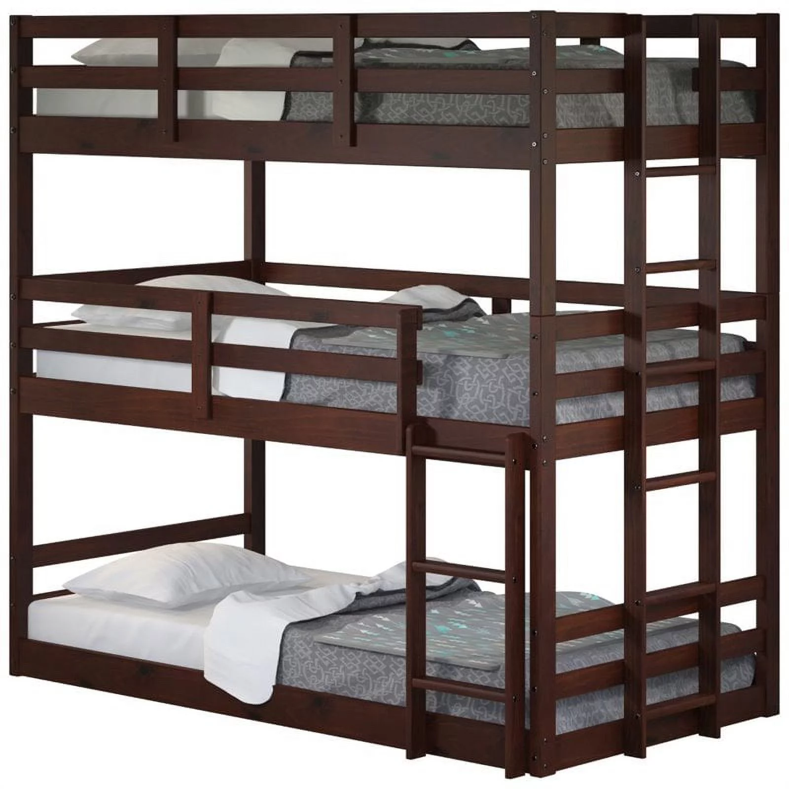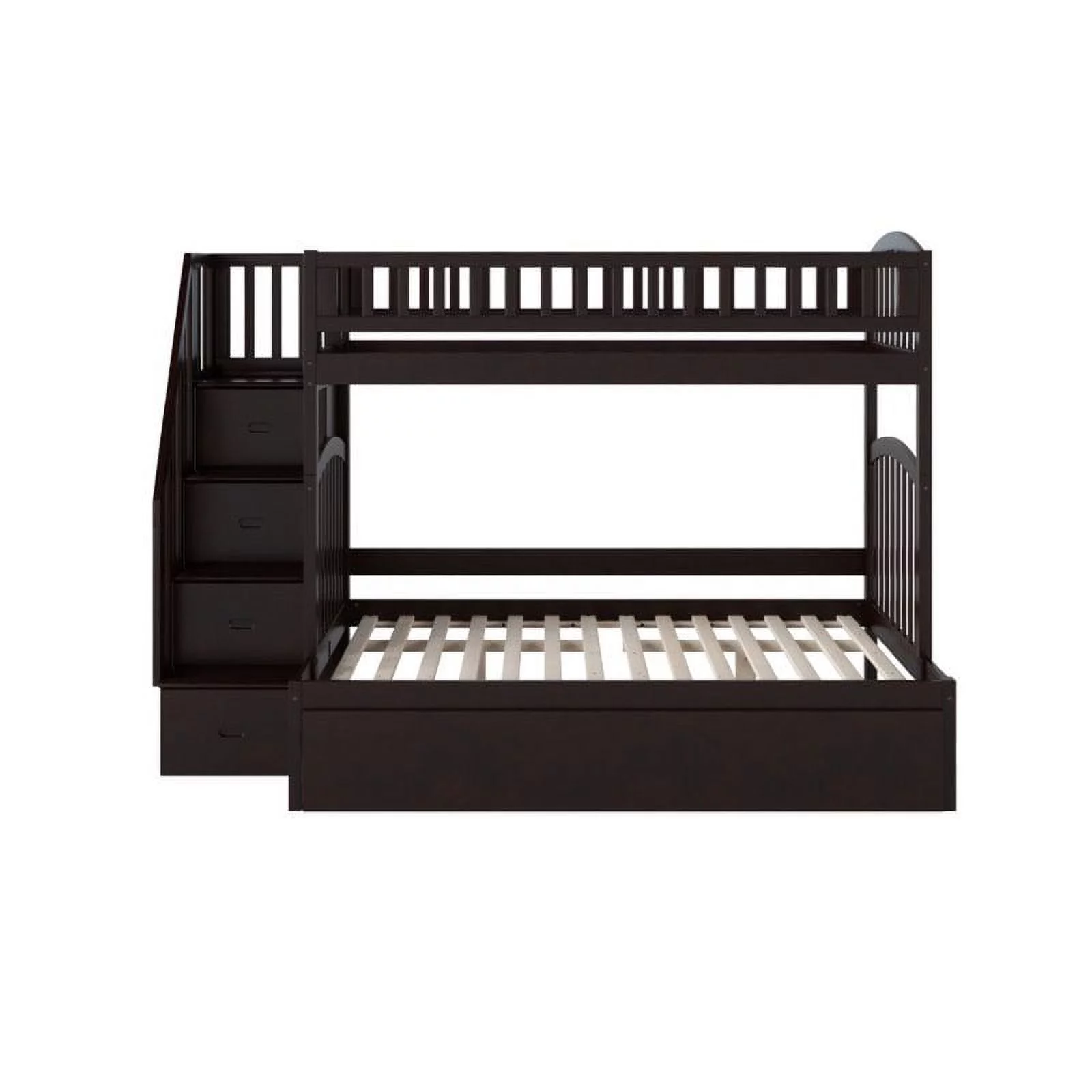 Pemberly Row Modern Twin Over Twin Slat Bunk Bed with Trundle in Chocolate