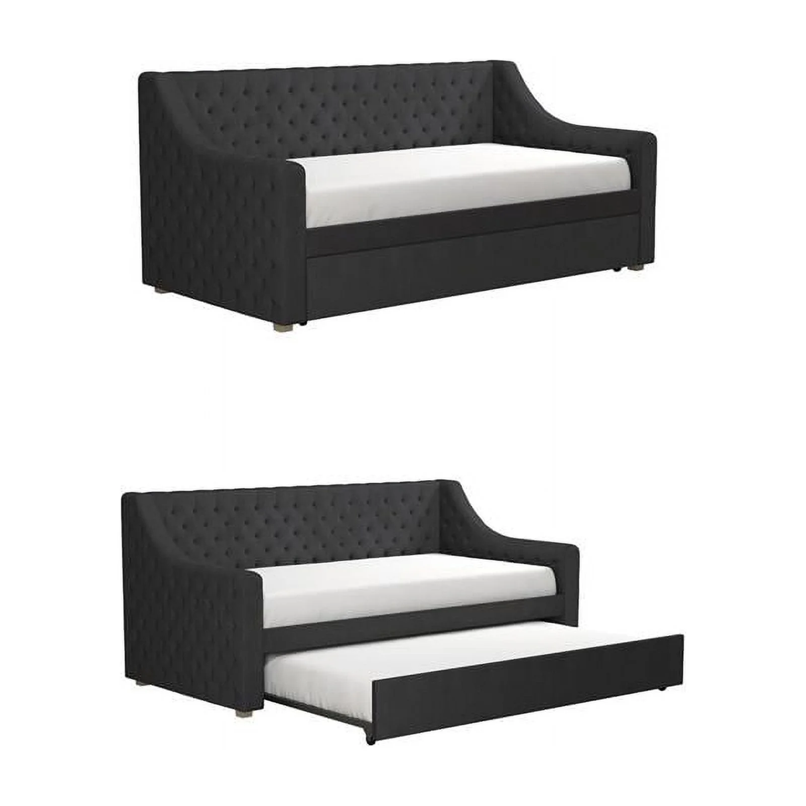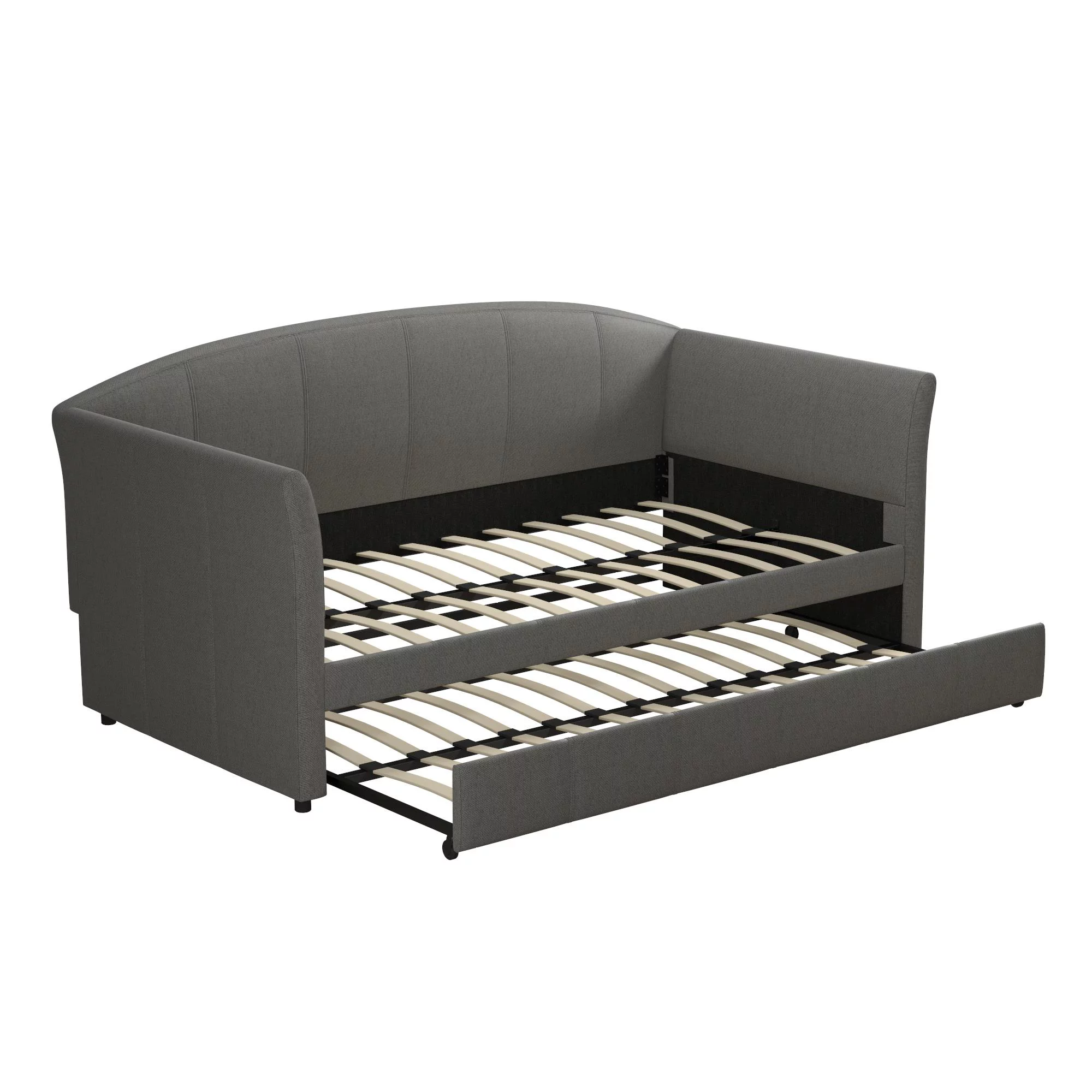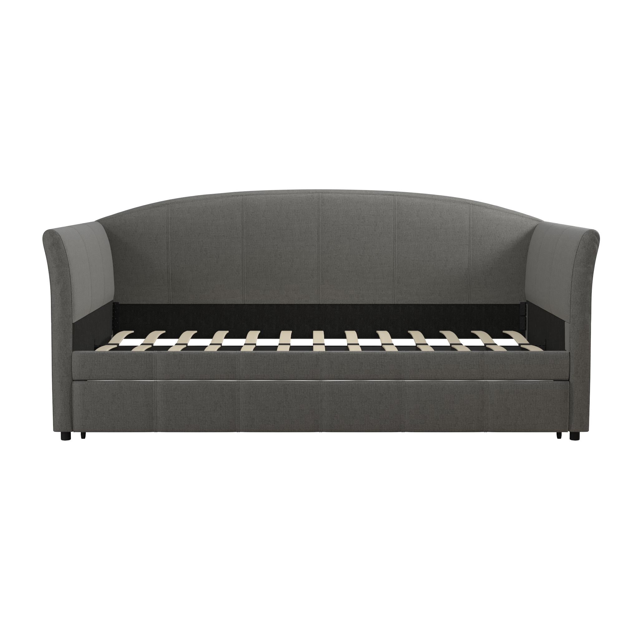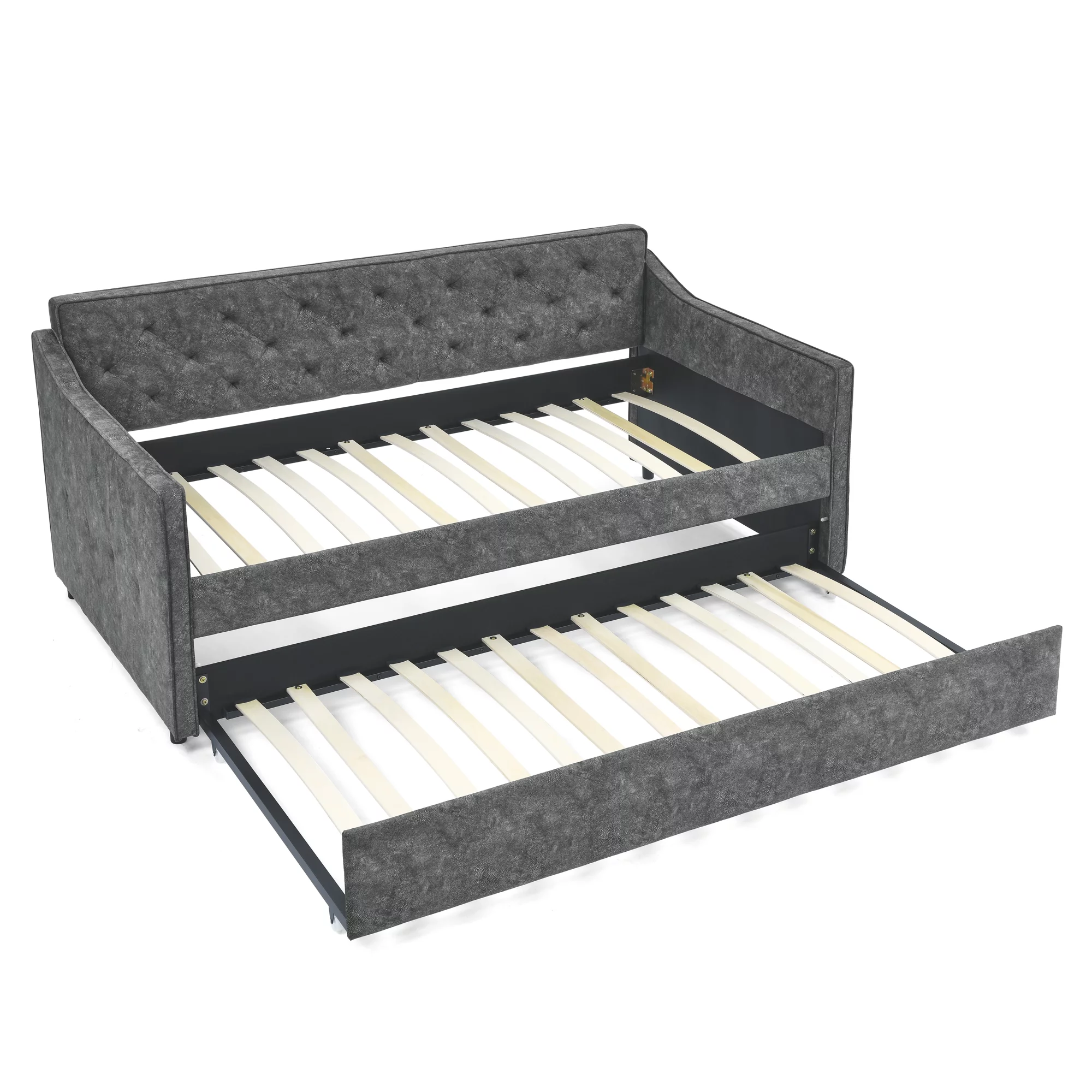 Aukfa Twin Daybed with Trundle, Upholstered Daybed with Tufted Back - Gray