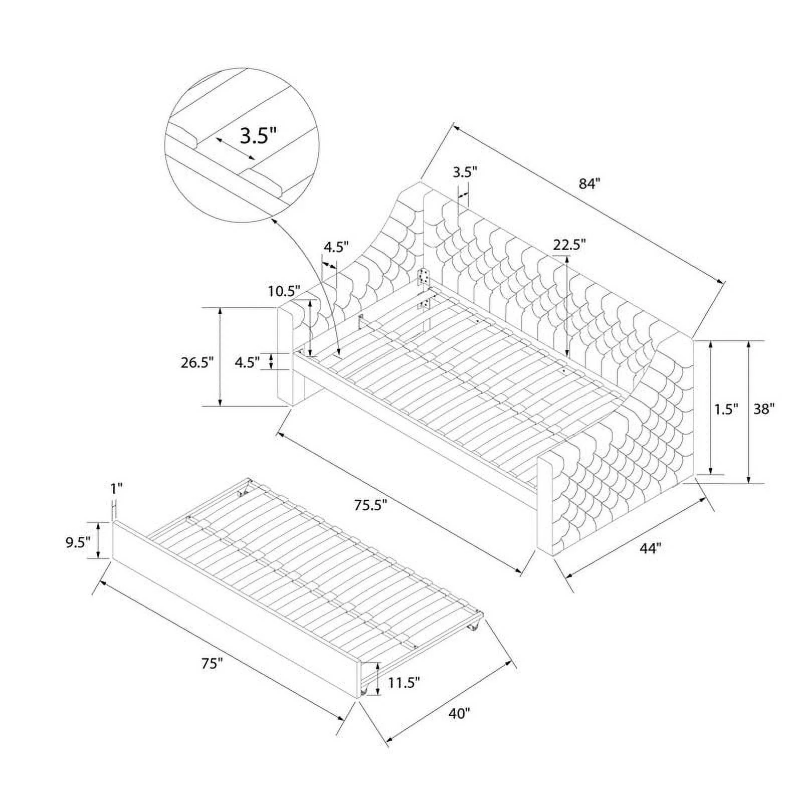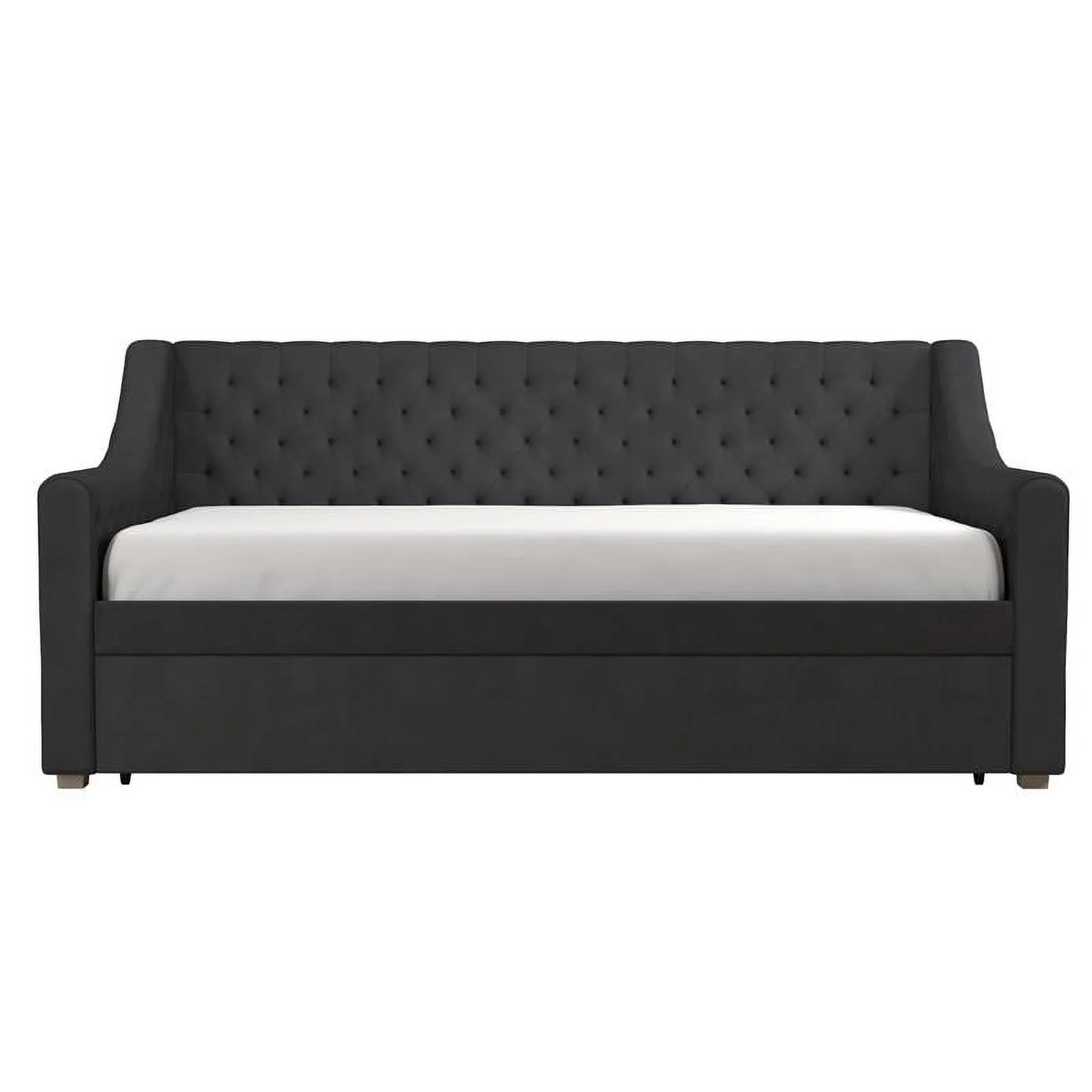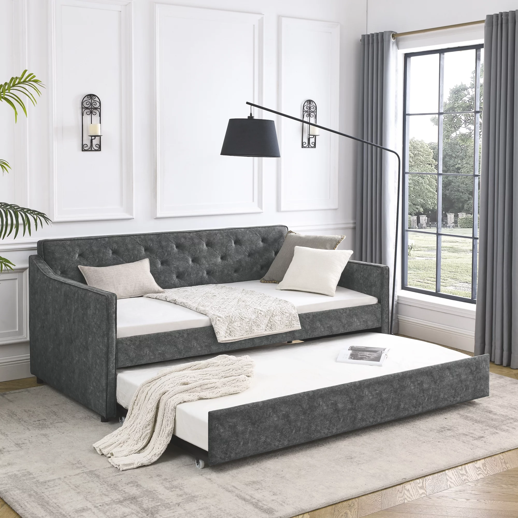 Aukfa Twin Daybed with Trundle, Upholstered Daybed with Tufted Back - Gray