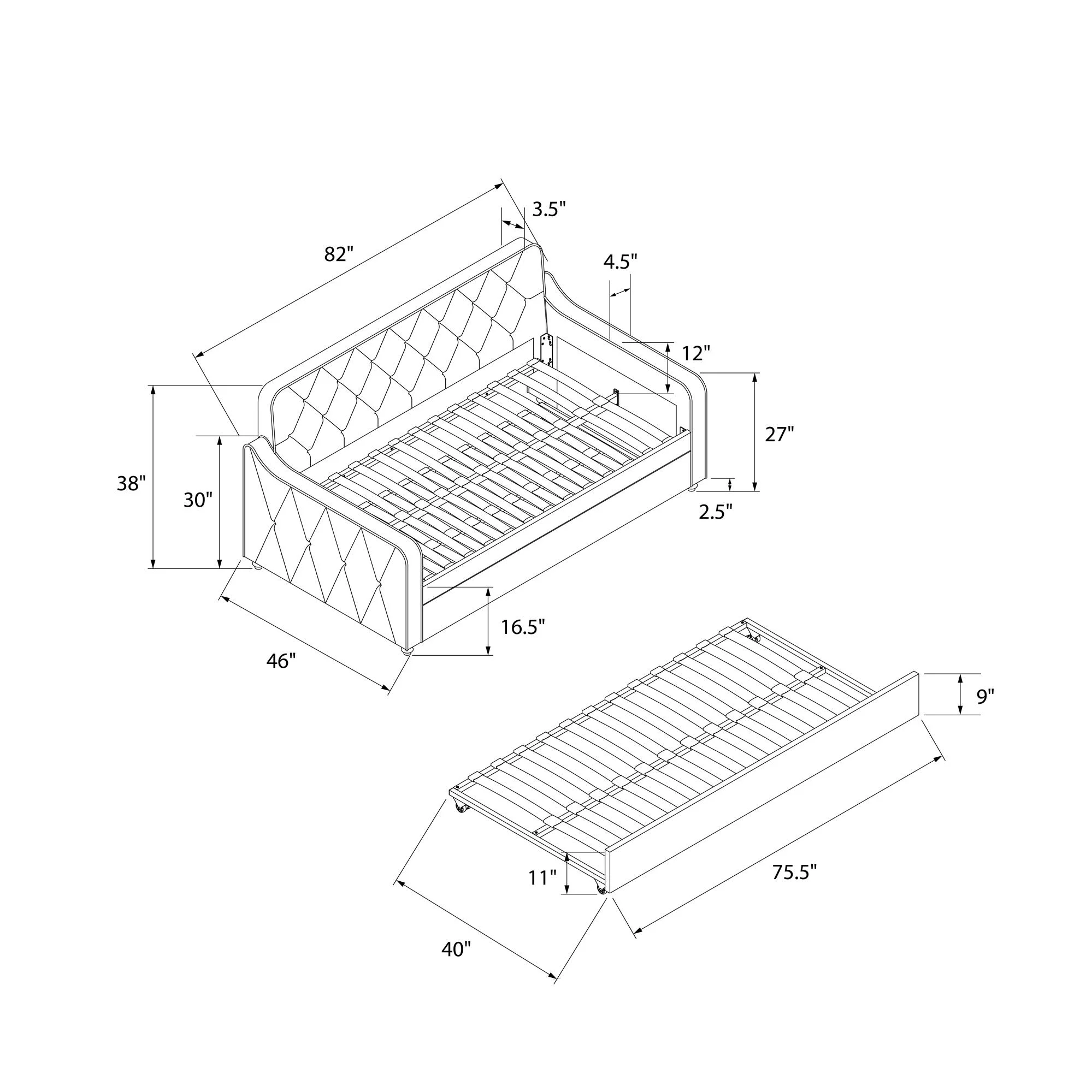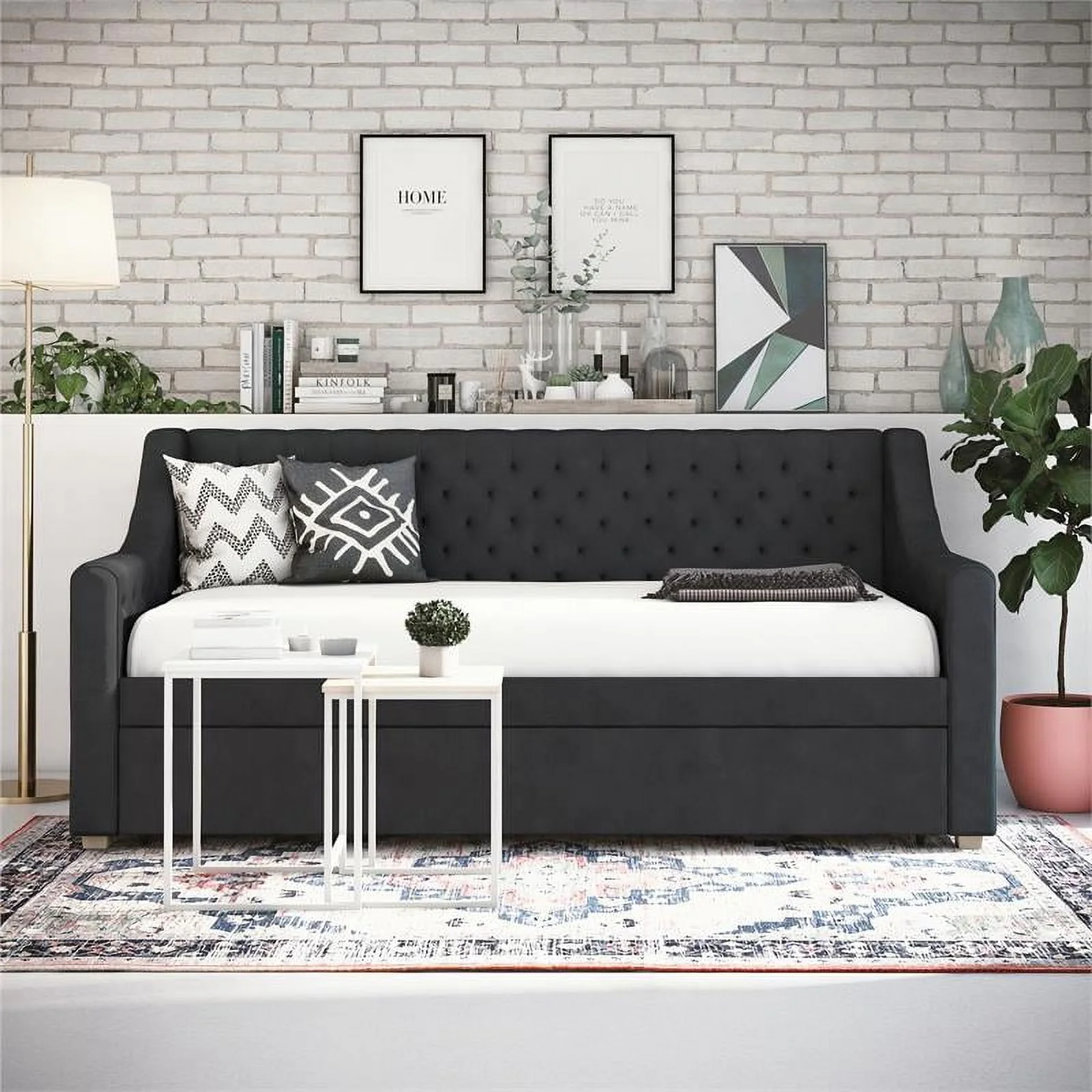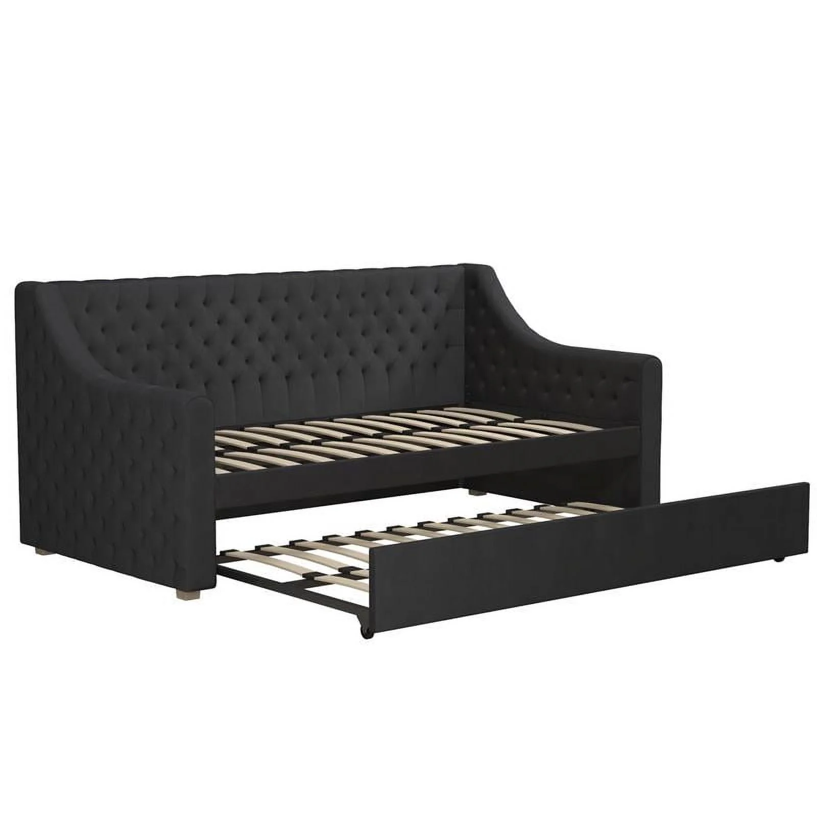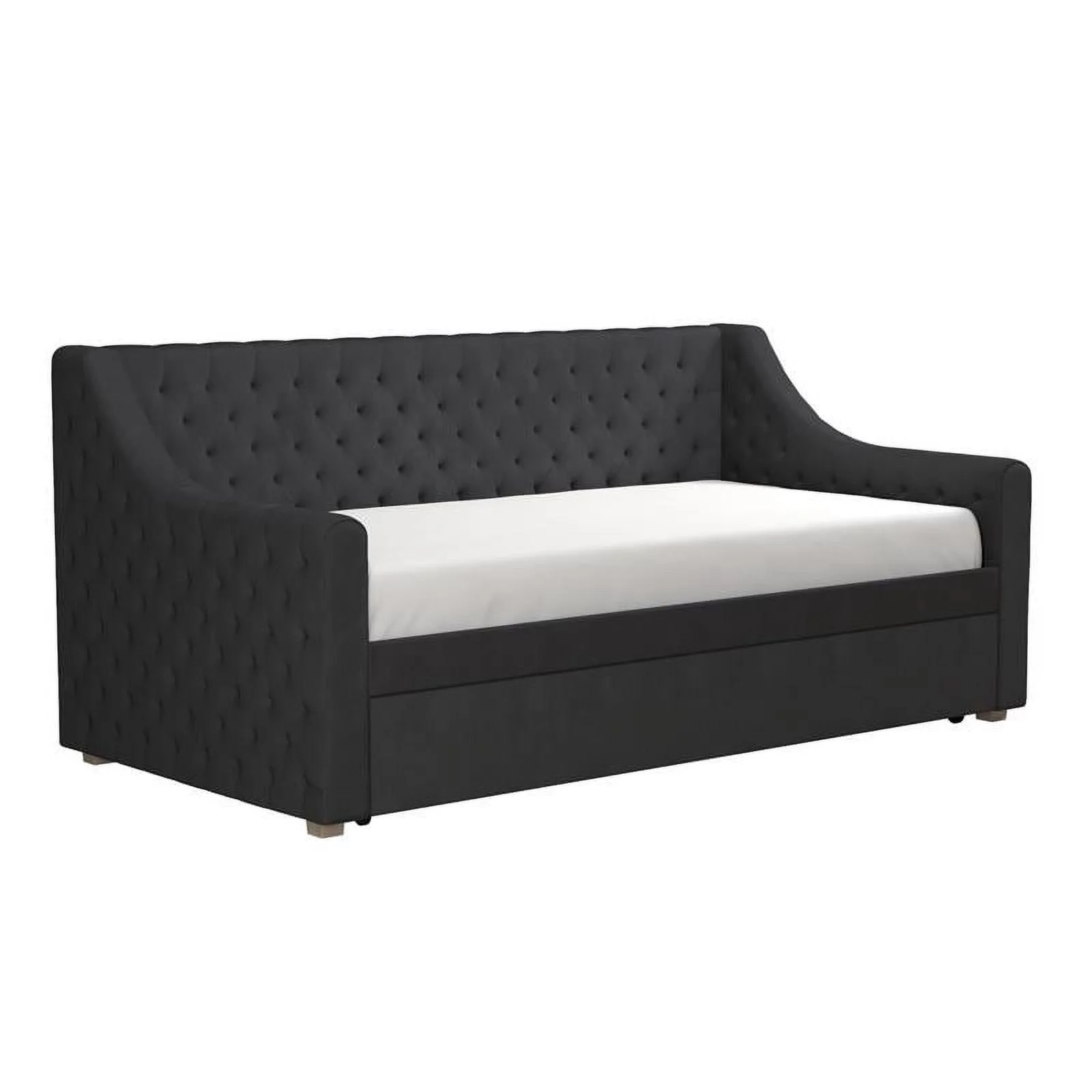 Aukfa Twin Daybed with Trundle, Upholstered Daybed with Tufted Back - Gray