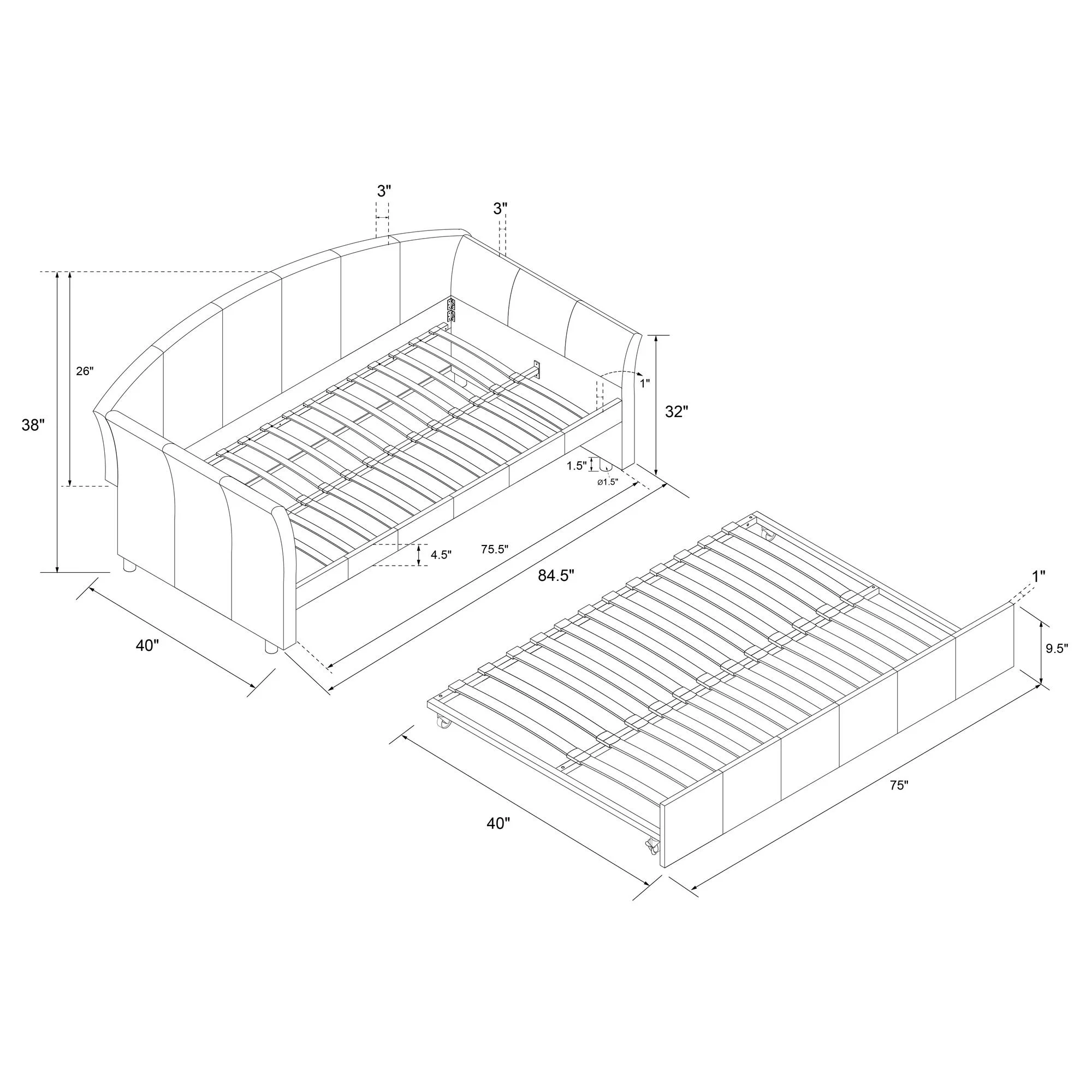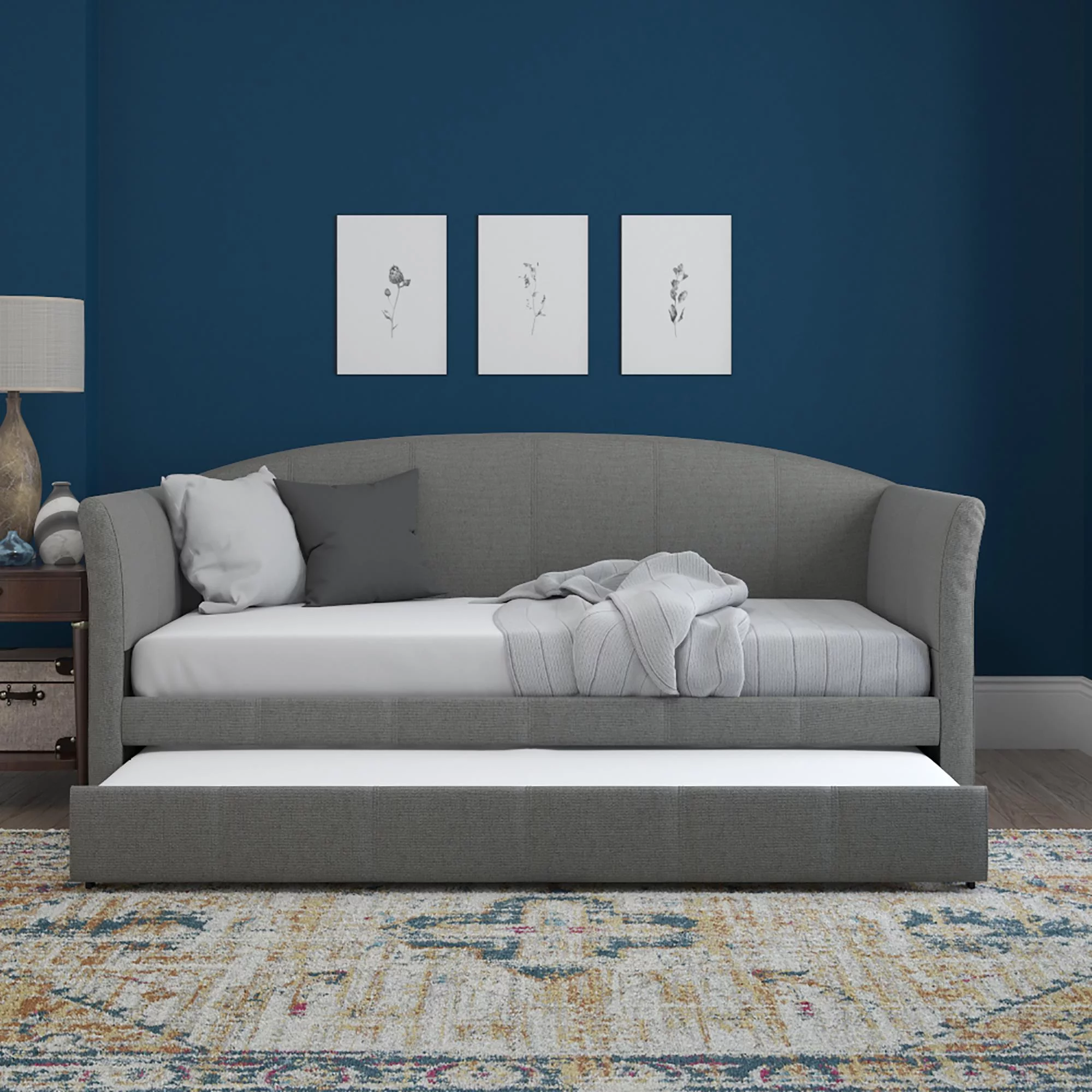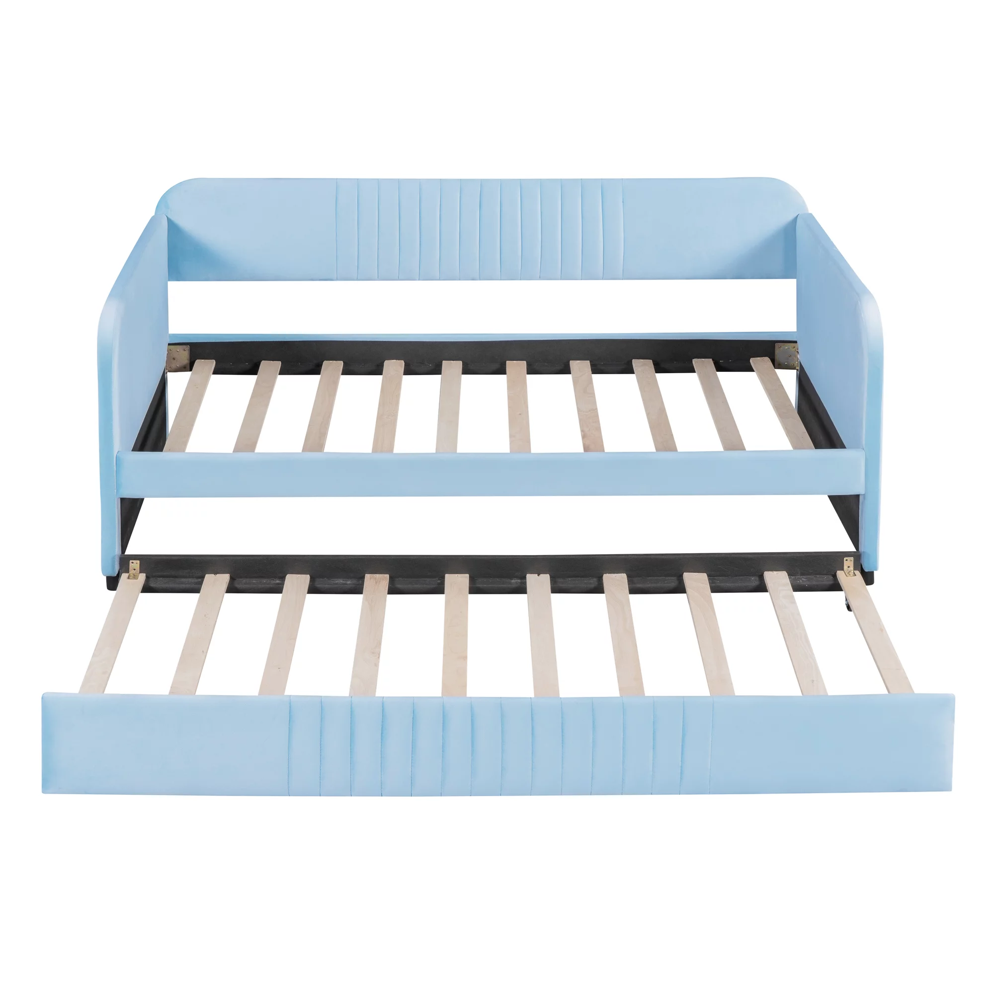 Nestfair Light Blue Twin Size Upholstered Daybed Sofa Bed With Trundle Bed
