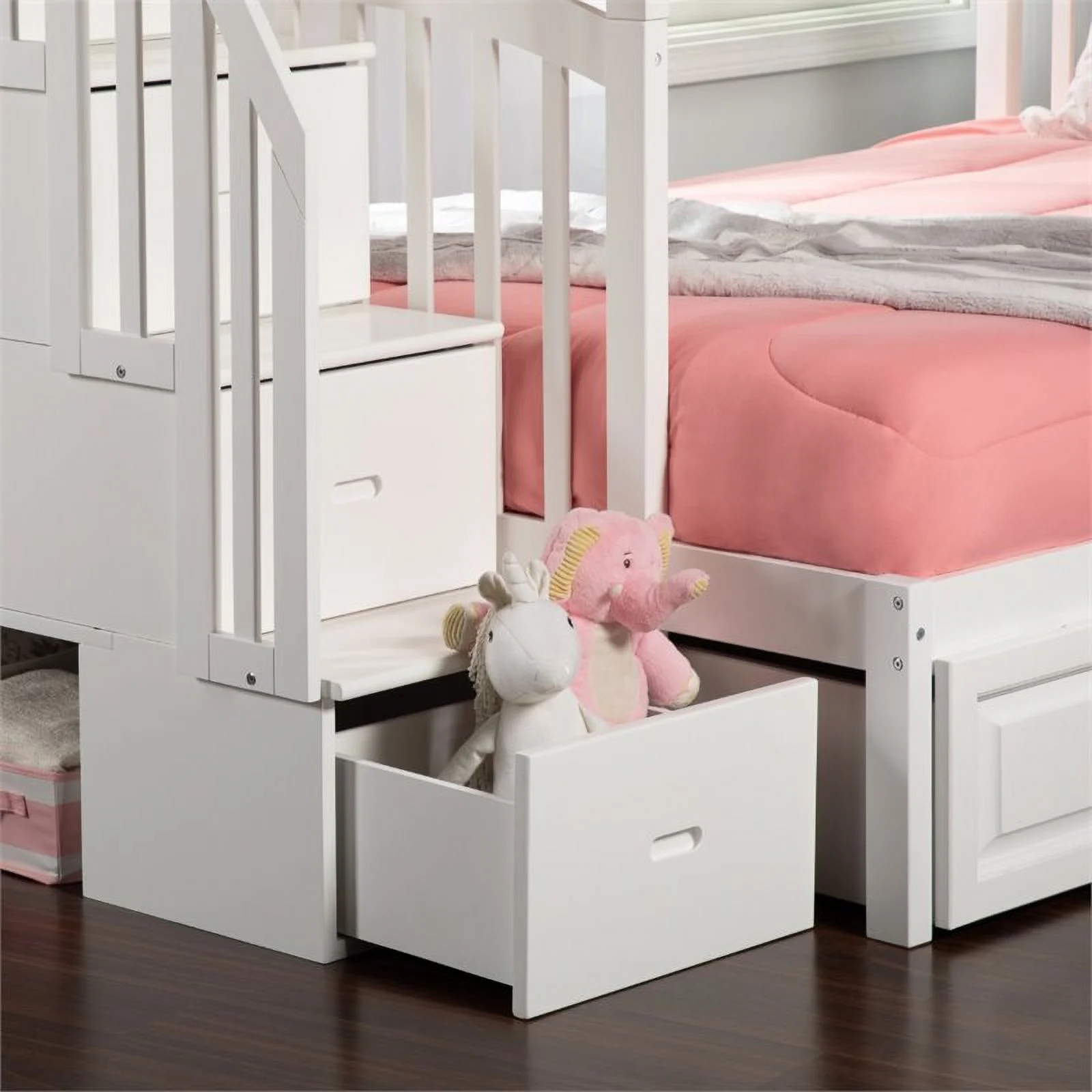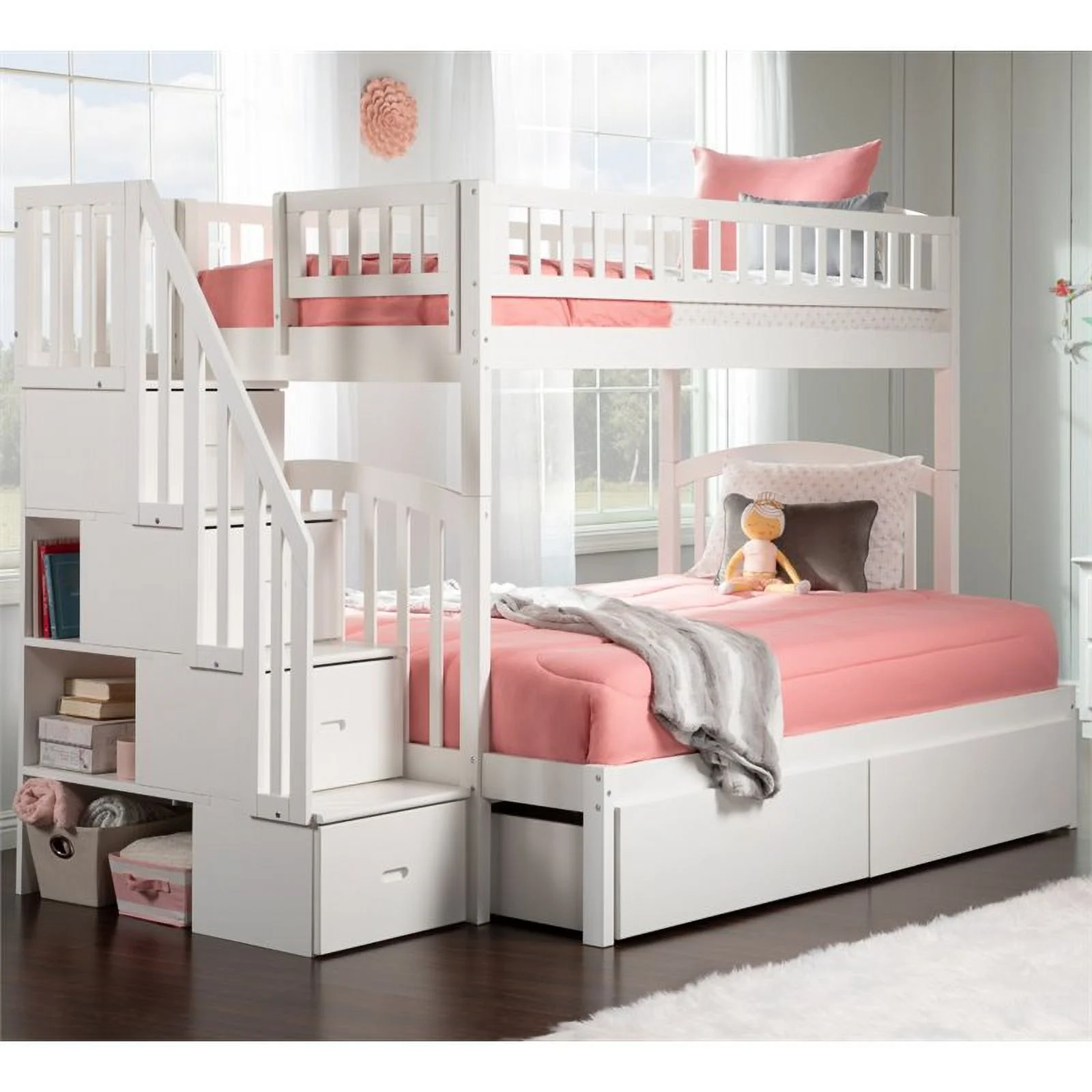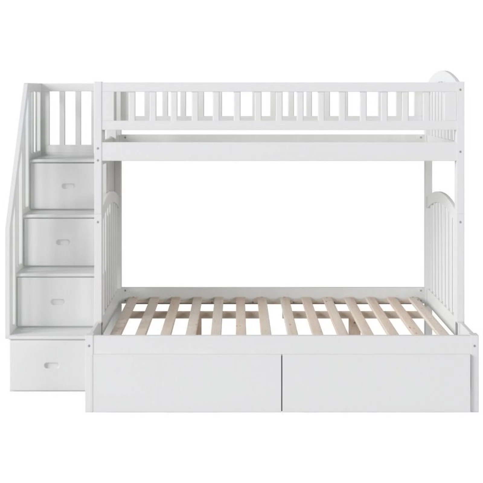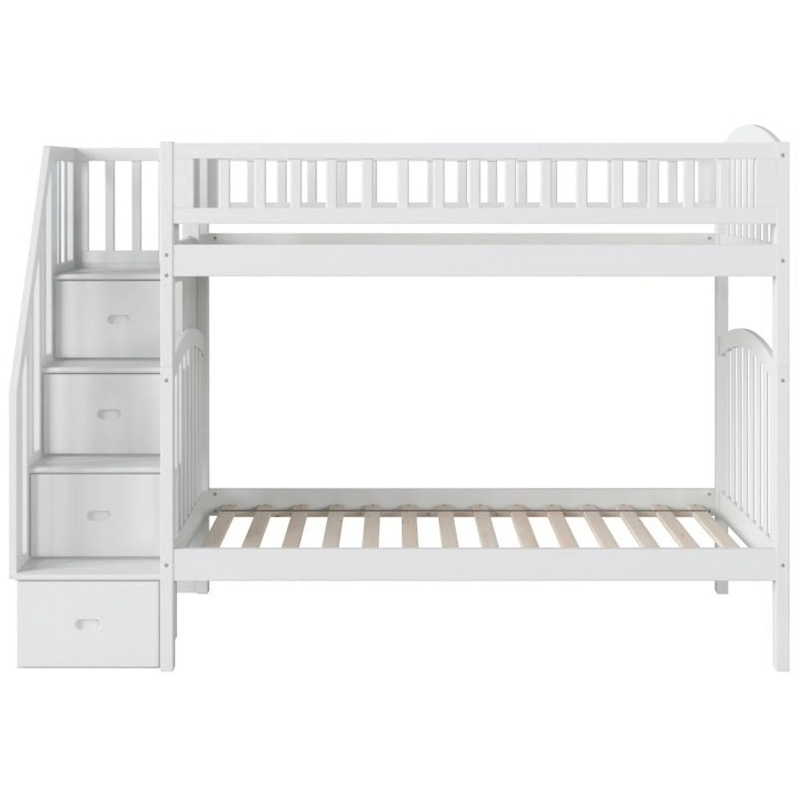 Pemberly Row Traditional Wood Staircase Storage Bunk Twin Over Full in White