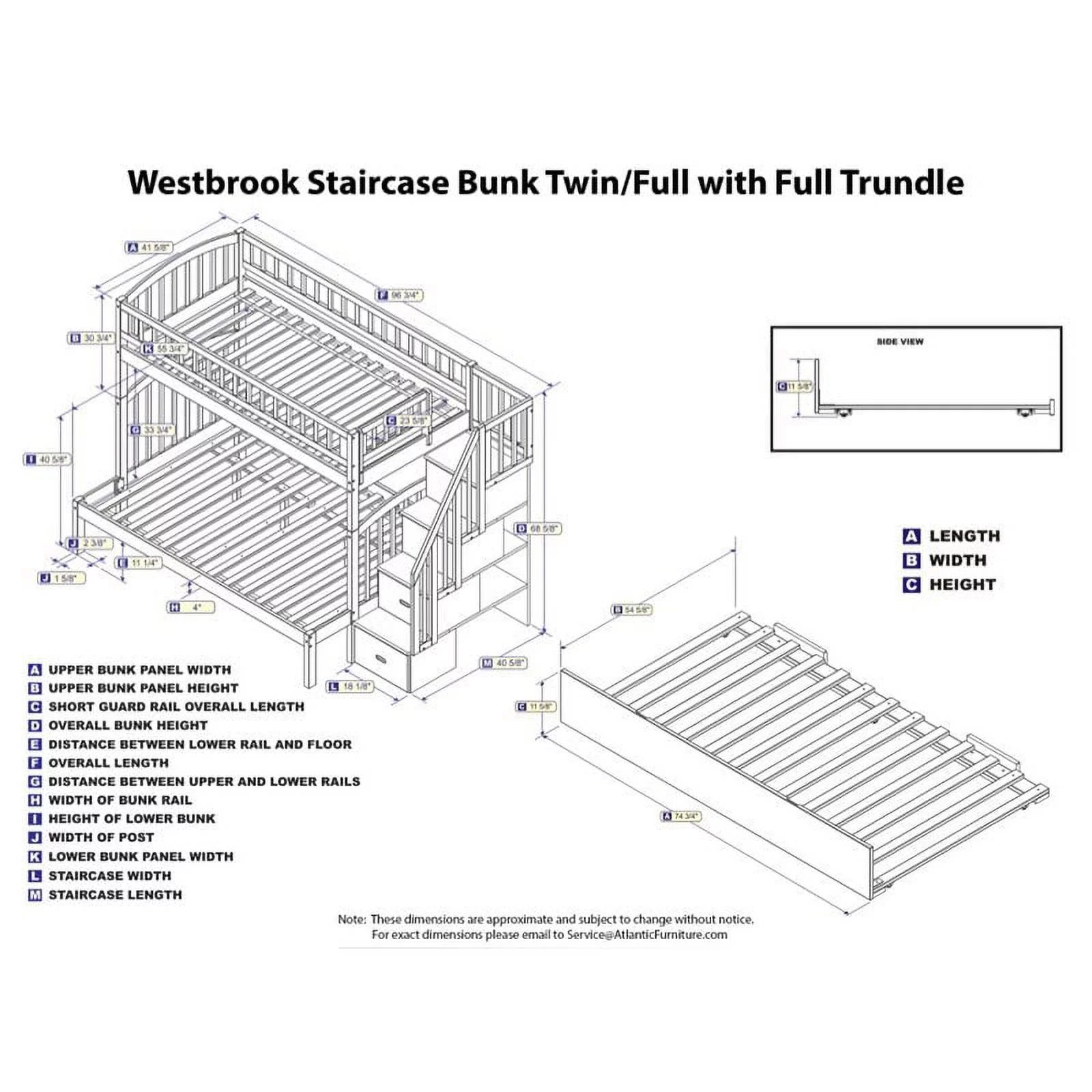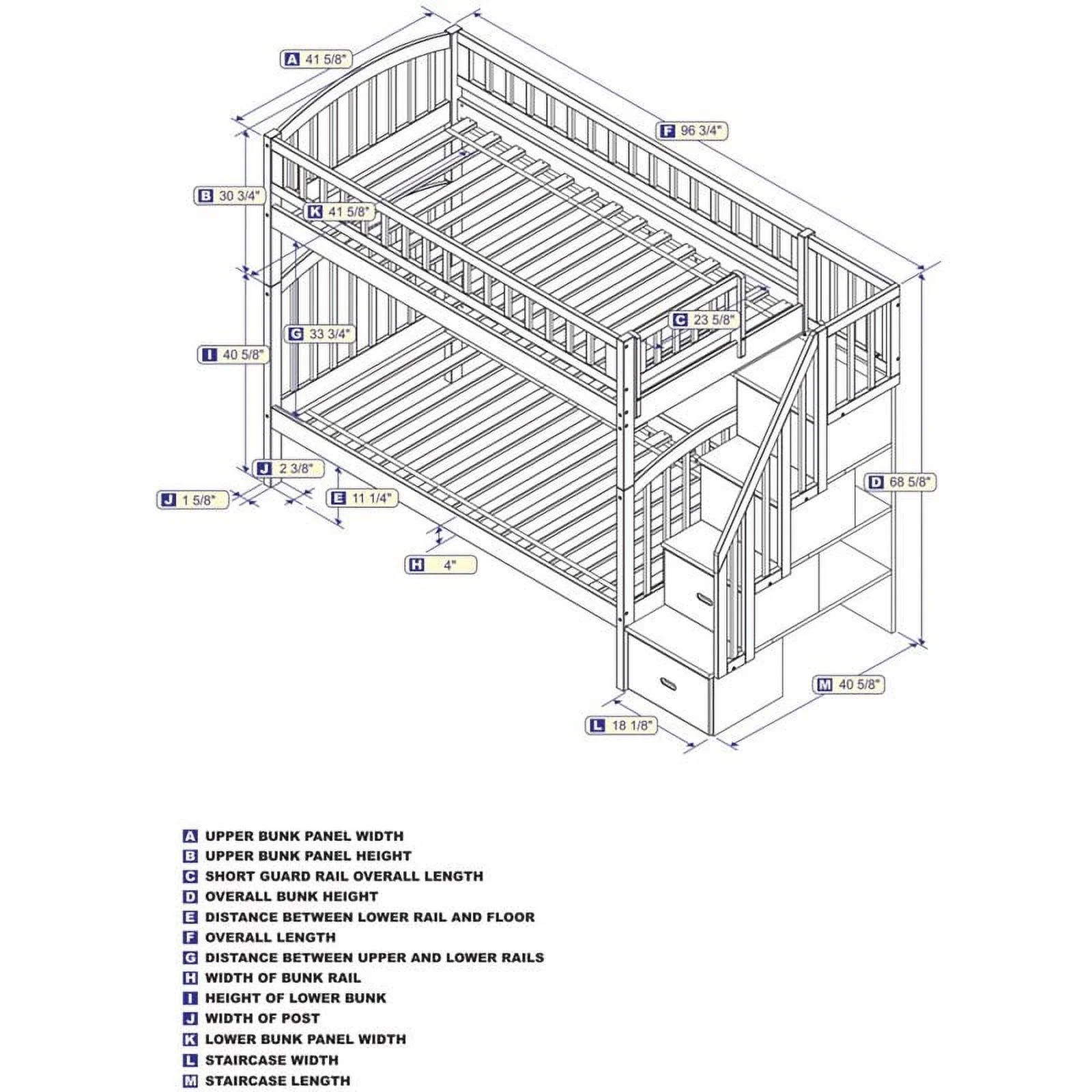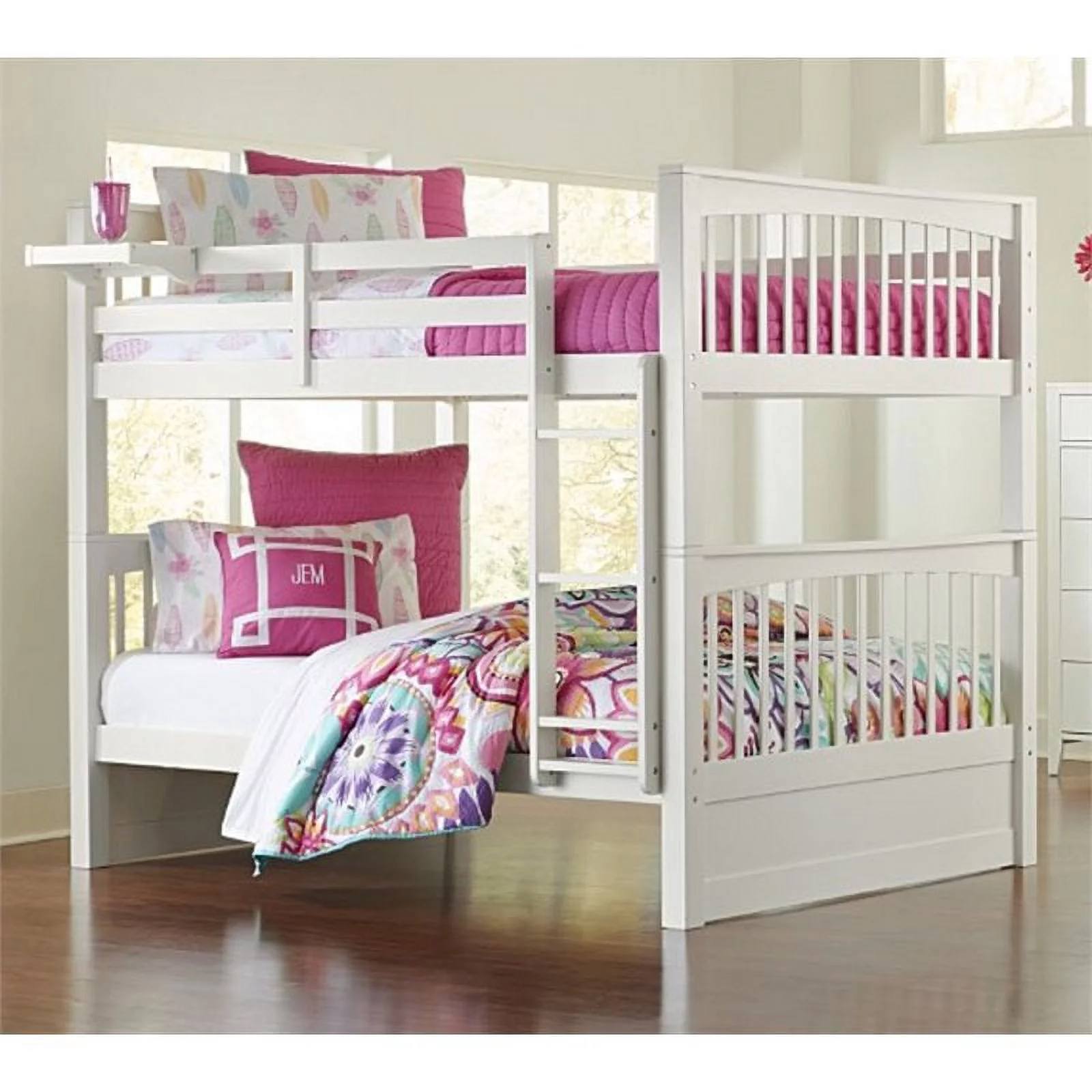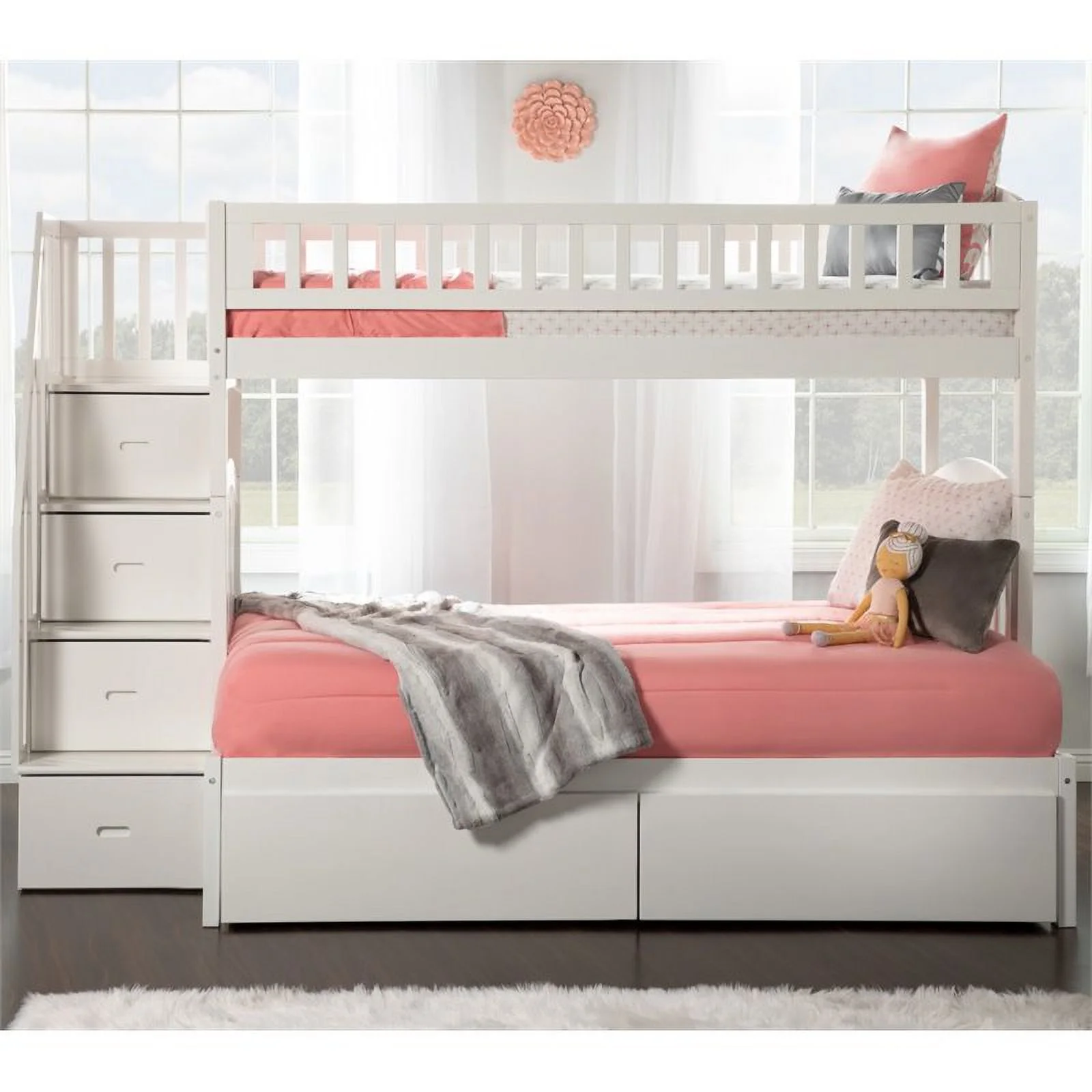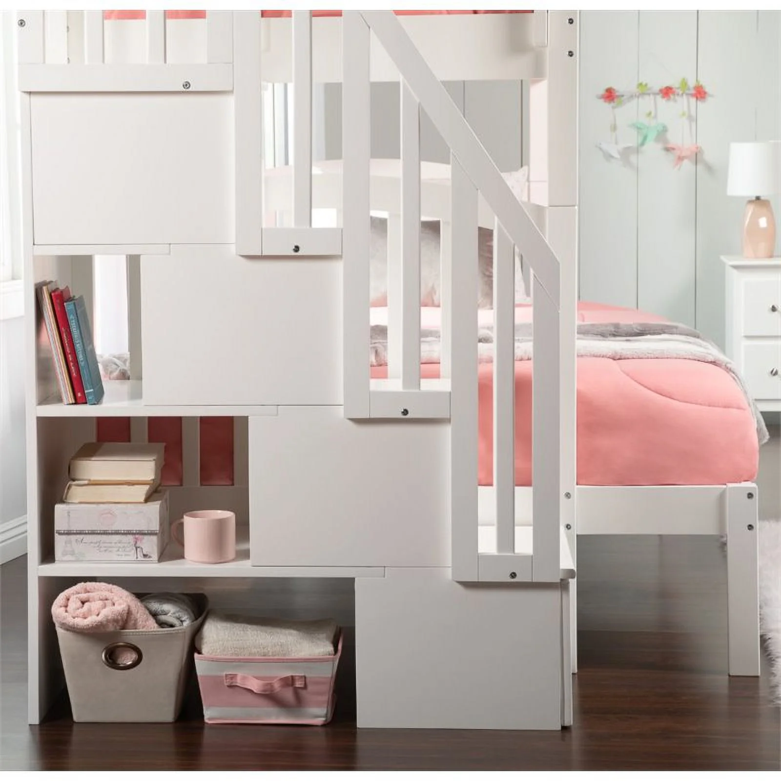 Pemberly Row Traditional Wood Staircase Storage Bunk Twin Over Full in White