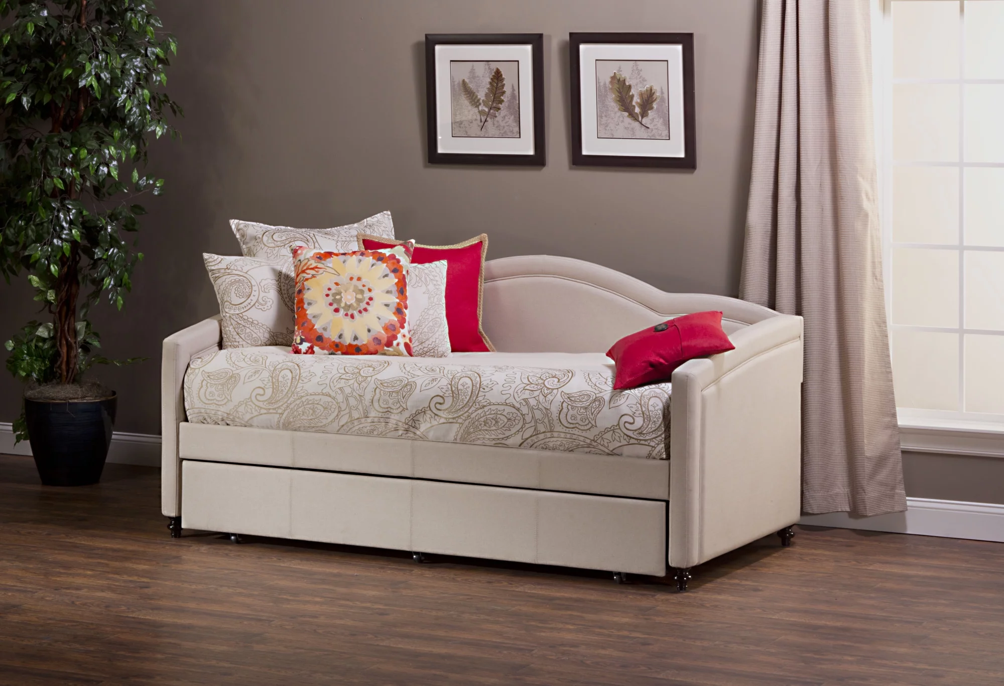 Hillsdale Furniture Jasmine All-purpose Upholstered Twin Daybed with Trundle, Linen Stone