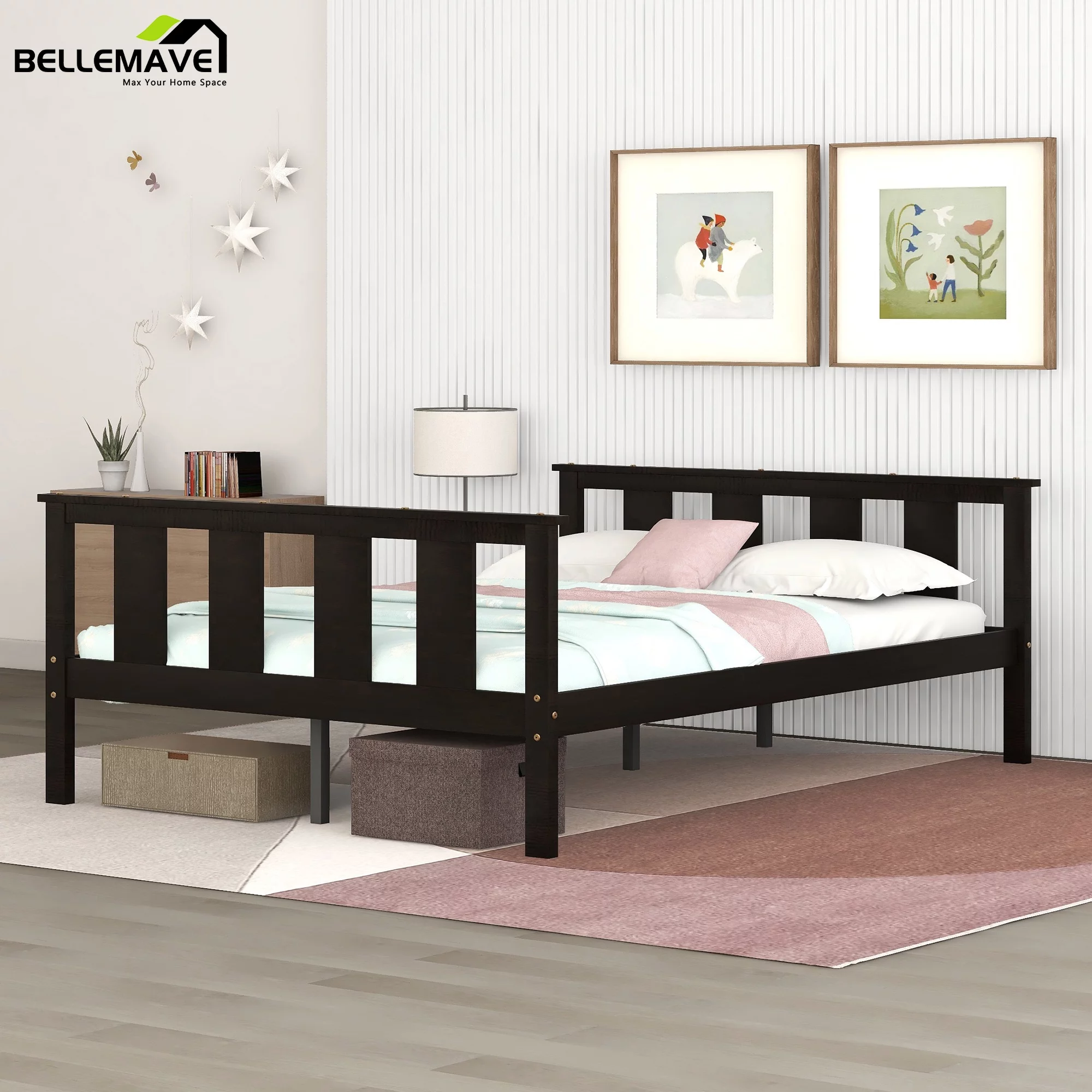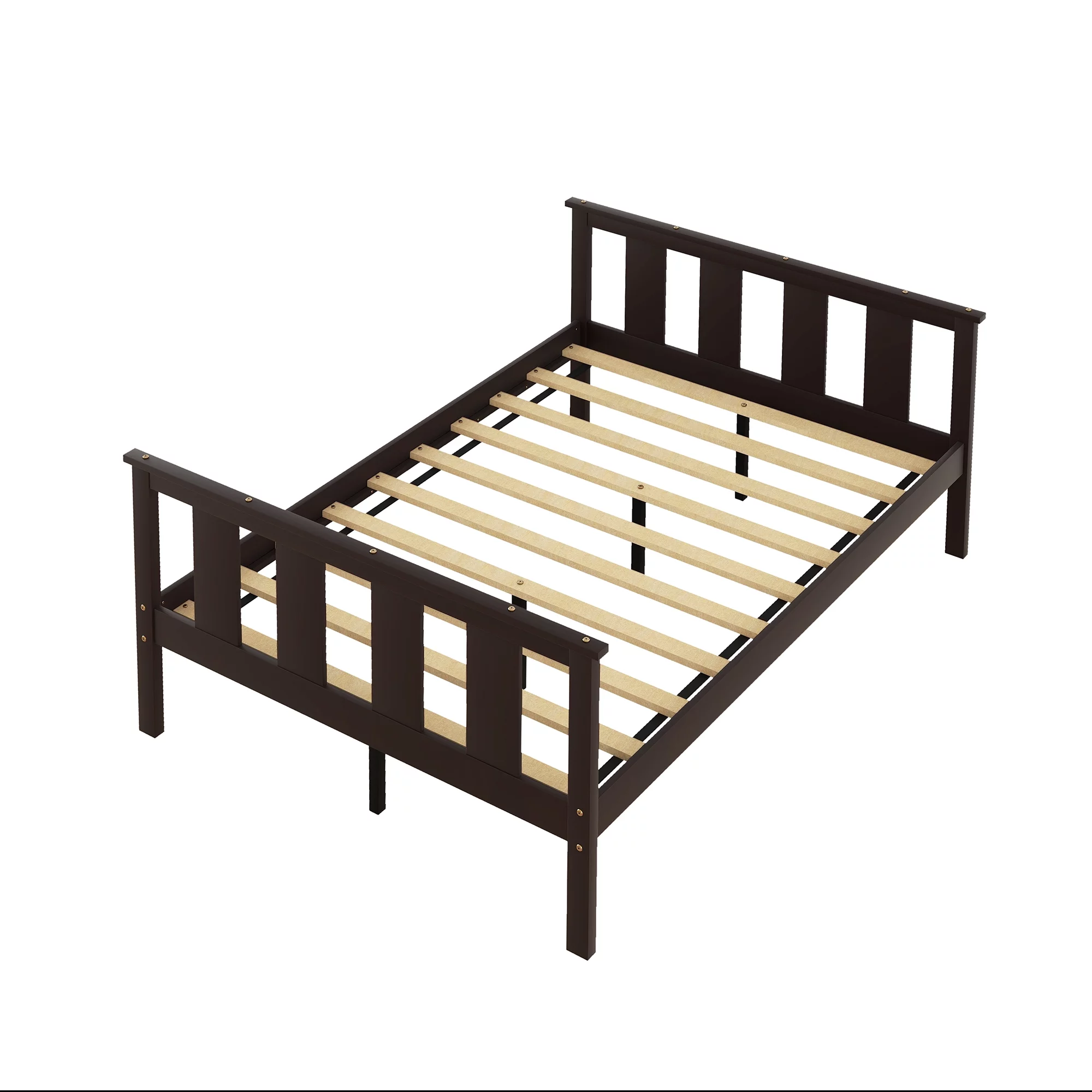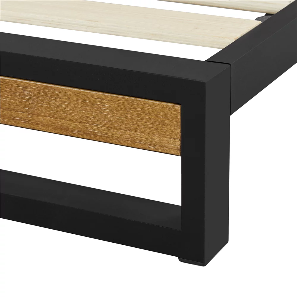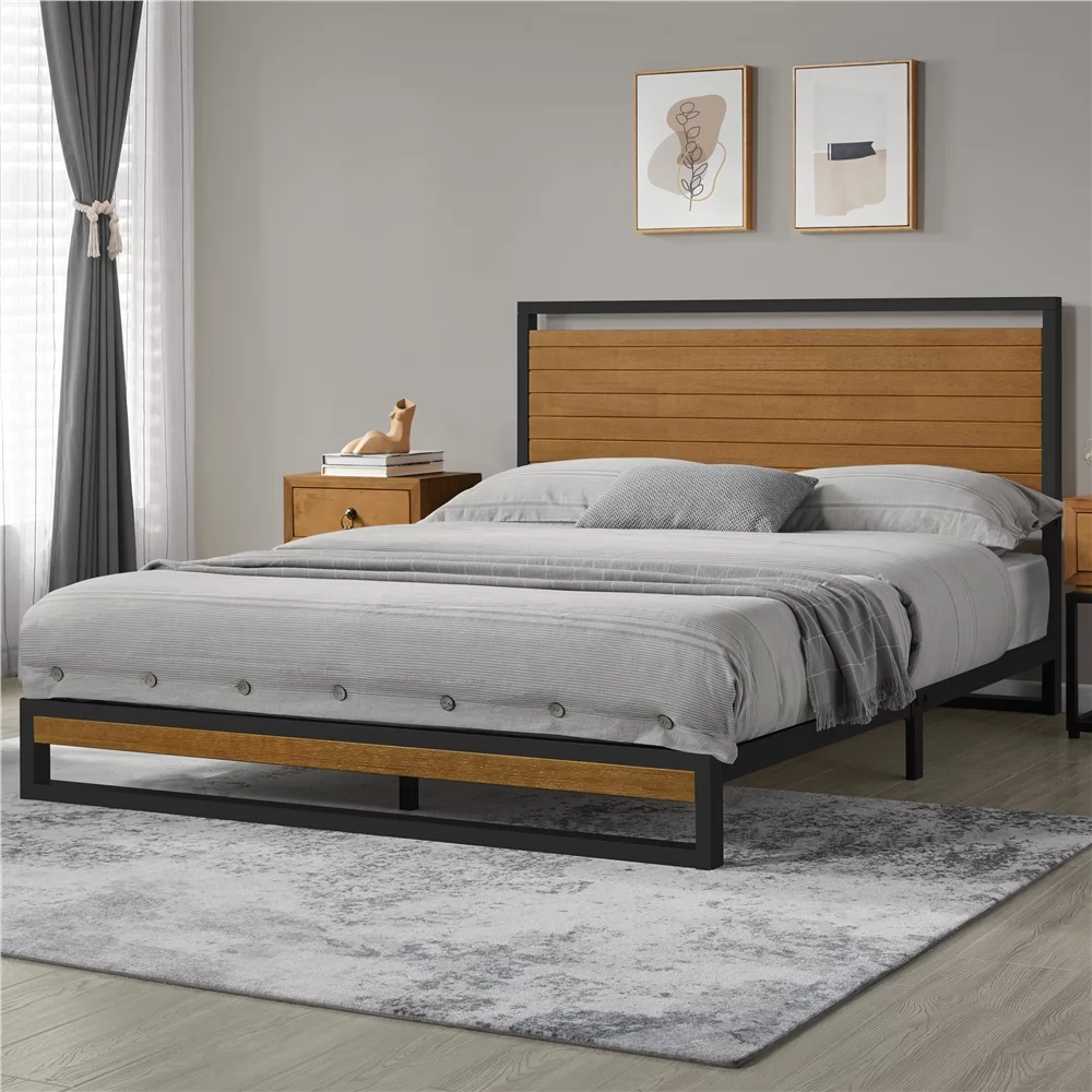 Topeakmart Modern Metal-Framed Bed Platform Bed Frame with Wood Headboard, Full Size, Chestnut Brown
