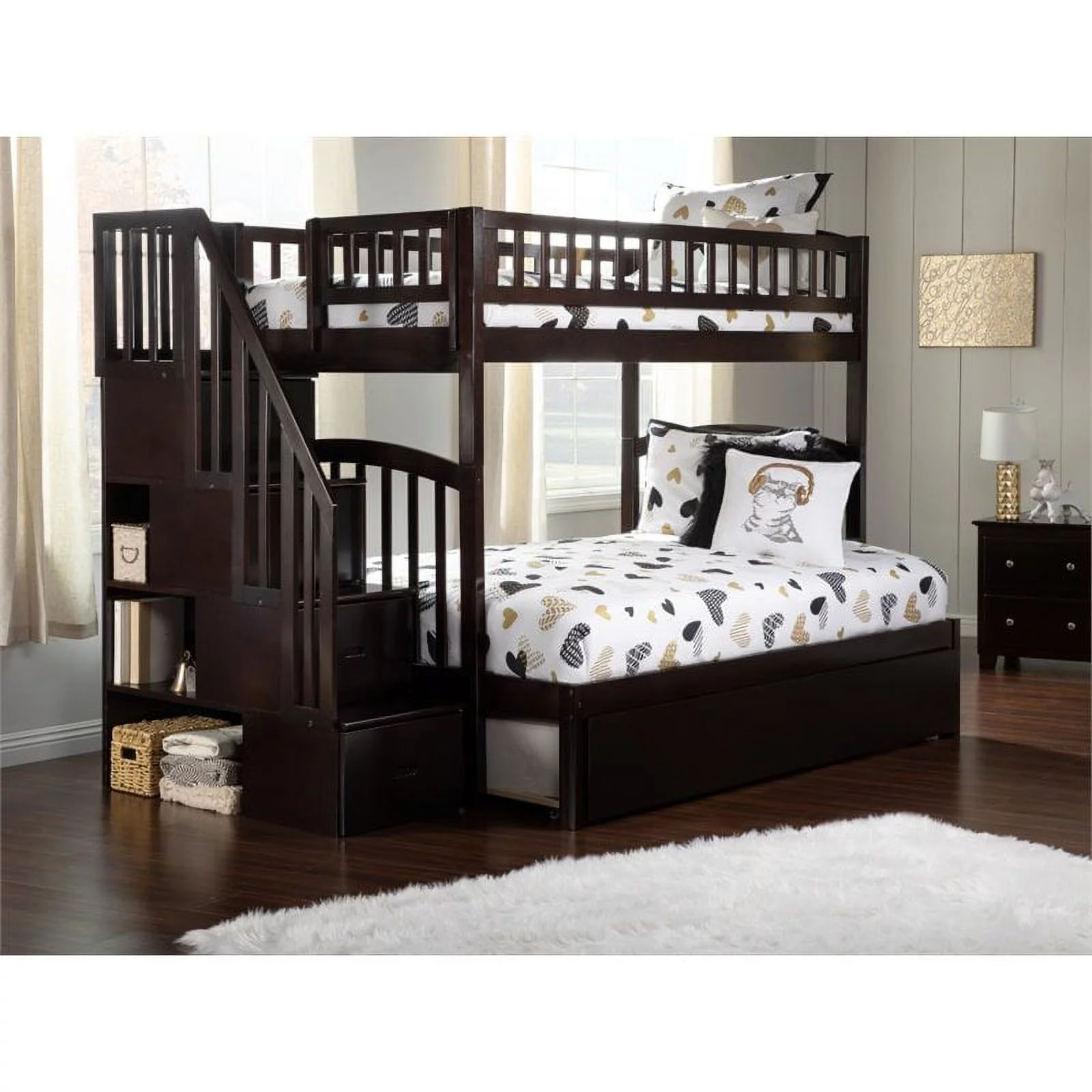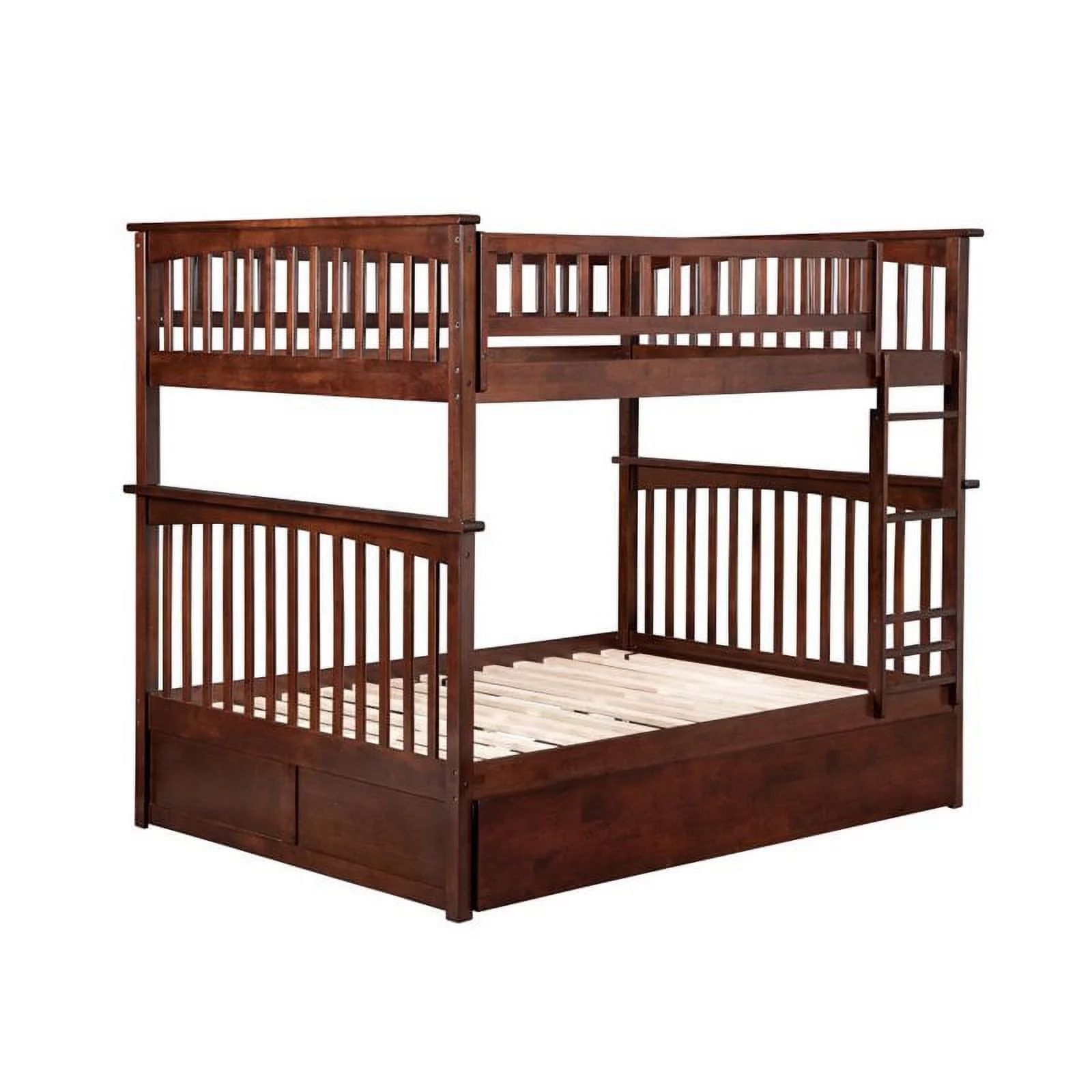 Pemberly Row Full over Full Bunk Bed of Wood with Trundle in Walnut Brown