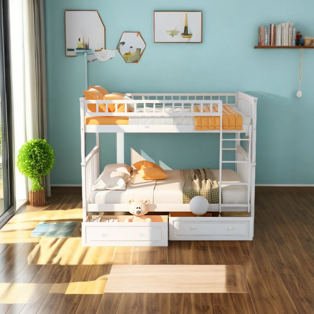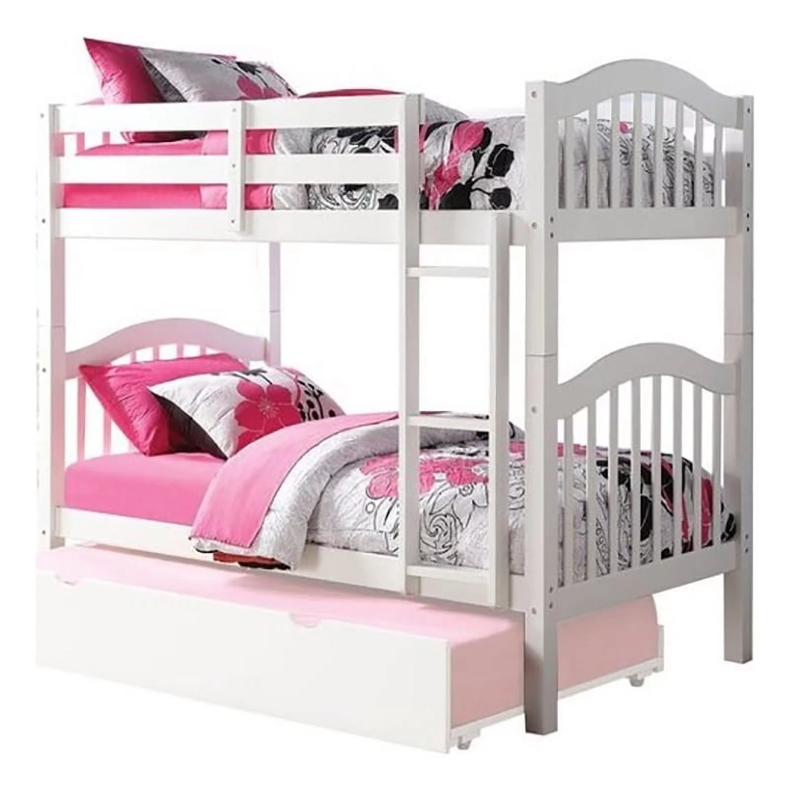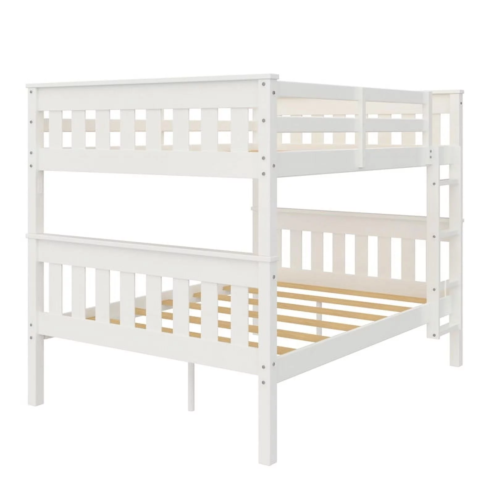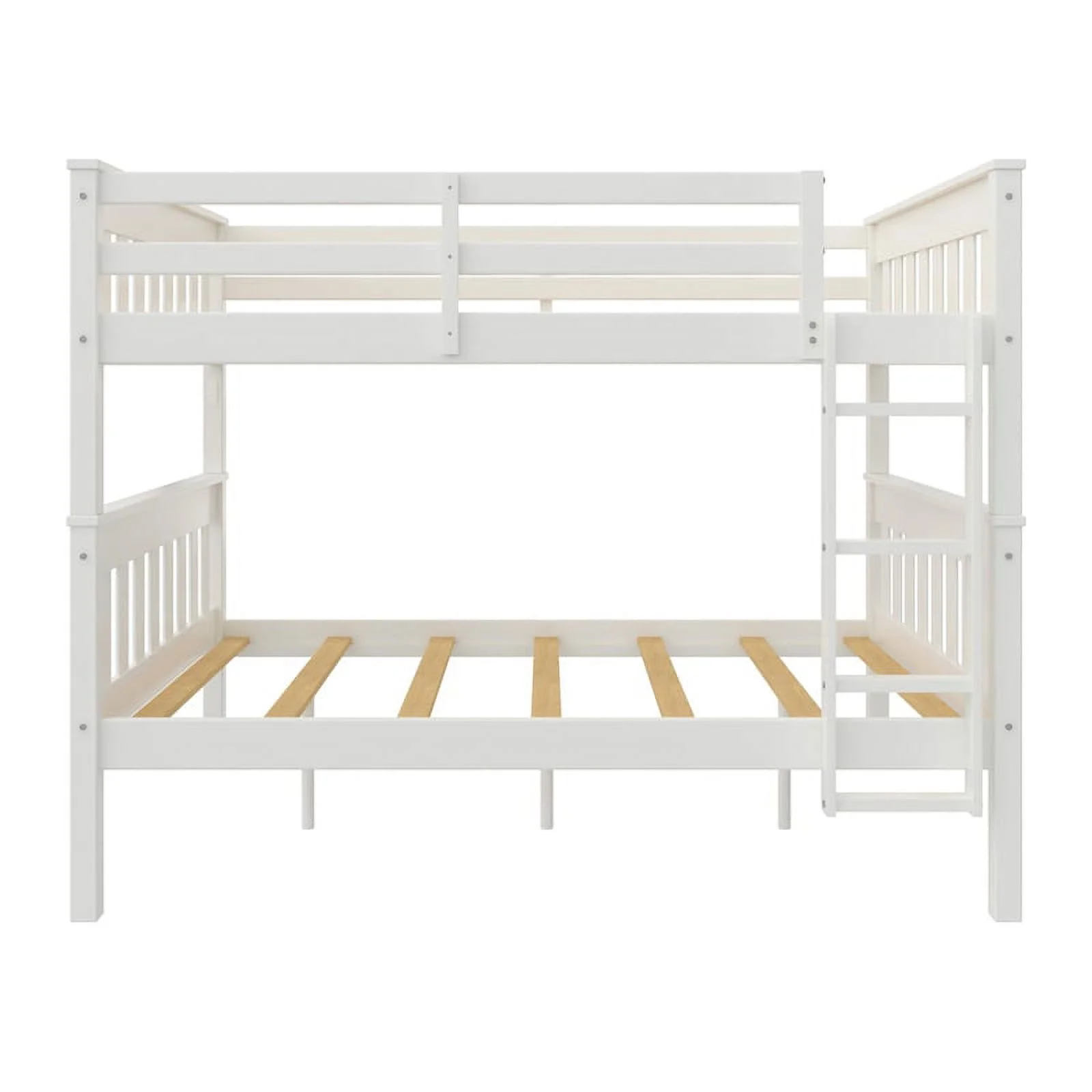 Bowery Hill Twin Over Twin Bunk Bed in White with Ladder and Guard Rail, Convertible into Two Twin Beds