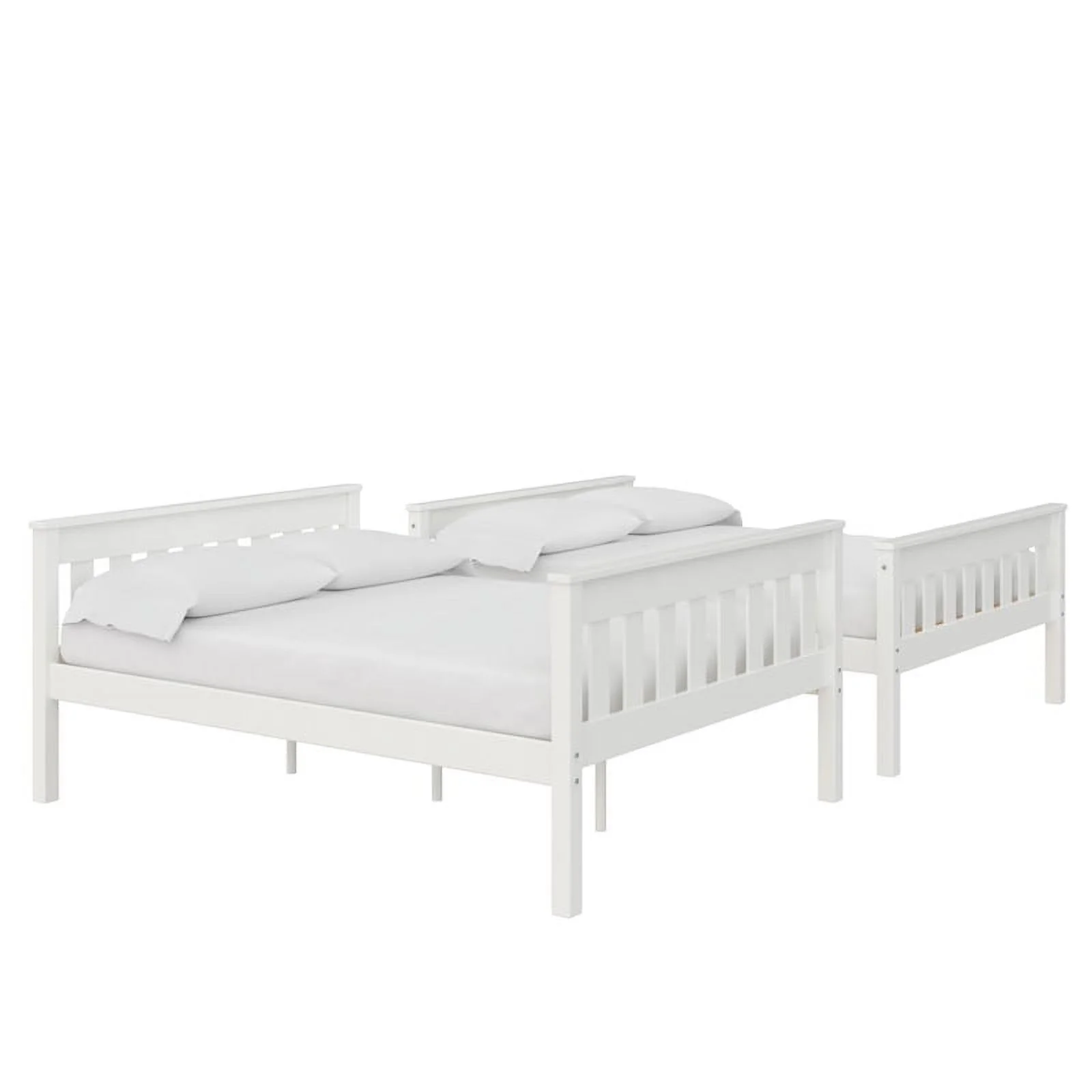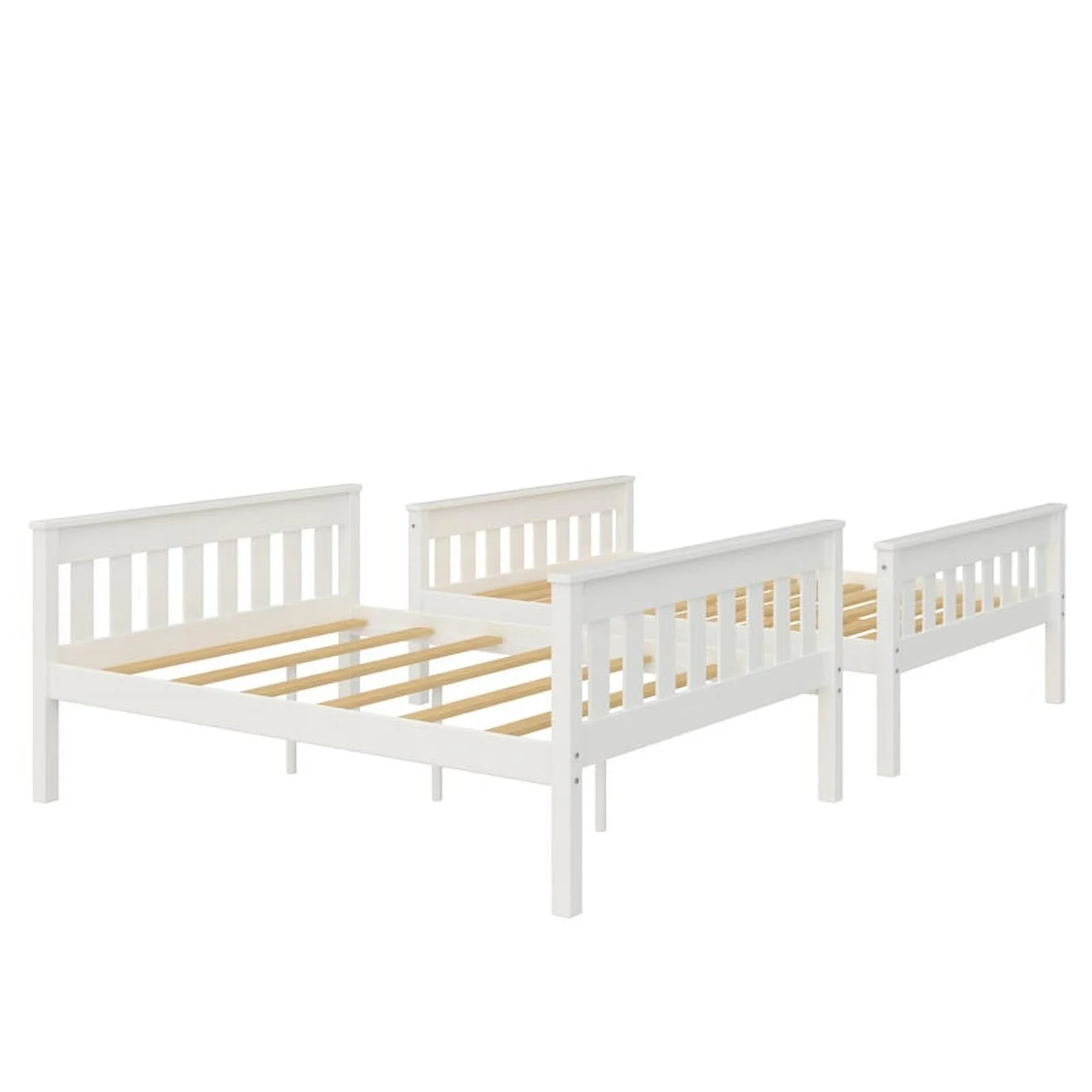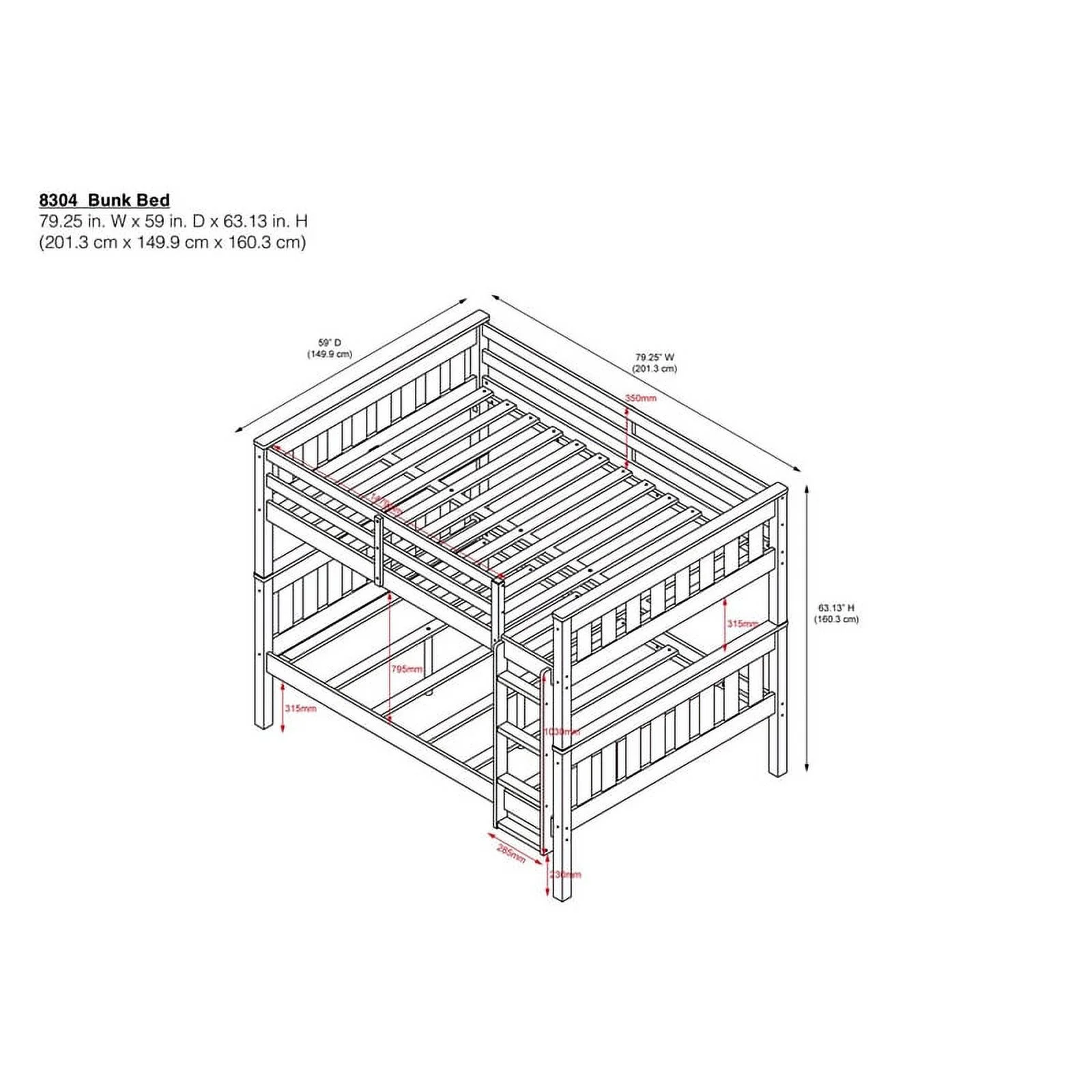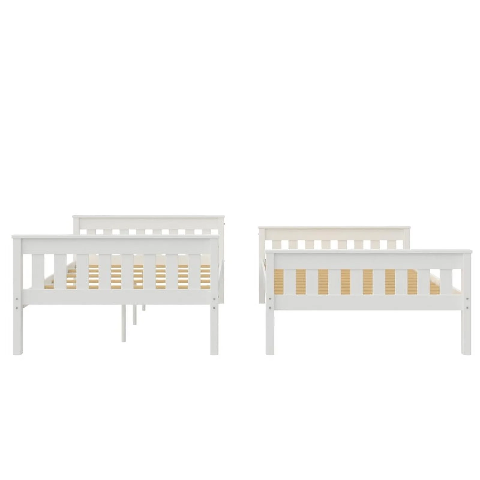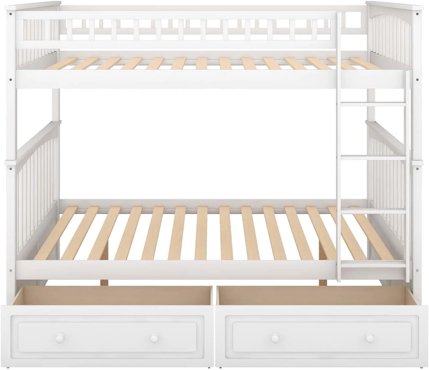 Bowery Hill Twin Over Twin Bunk Bed in White with Ladder and Guard Rail, Convertible into Two Twin Beds