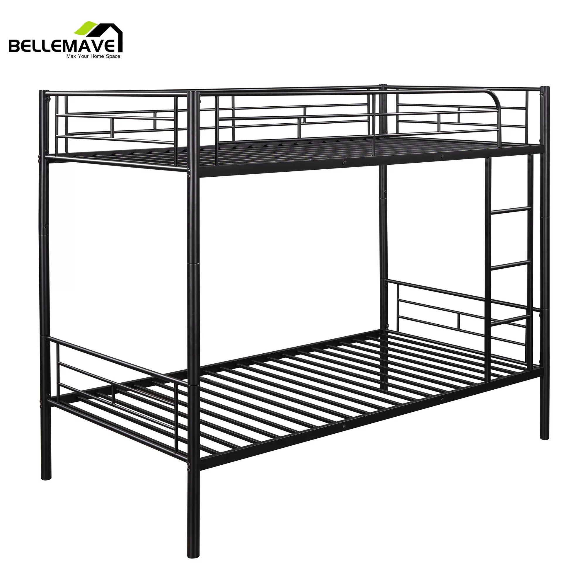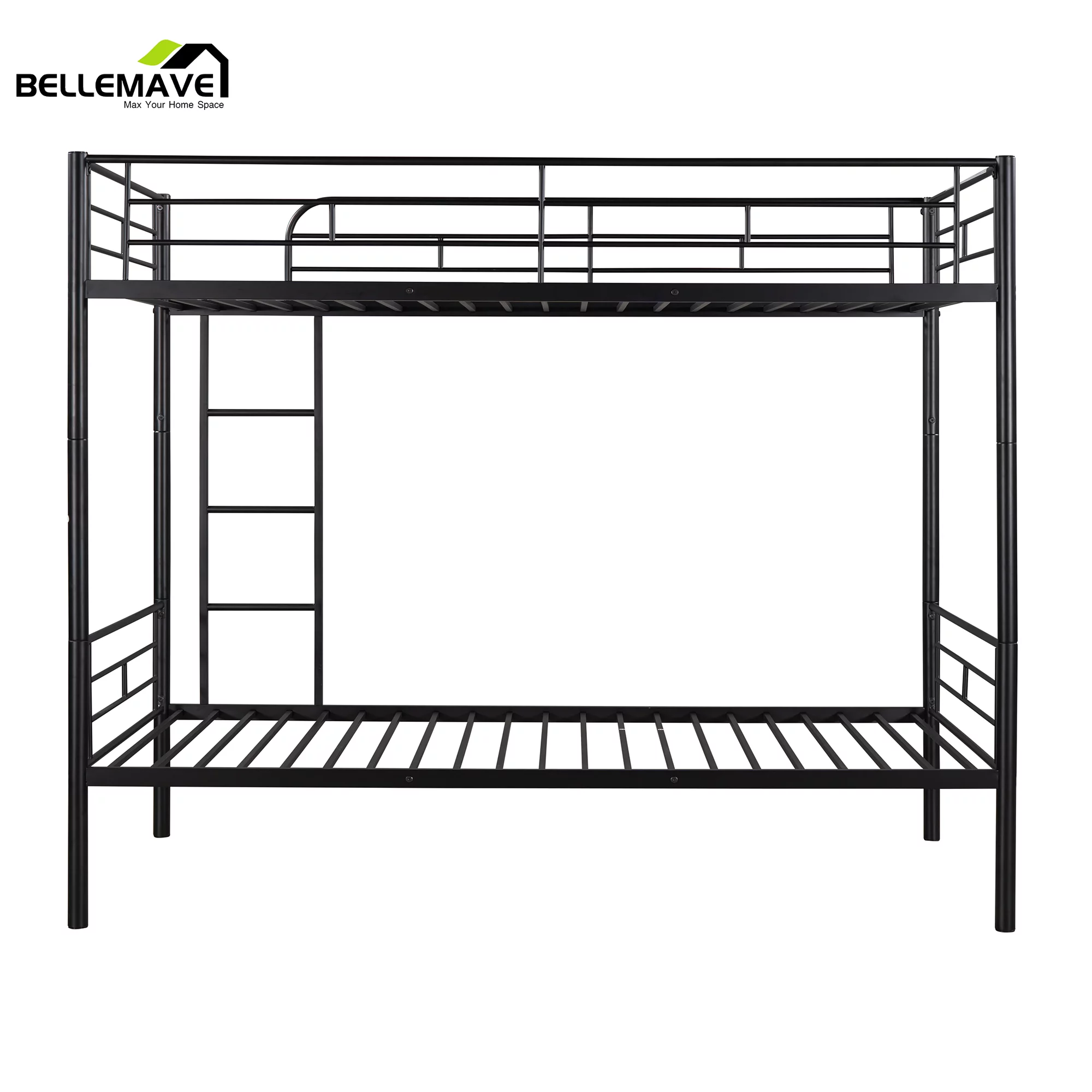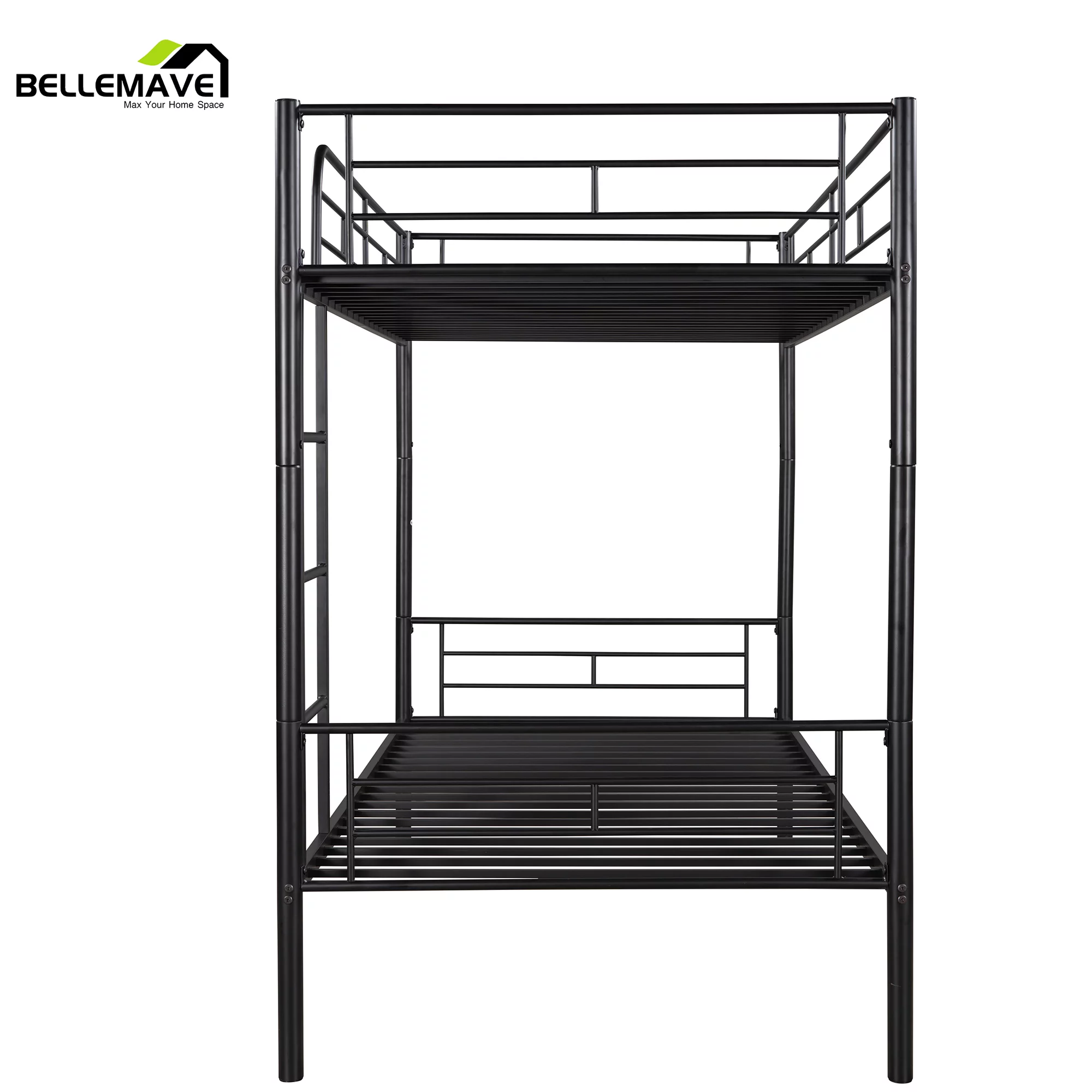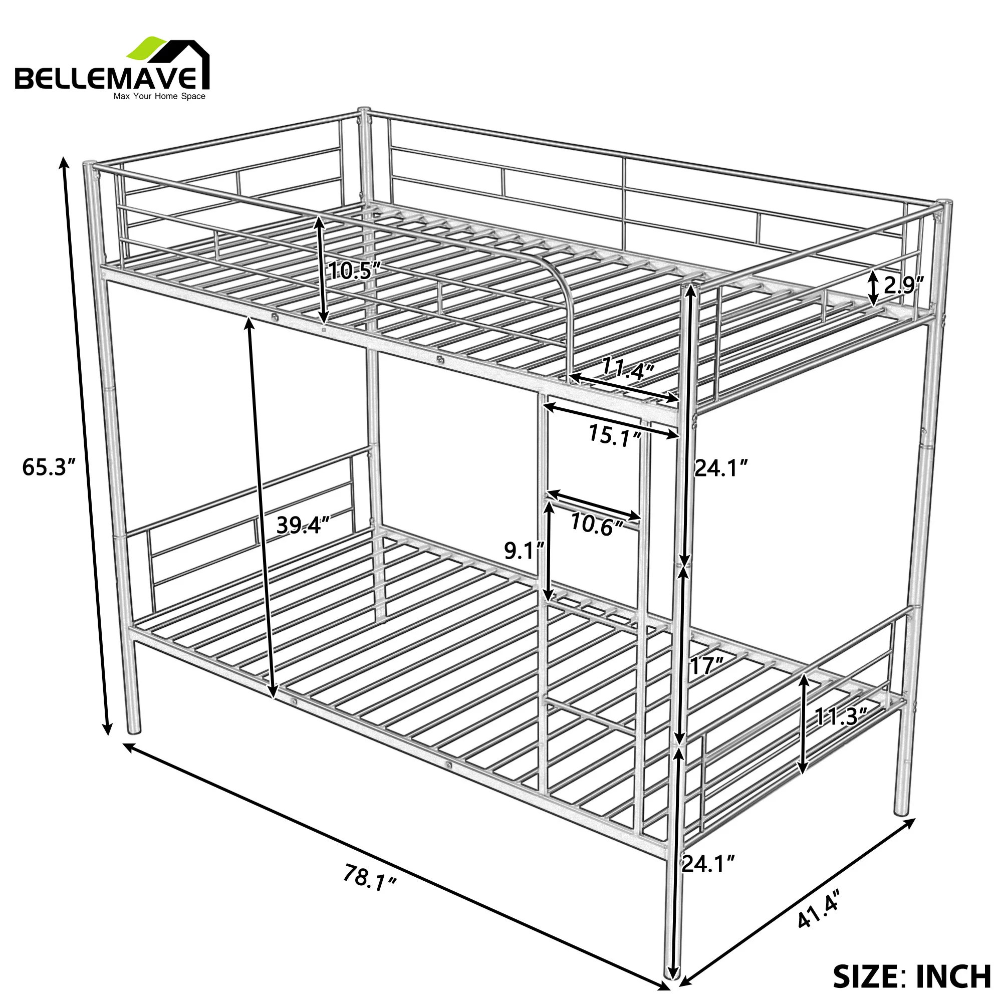 Bowery Hill Twin Over Twin Bunk Bed in White with Ladder and Guard Rail, Convertible into Two Twin Beds