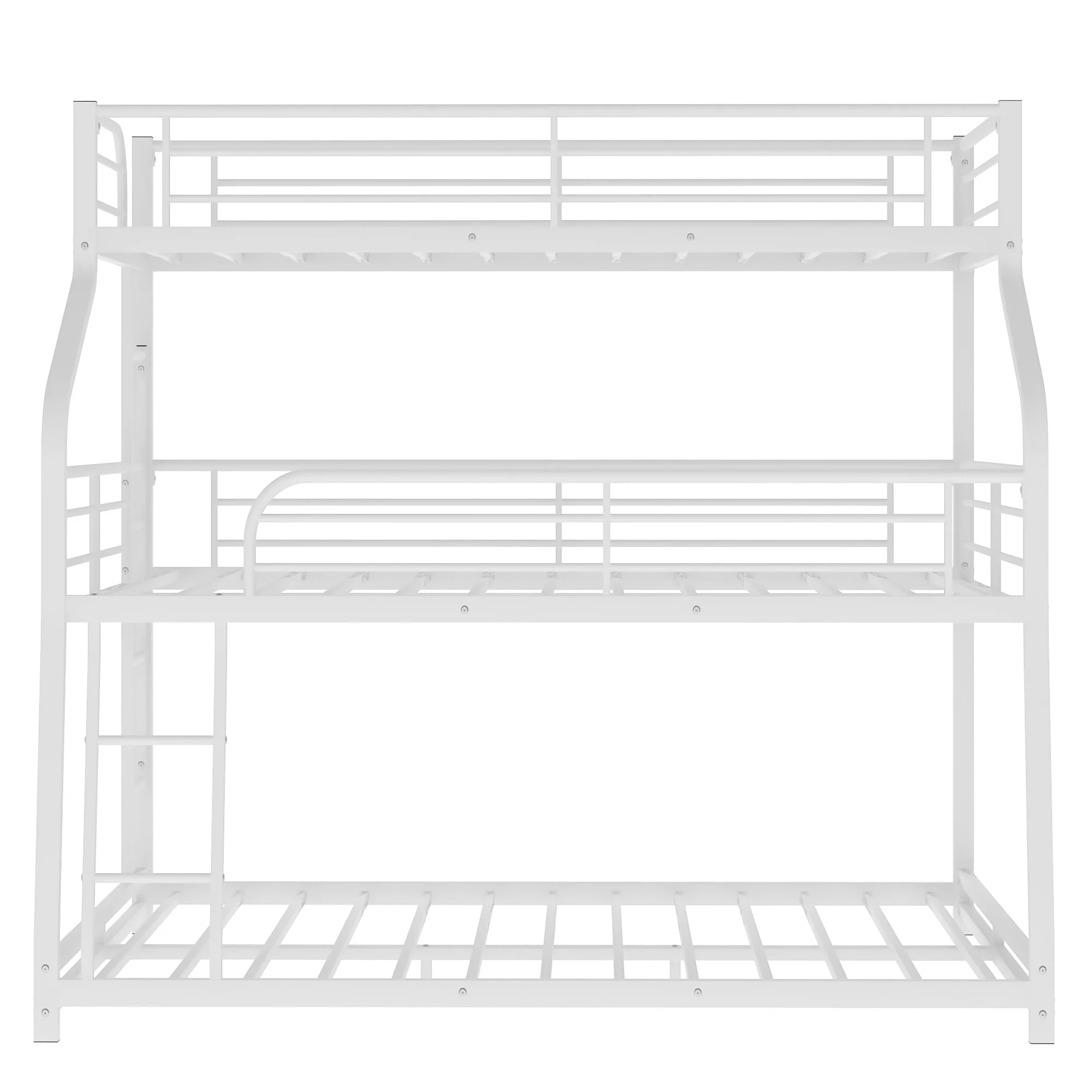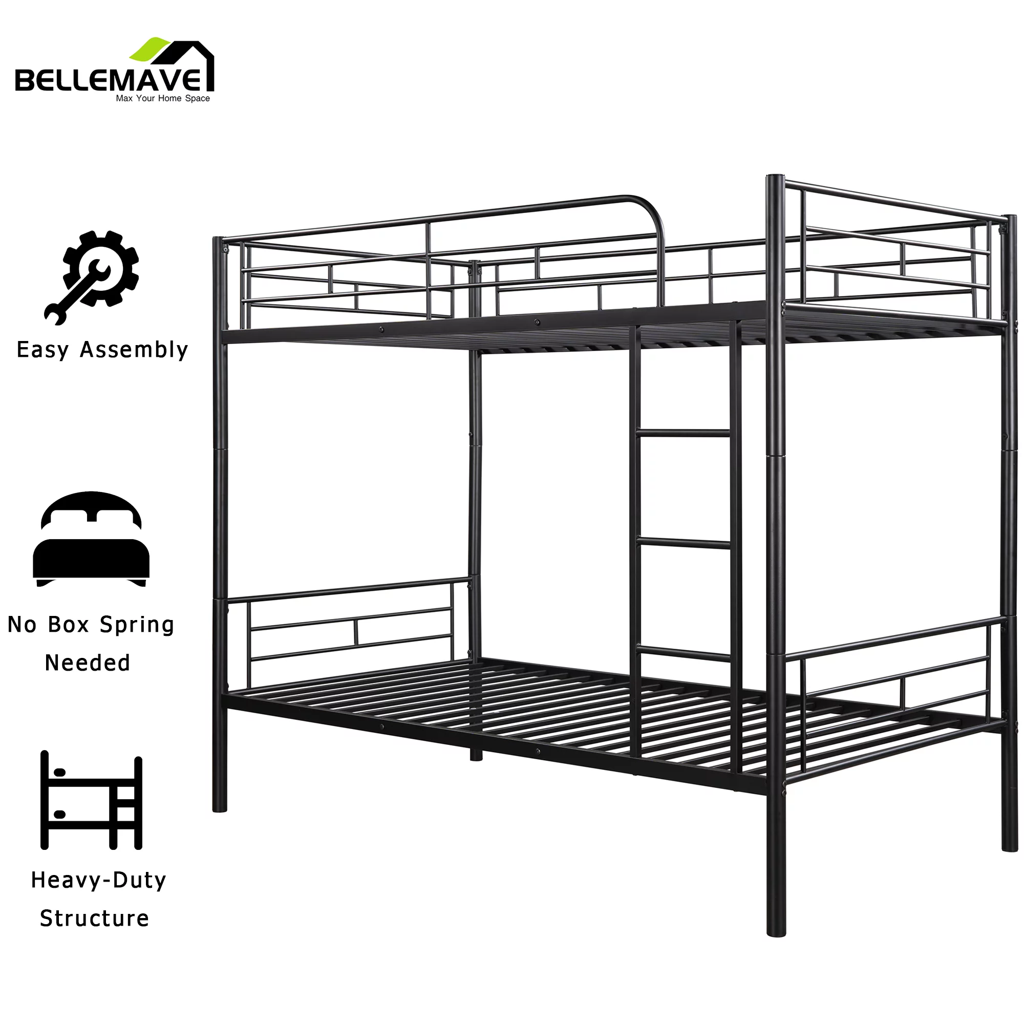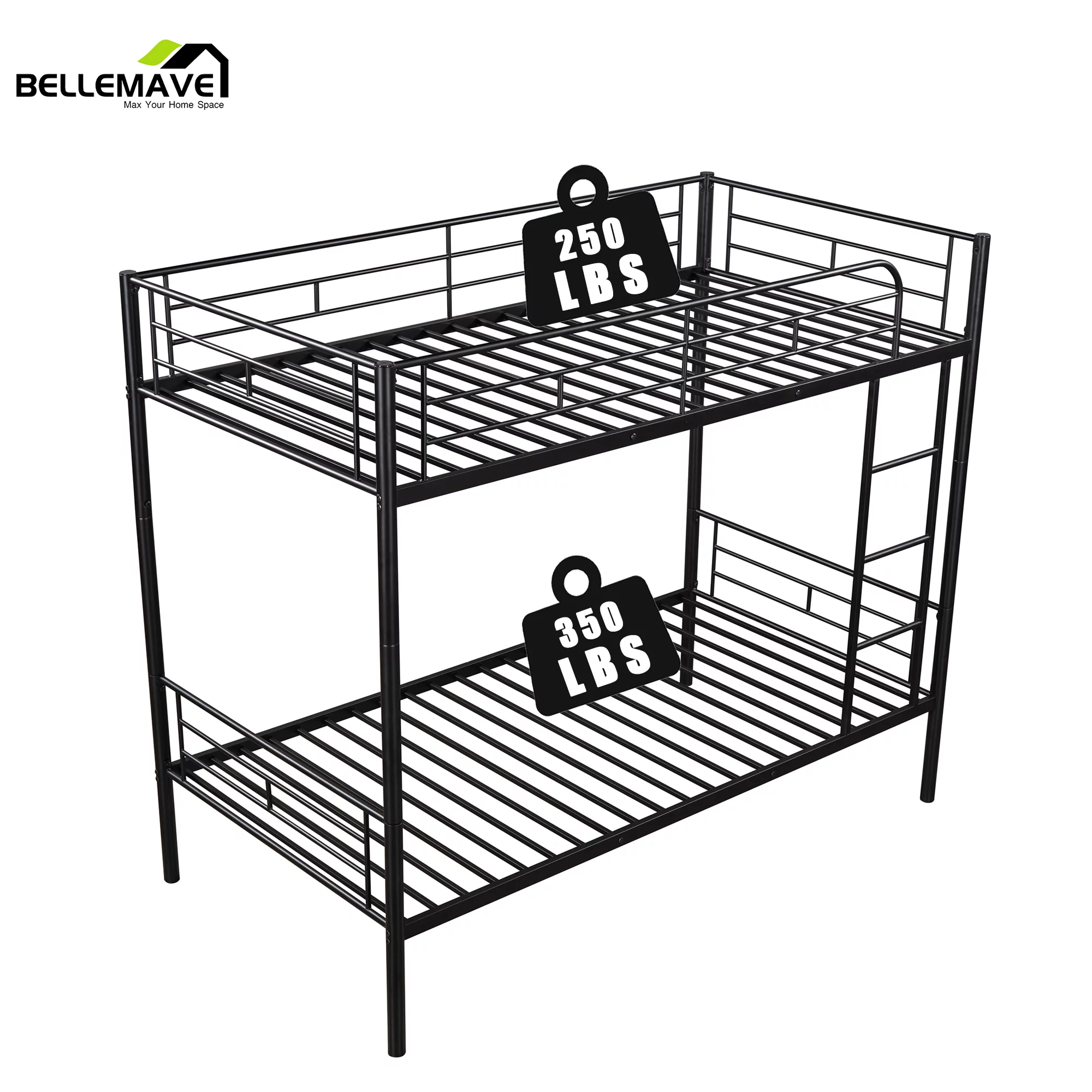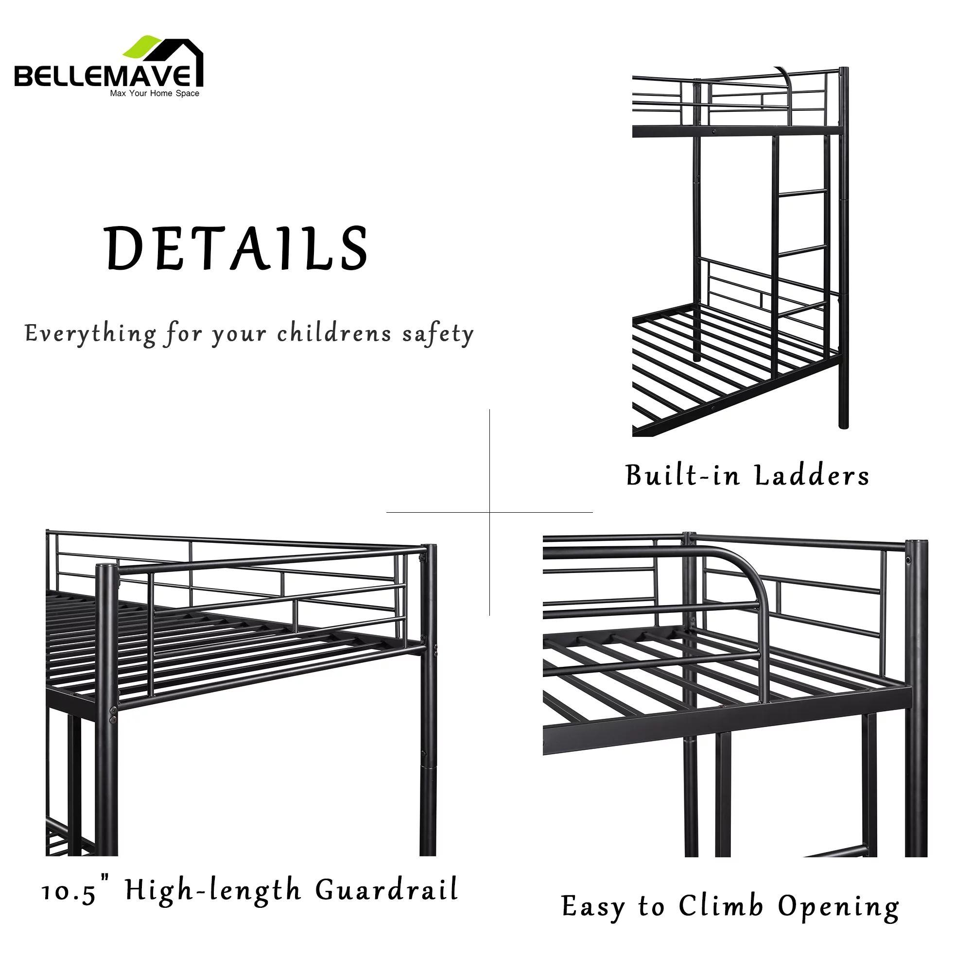 Bowery Hill Twin Over Twin Bunk Bed in White with Ladder and Guard Rail, Convertible into Two Twin Beds
