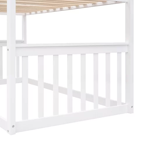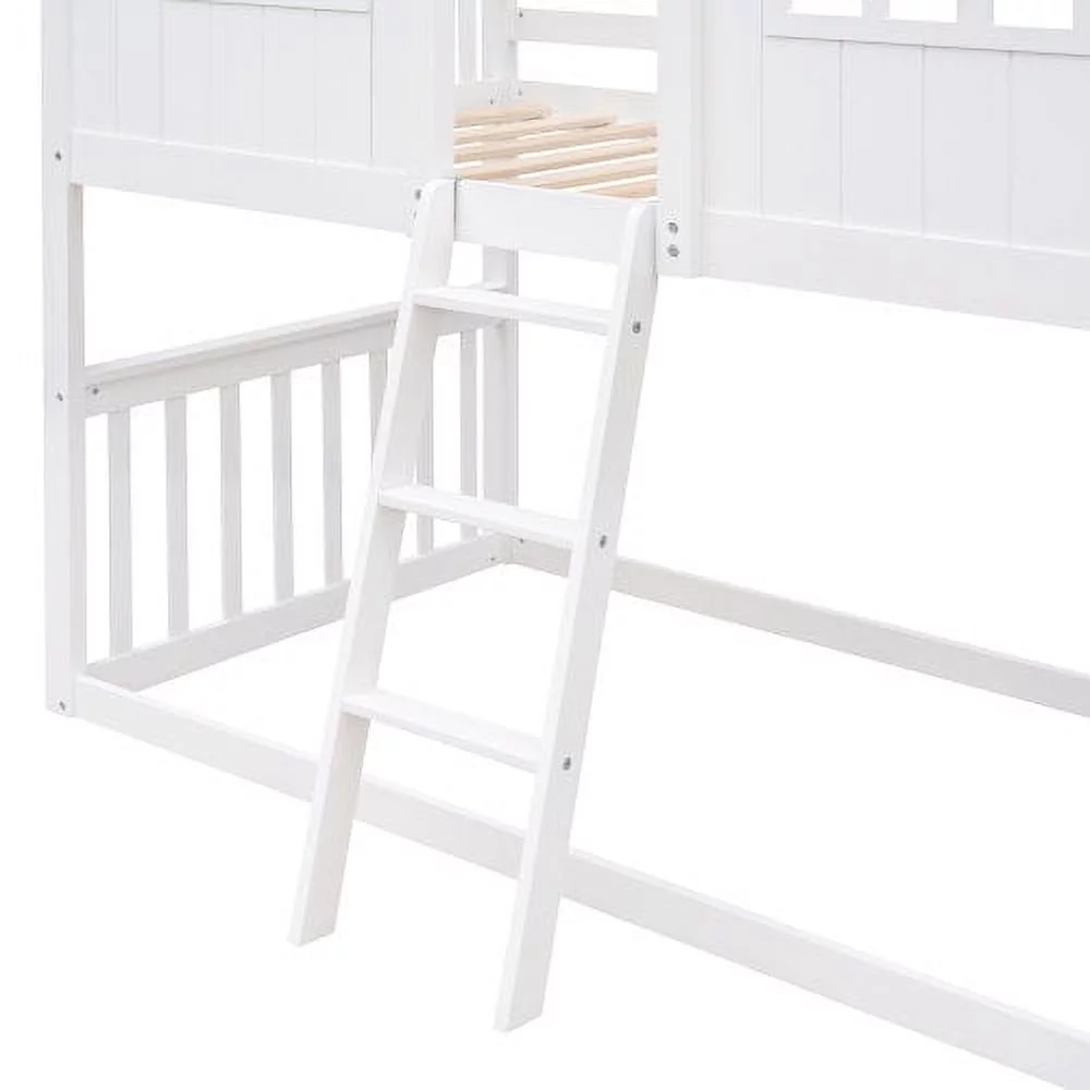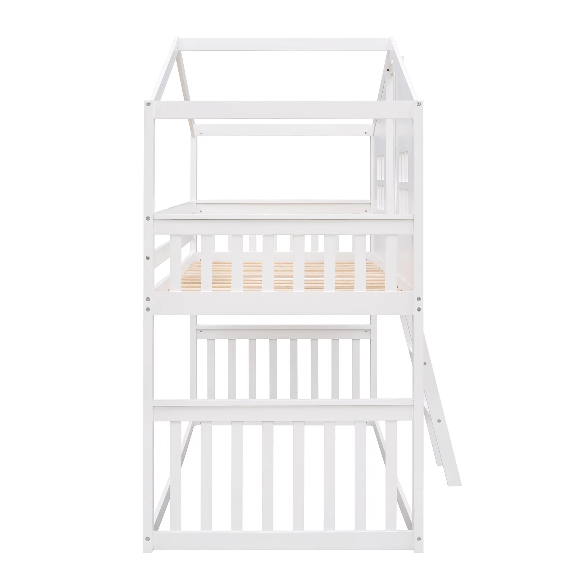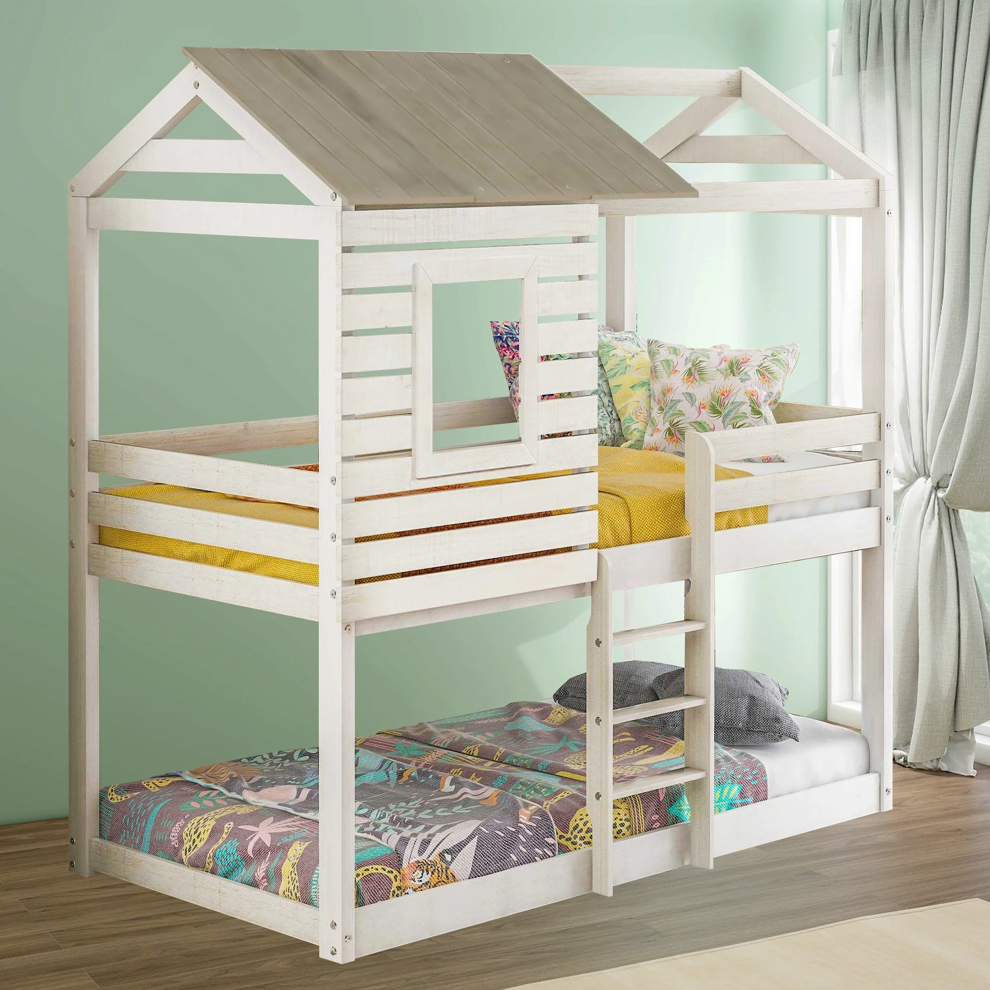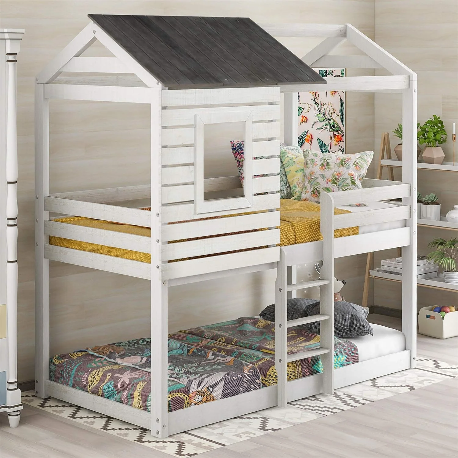 Adrinfly Twin Over Twin Bunk Bed Wood Bed with Roof, Window, Guardrail, Ladder (White)