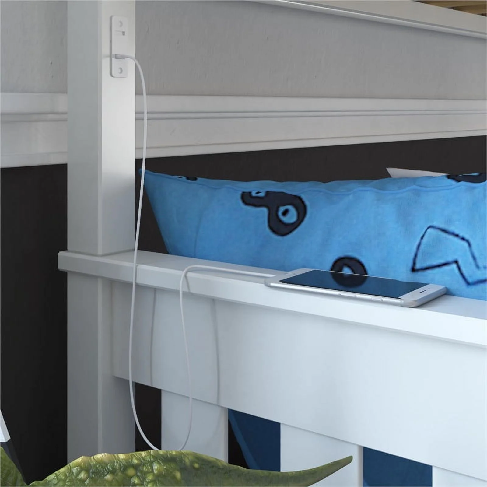 Size Loft Bed, Loft Bed Frame With Storage Drawers And Stairs, Wooden Loft Bed With Shelves, White