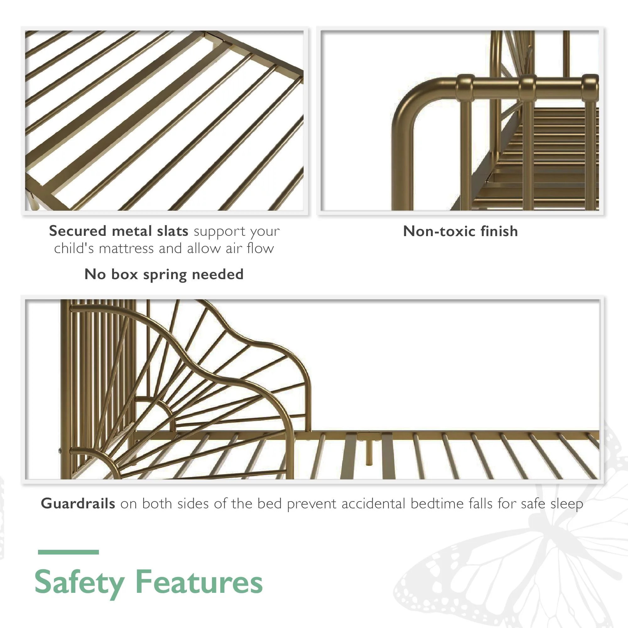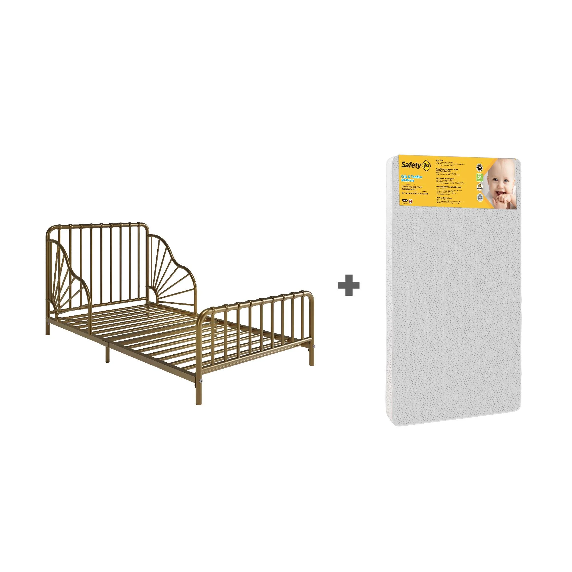 Little Seeds Quinn Whimsical Metal Toddler Bed with Safety 1st Sweet Dreams Baby & Toddler Mattress, Gold