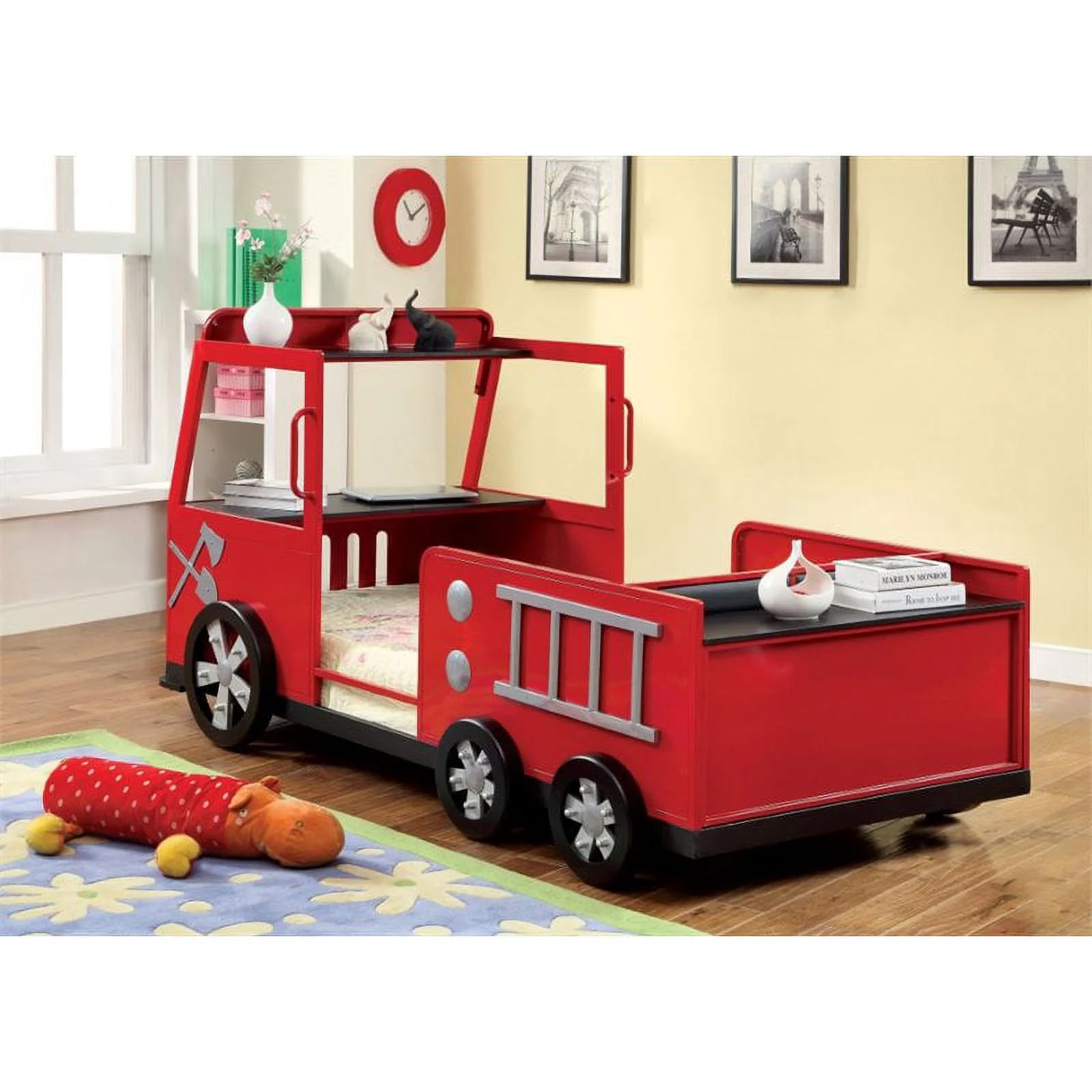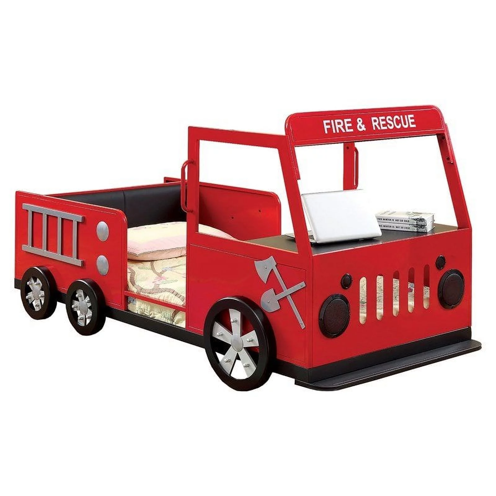 Furniture of America Jennen Novelty Metal Fire Truck Twin Bed in Red