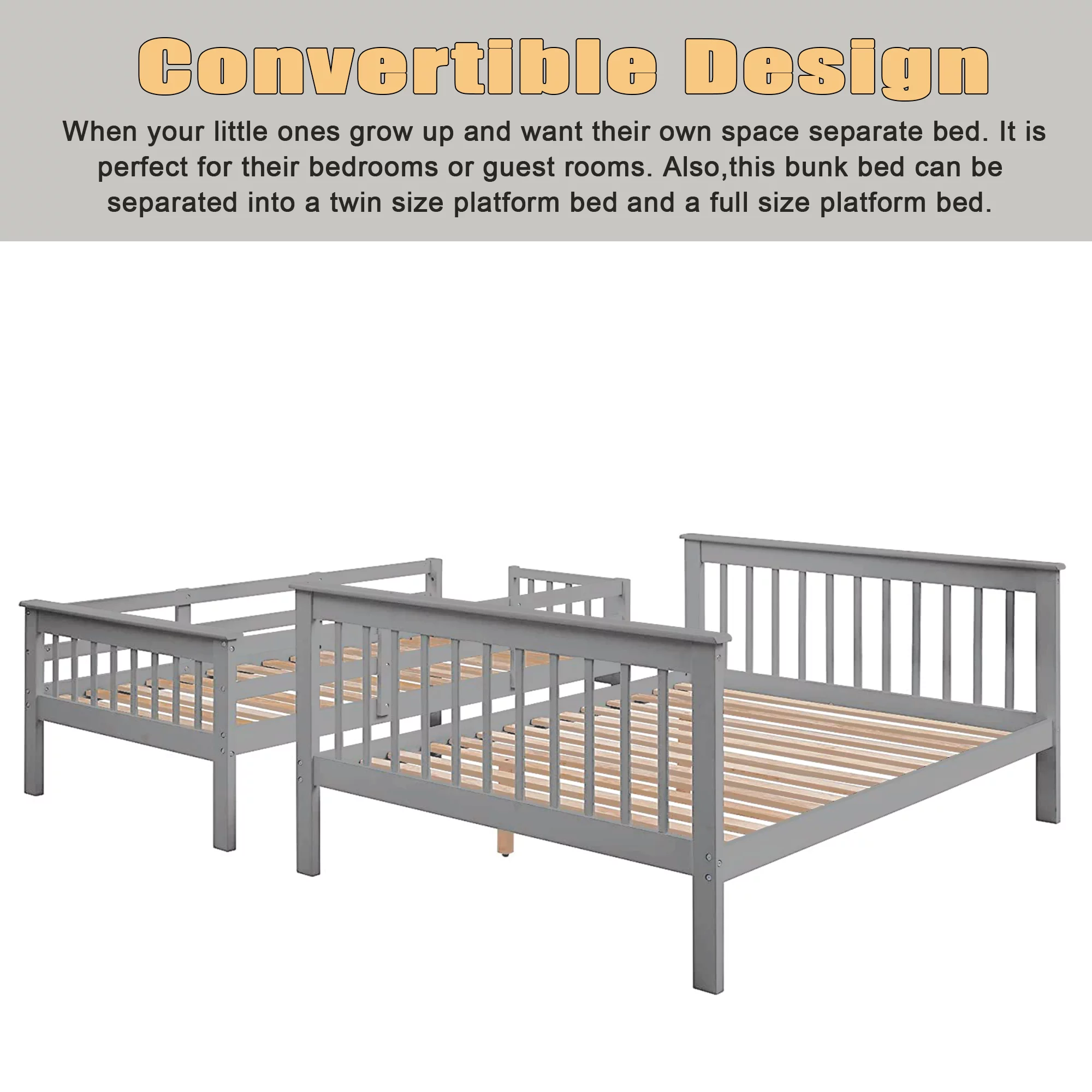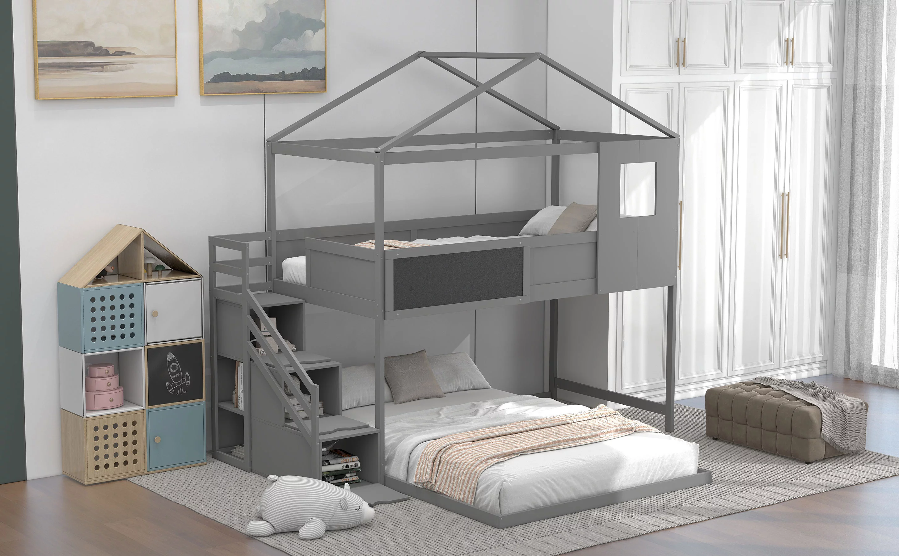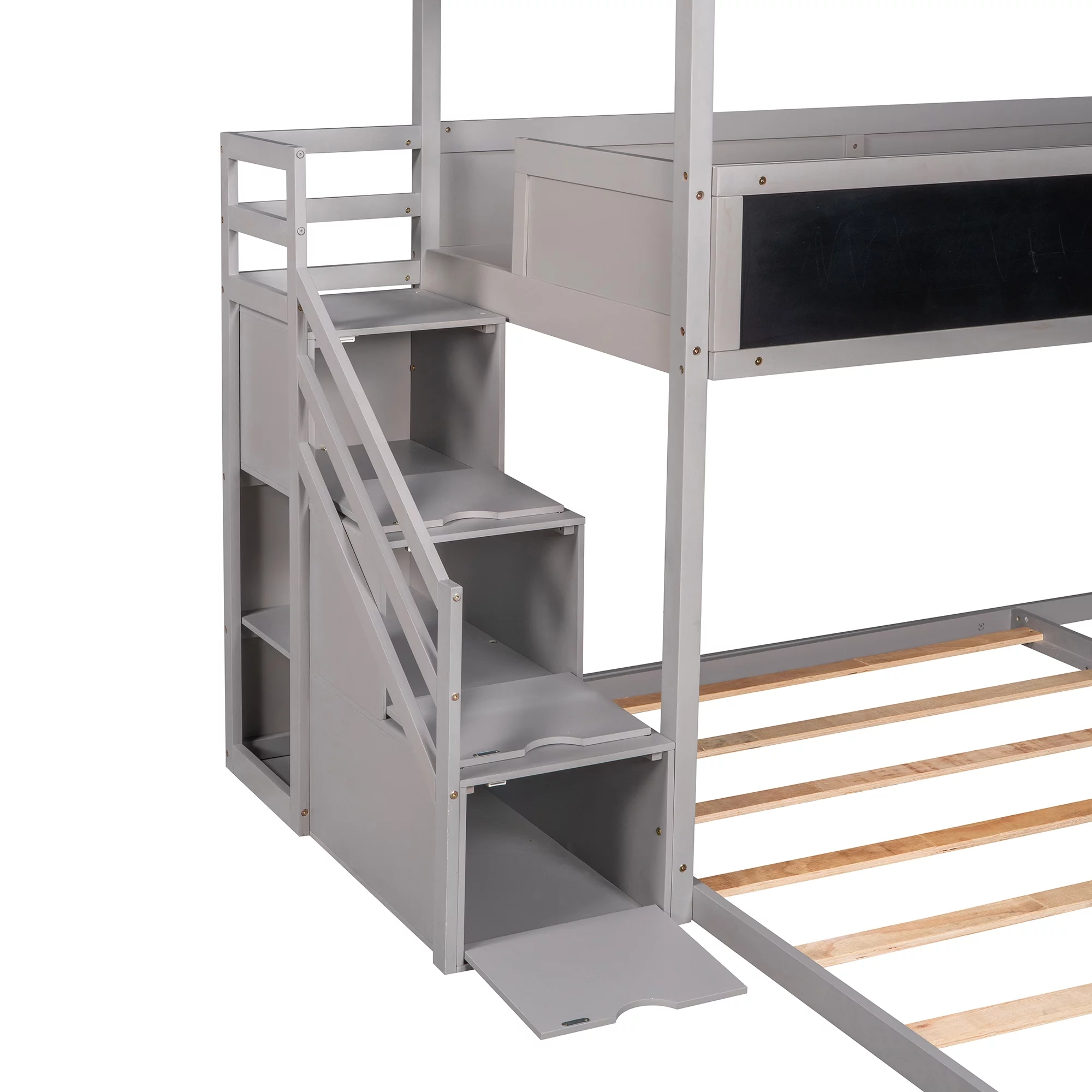 Livspace Twin over Full House Bunk Bed with Storage Staircase and Blackboard,Grey